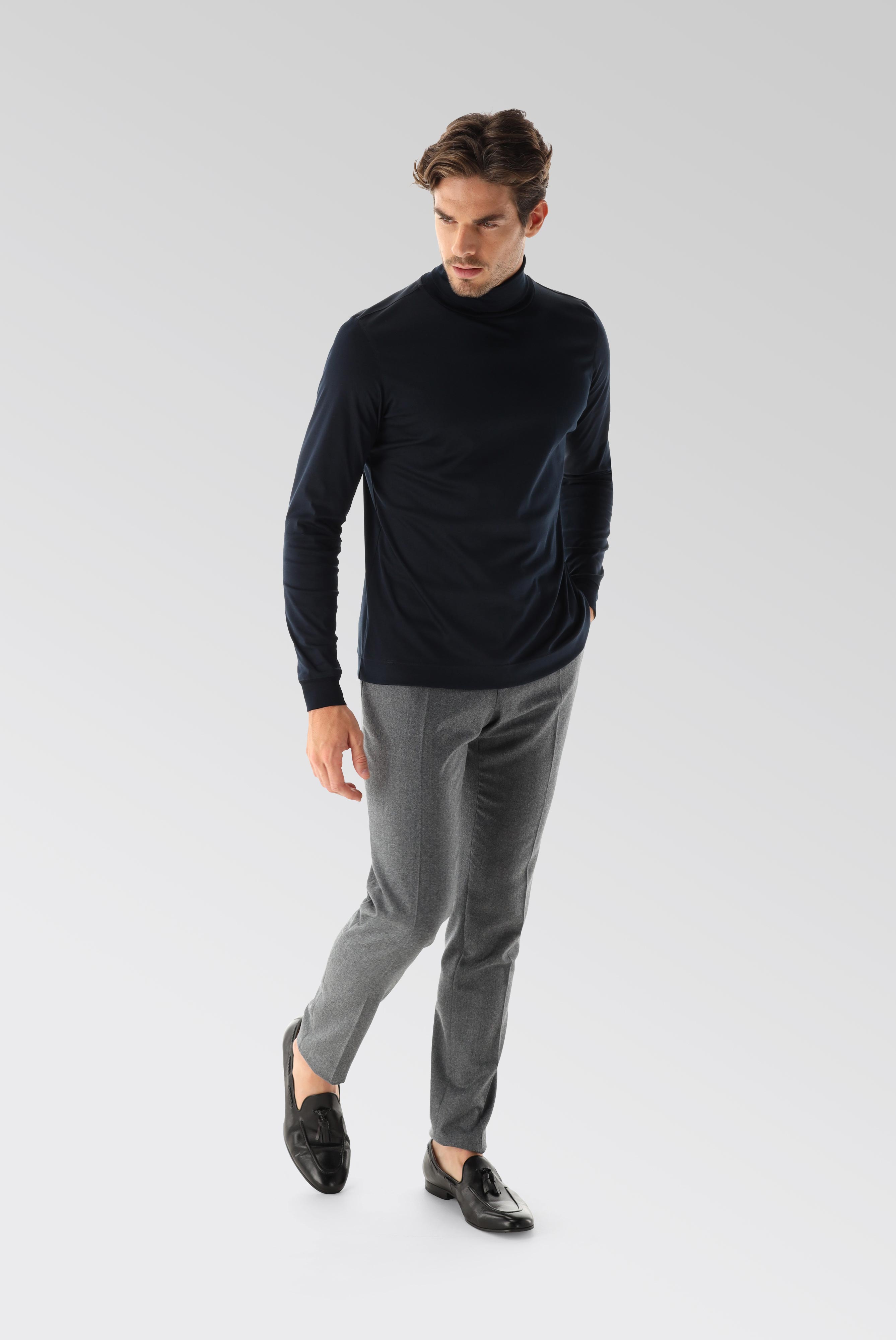 Look aus Rollkragenshirt aus Schweizer Baumwolljersey