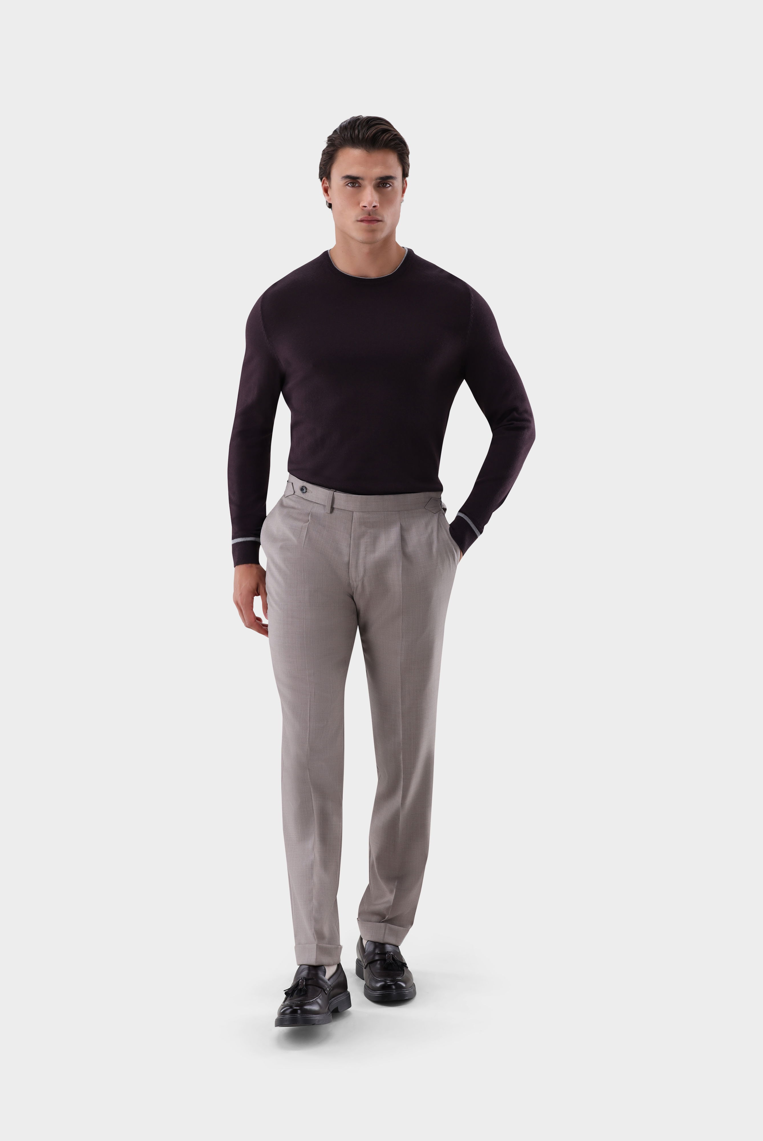 Look aus Rundhalspullover aus merzerisierter Merinowolle mit Farbdetail