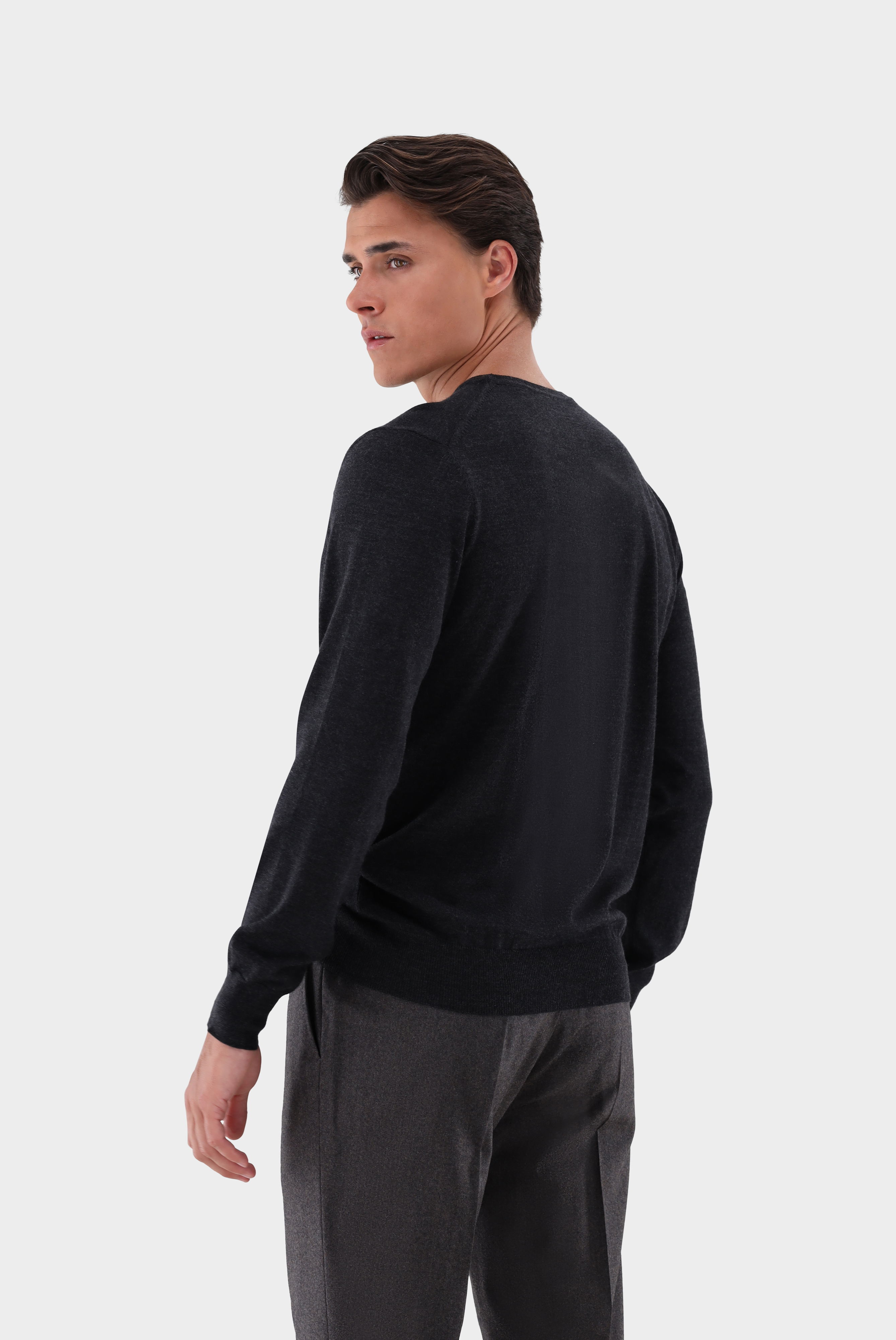 Der Pullover mit Rundhalsausschnitt aus exklusiver merzerisierter Merinowolle ist ein elegantes und vielseitiges Kleidungsstück. Hergestellt aus hochwertiger merzerisierter Merinowolle, bietet dieser Pullover nicht nur eine angenehme Trageerfahrung, sondern auch eine edle Optik. Der klassische Rundhalsausschnitt verleiht dem Pullover eine zeitlose Note und macht ihn zu einem vielseitigen Begleiter für unterschiedliche Outfits. Die exklusive Merinowolle sorgt für eine natürliche Wärme und ist gleichzeitig atmungsaktiv, was den Pullover das ganze Jahr über tragbar macht. Ob in Kombination mit formellen Hosen oder lässigen Jeans, dieser Pullover ergänzt Ihren Look mit Stil und Eleganz.