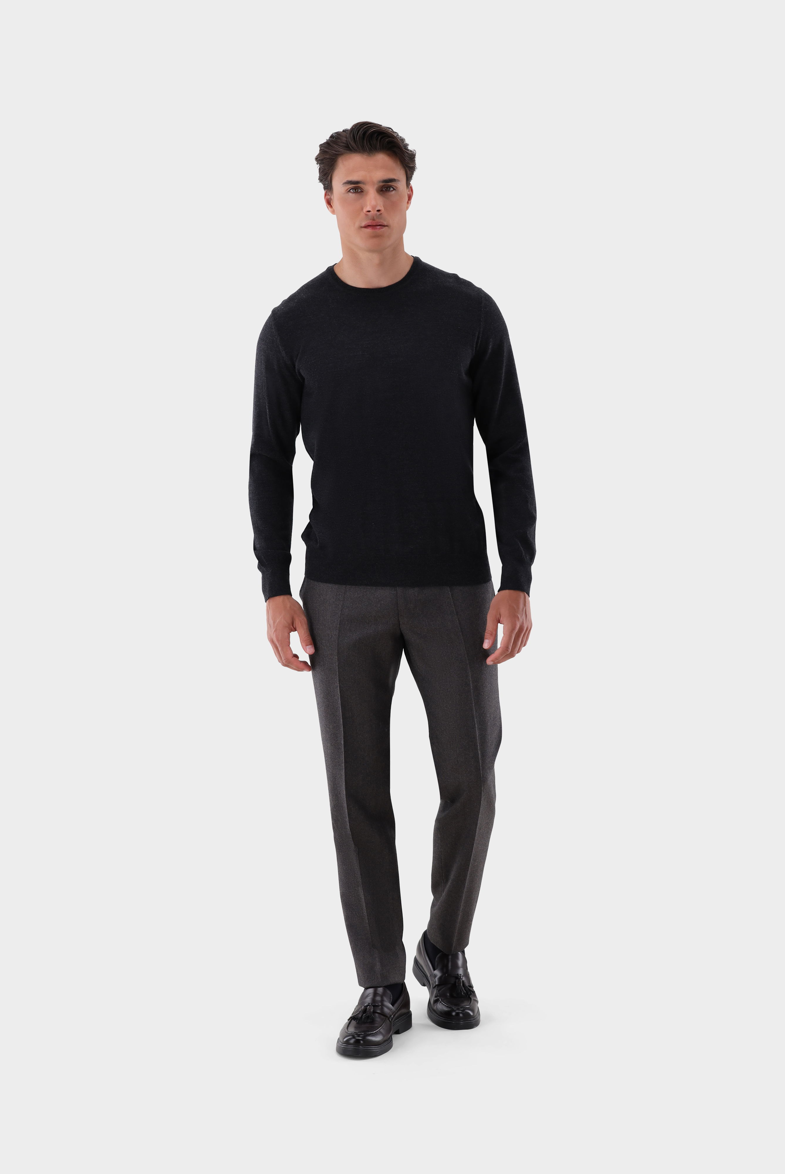 Look aus Rundhalspullover aus merzerisierter Merinowolle