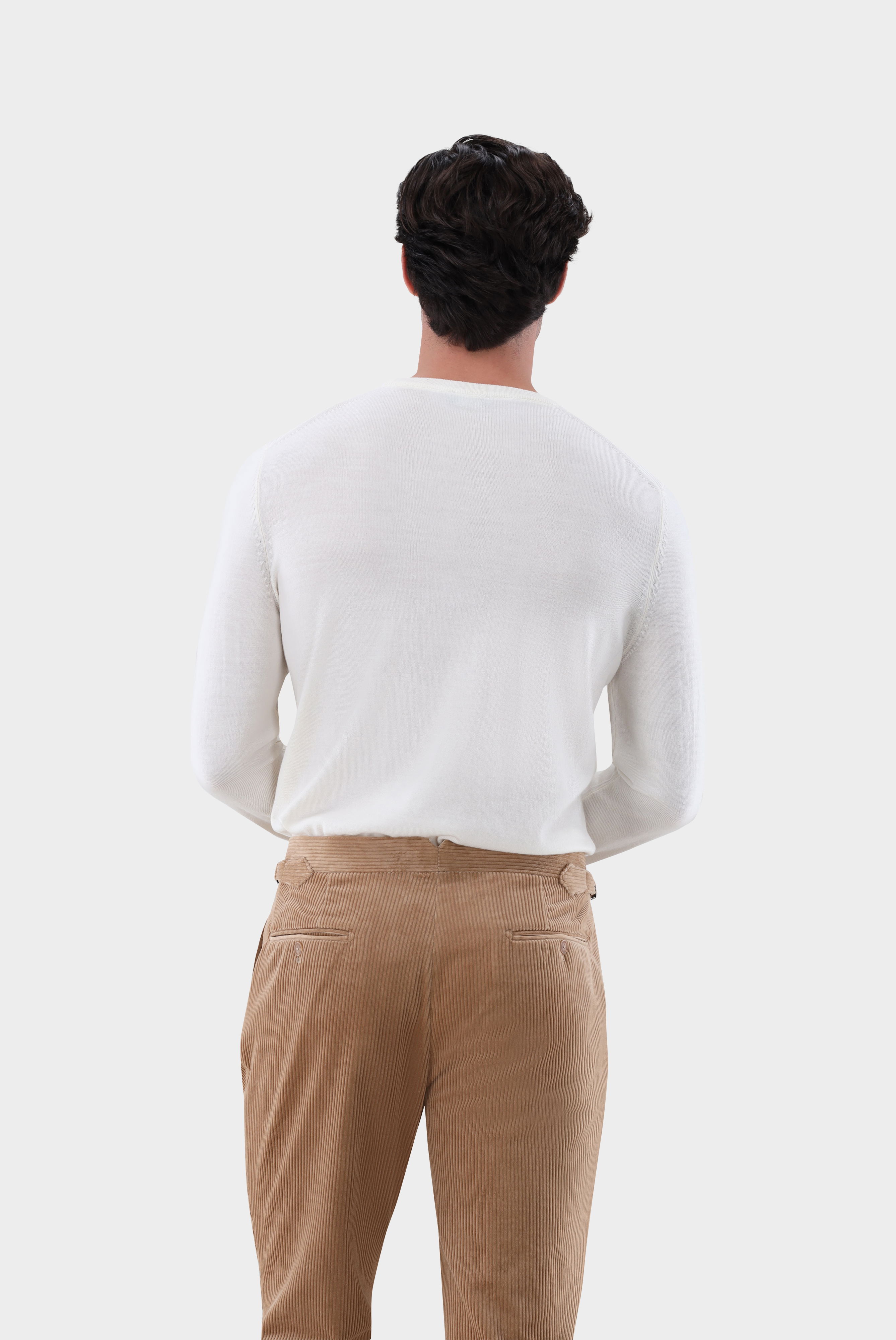 Look aus Rundhalspullover aus merzerisierter Merinowolle