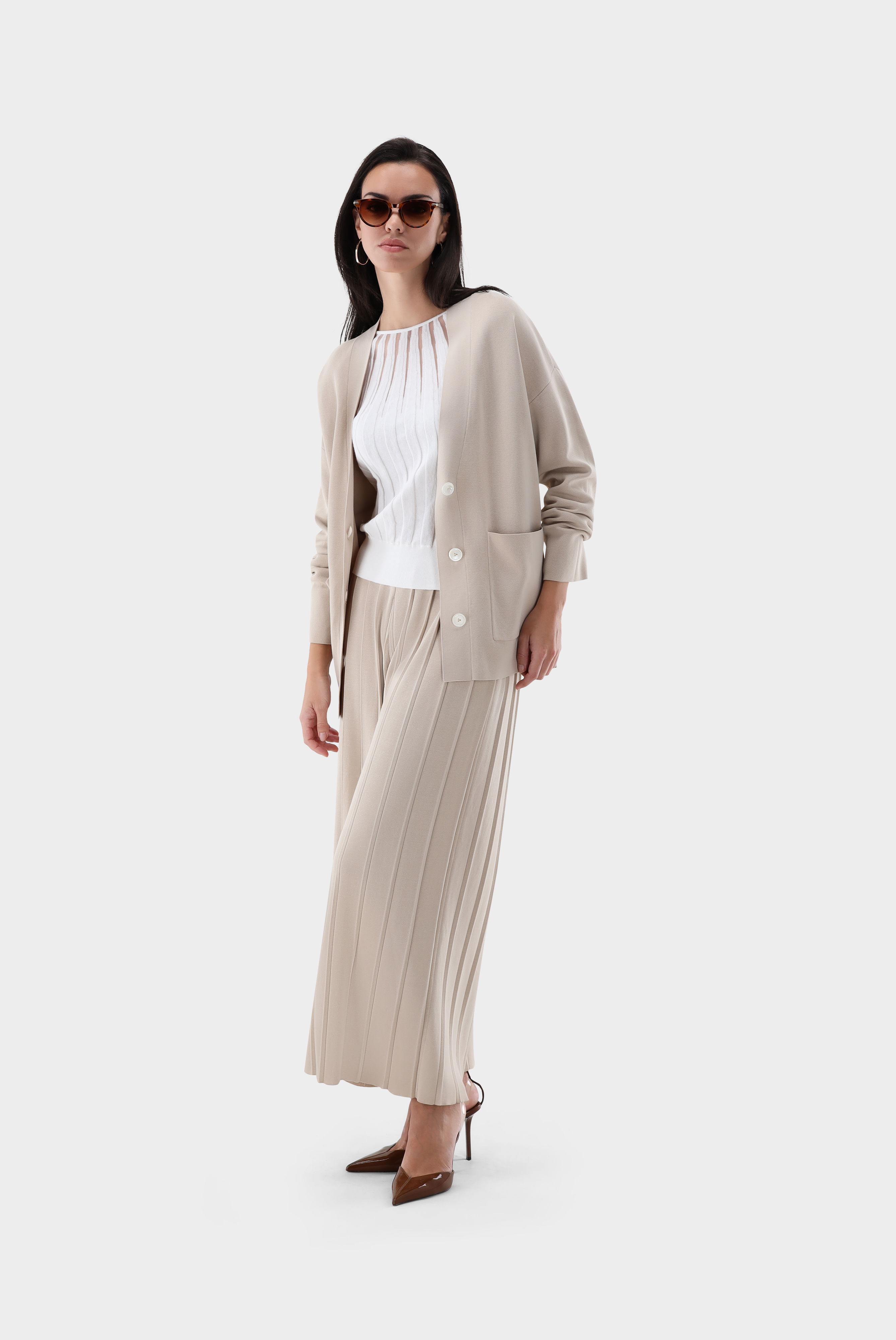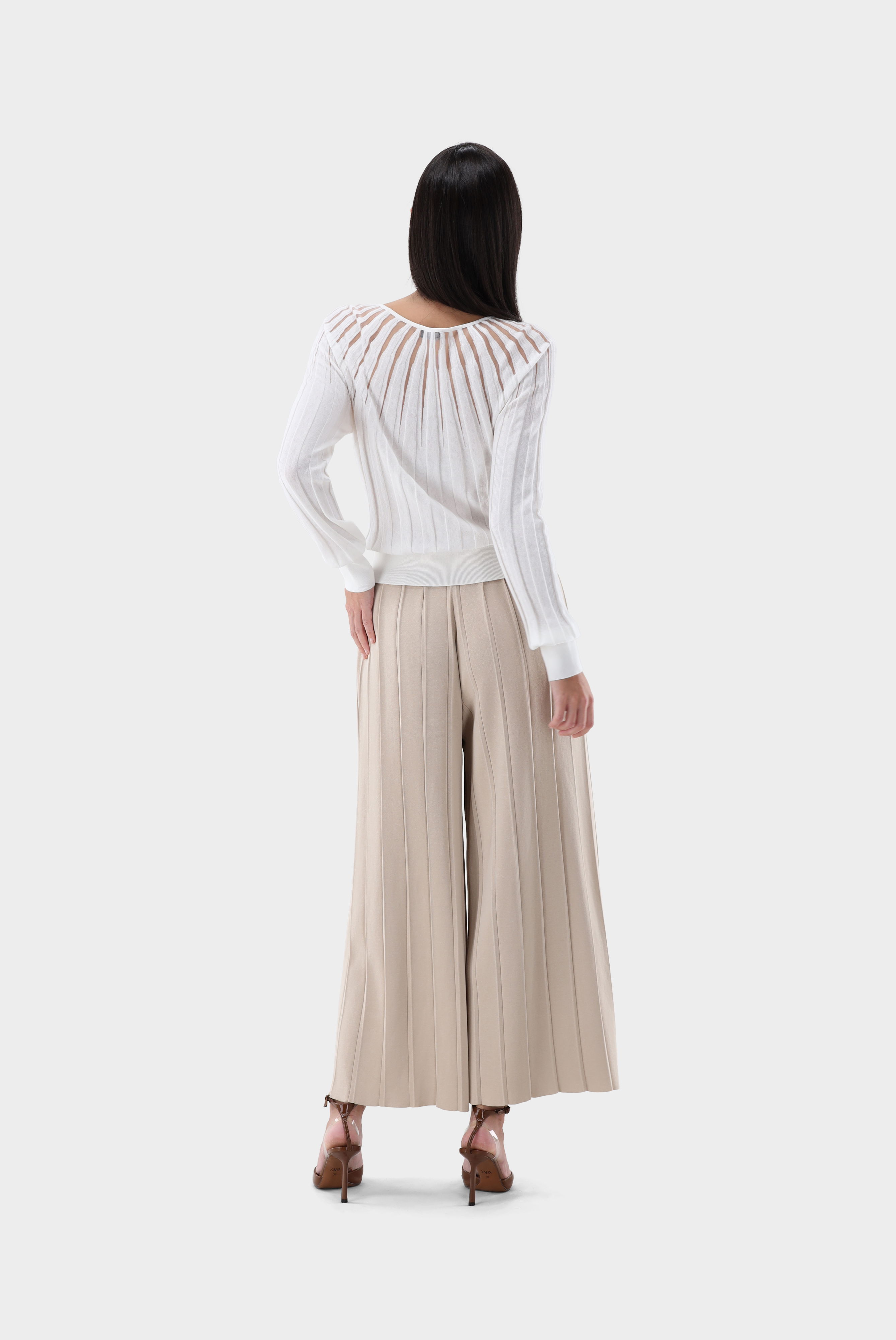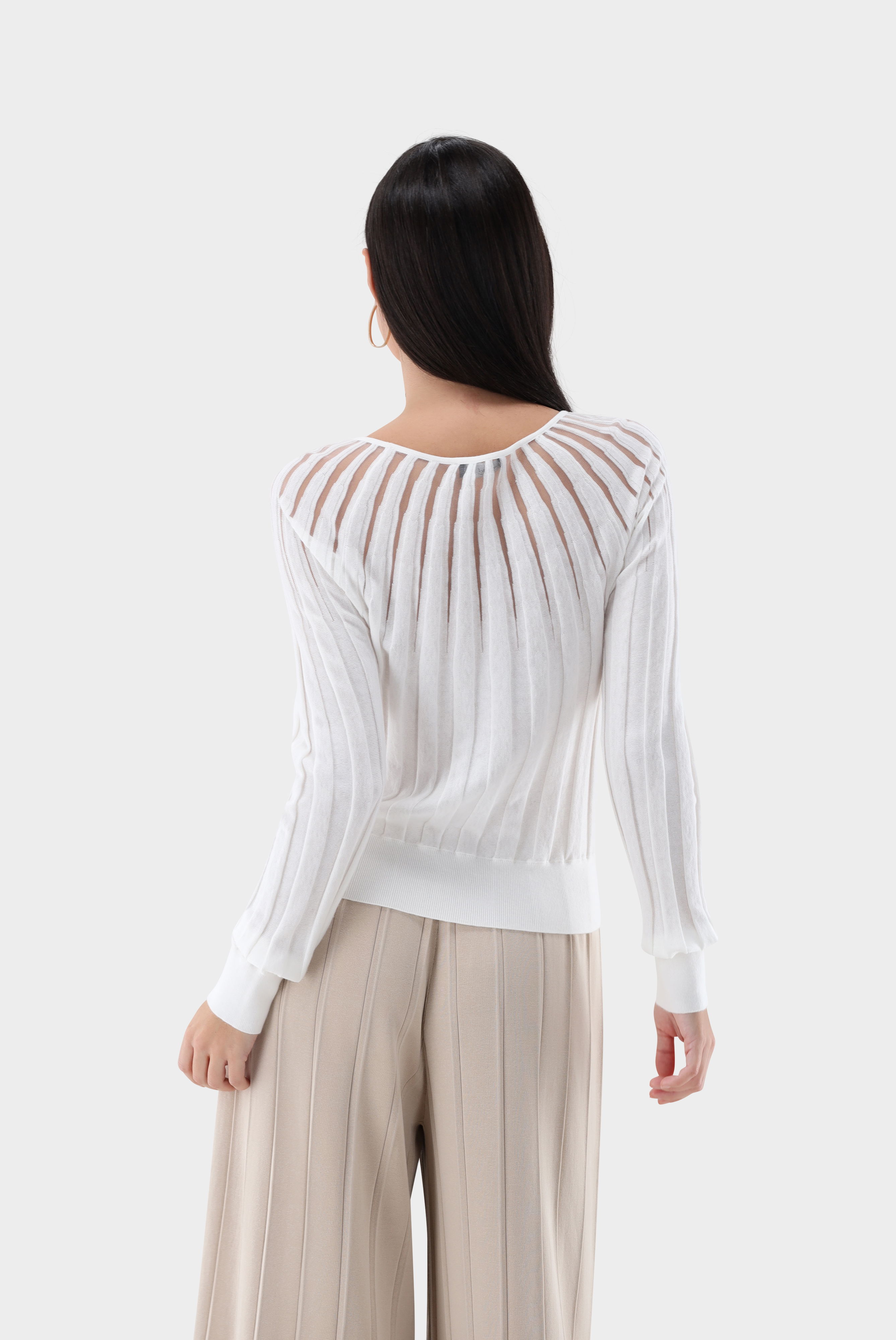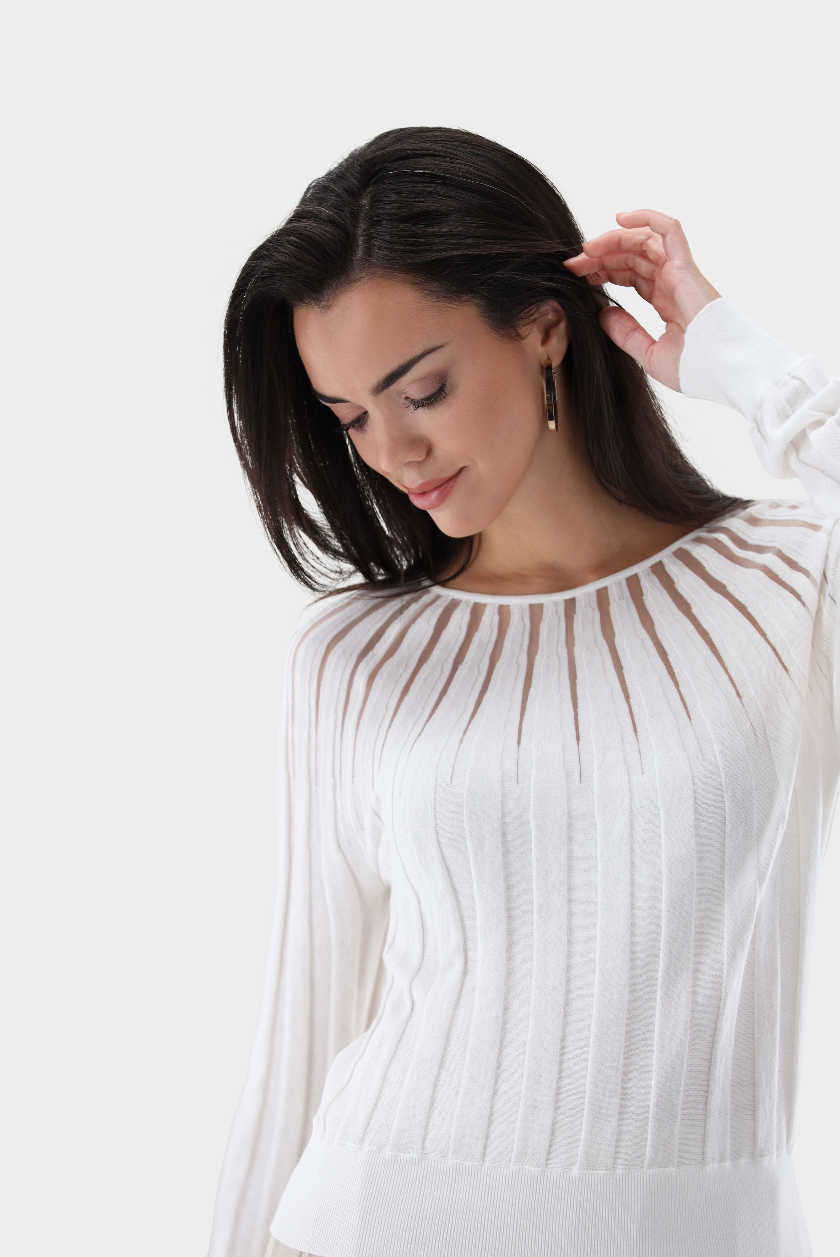Look aus Rundhalspullover mit transparenten Details