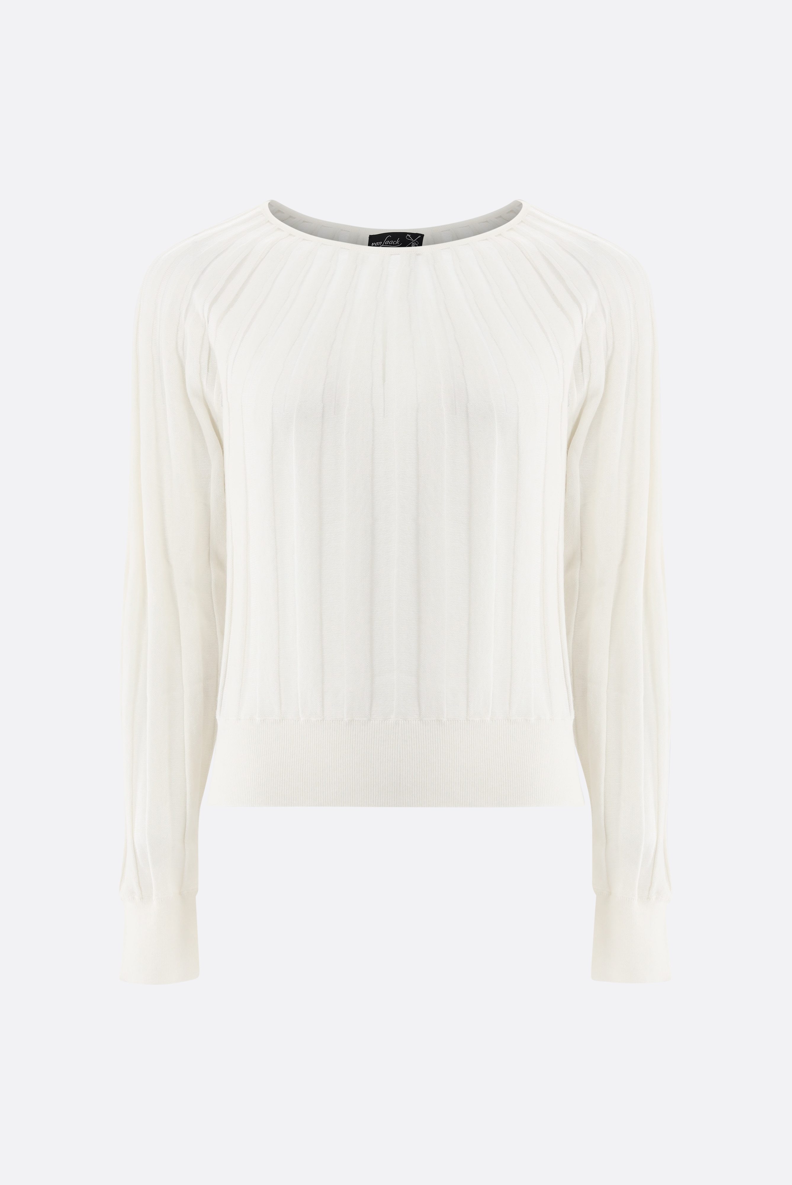 Dieser taillierte Pullover überzeugt durch eine edle Mischung mit Baumwolle und Kaschmir in feinem Strick. Der Rundhalsausschnitt wird durch halbtransparente Streifen stilvoll akzentuiert, was dem Modell eine feminine, moderne Note verleiht. Das weiche, atmungsaktive Material sorgt für angenehmen Tragekomfort und eine gepflegte Silhouette. Vielseitig kombinierbar, eignet sich der Pullover ideal für stilvolle Casual- und Smart-Casual-Looks mit hochwertiger, luxuriöser Ausstrahlung.