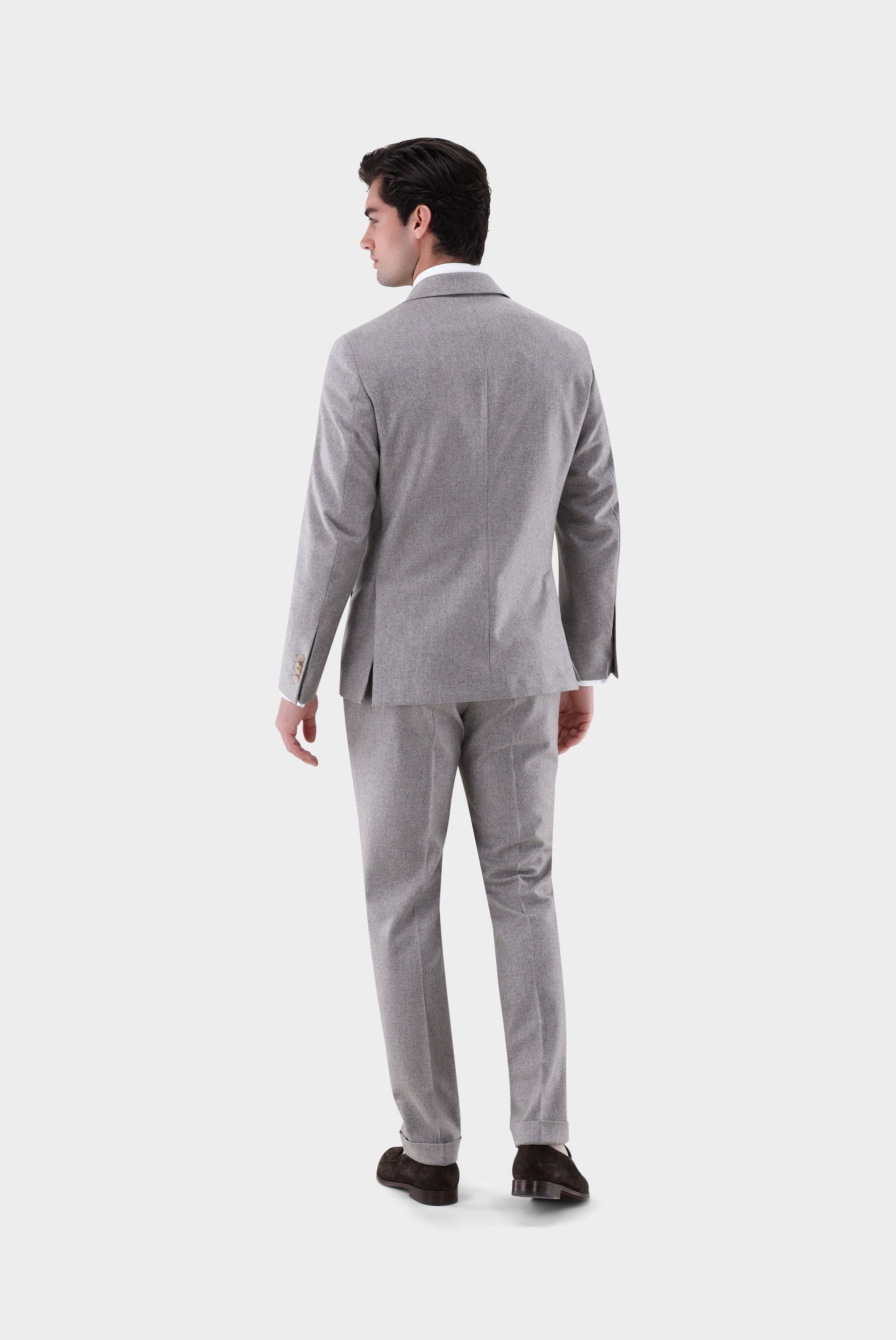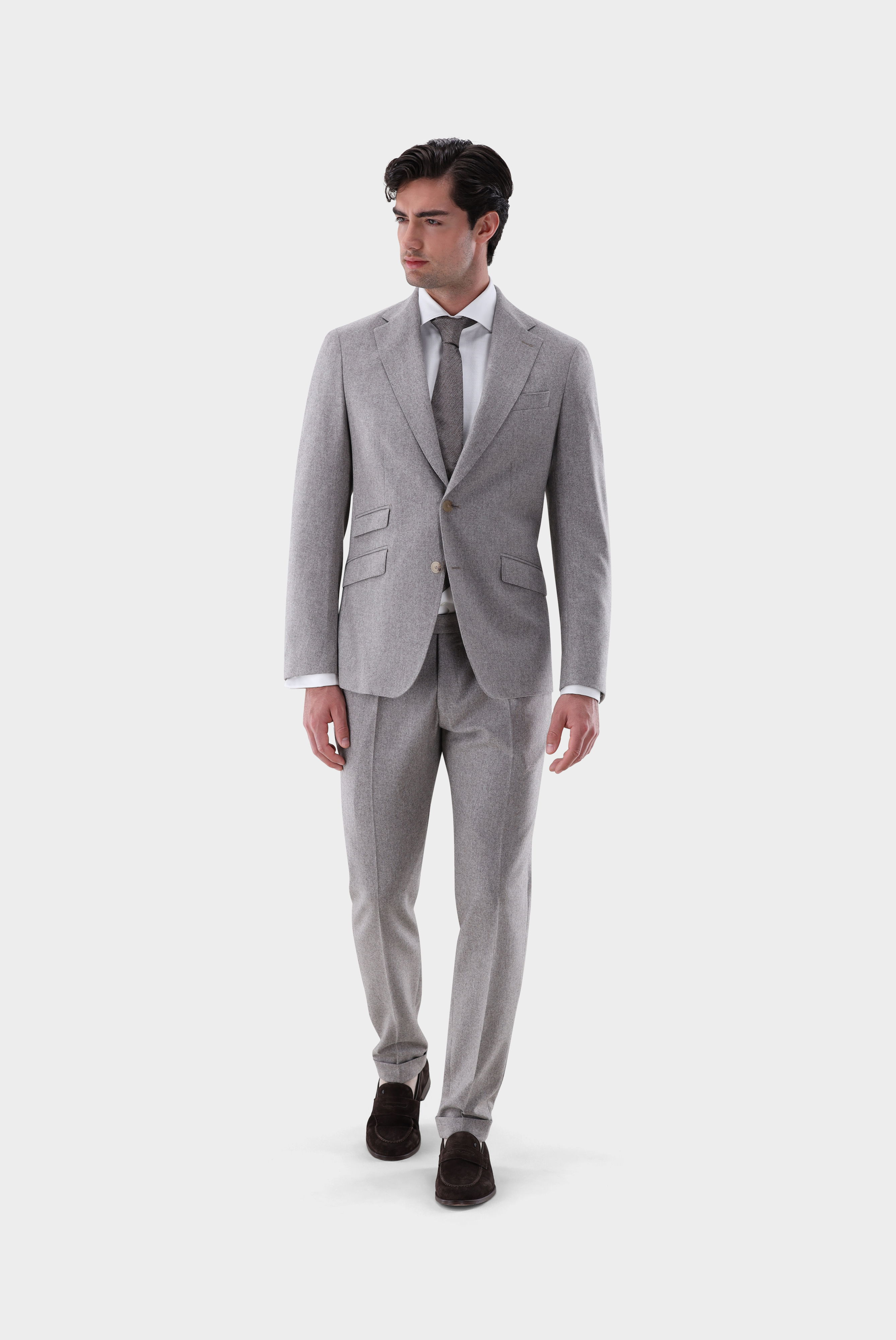 Dieses luxuriöse Flanell-Anzugssakko verbindet edles Design mit zeitloser Eleganz. Das 9,5 cm hohe Revers unterstreicht die markante Linienführung und sorgt für eine klassische Ausstrahlung. Mit Pattentaschen, Brust- und Tickettasche verfügt das Modell über praktische Details, die den stilvollen Charakter abrunden. Dank der teilweisen Fütterung bietet das Sakko hohen Tragekomfort und Bewegungsfreiheit – perfekt für anspruchsvolle Business-Looks und festliche Anlässe.
