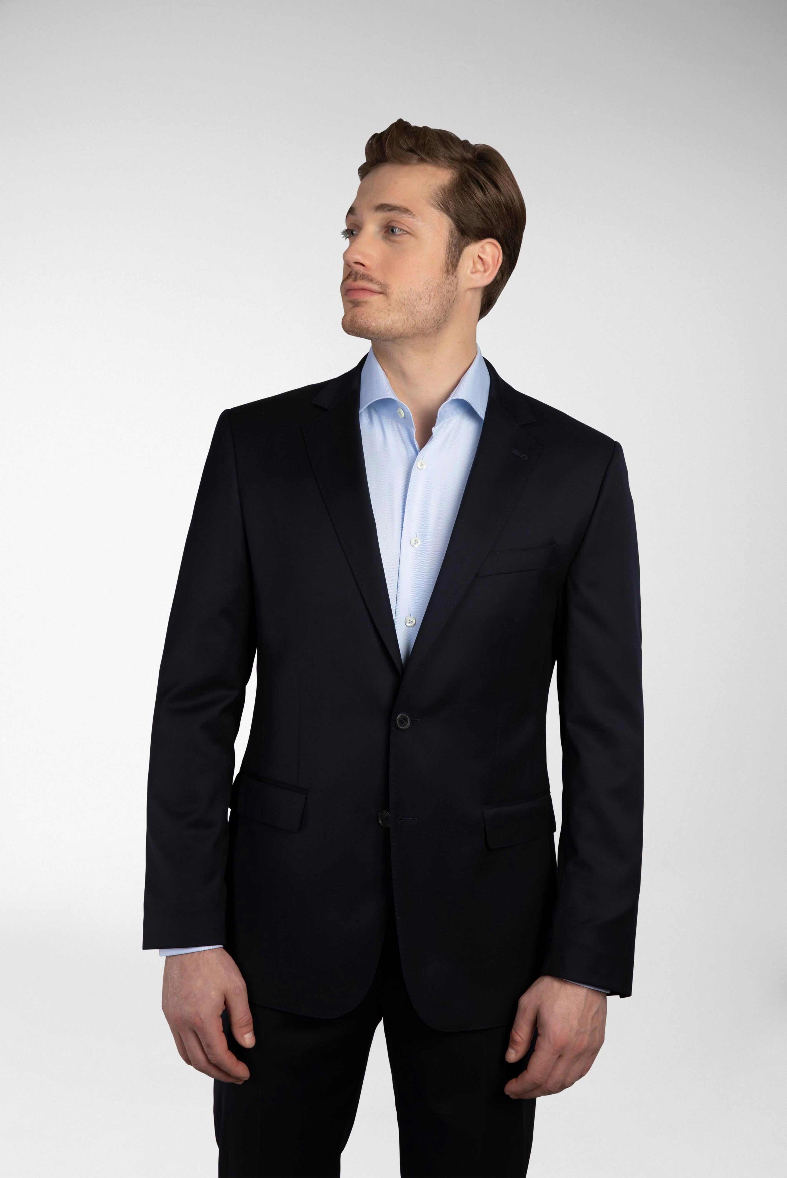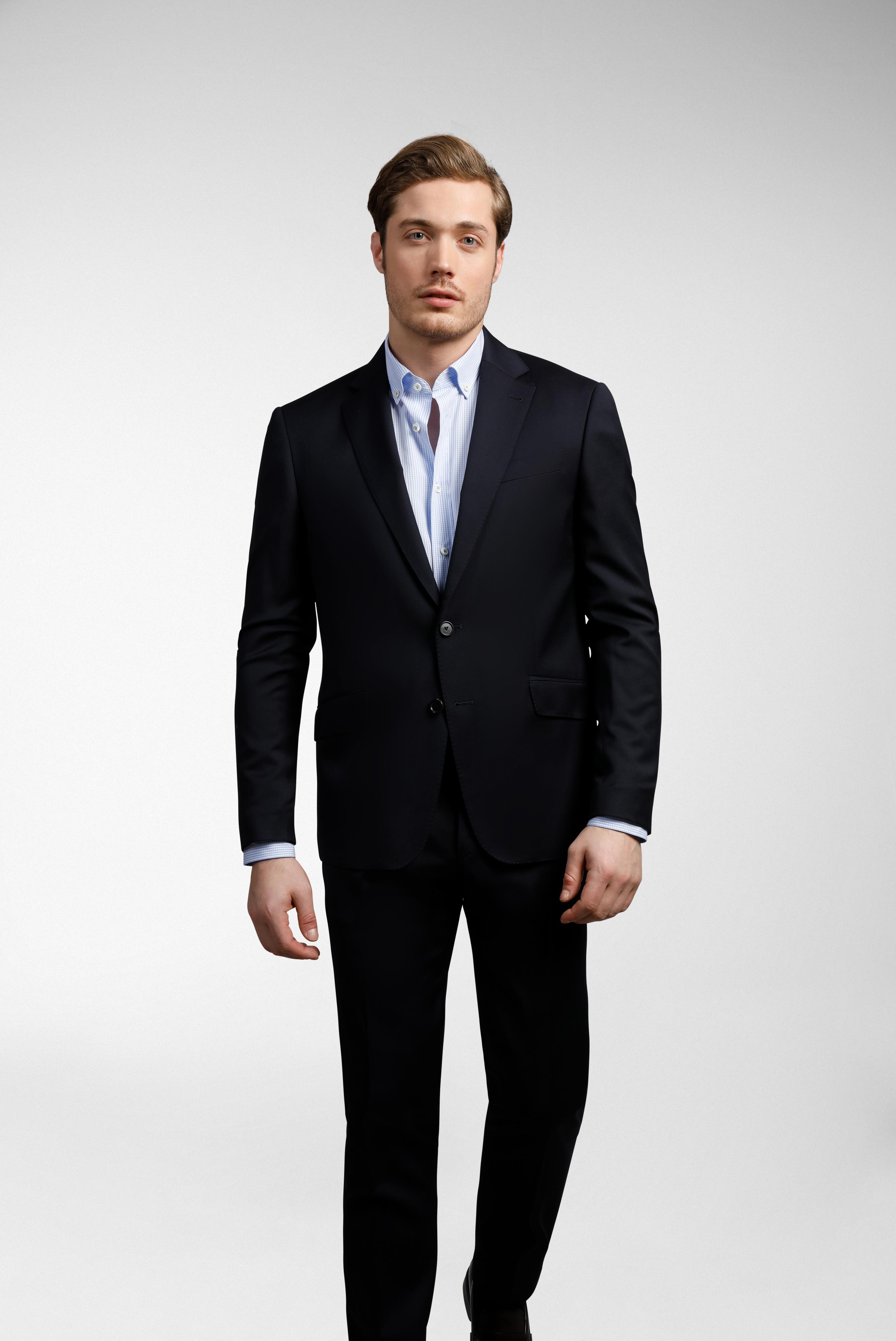 Exklusives Zwei-Knopf-Sakko aus feinster Wolle des italienischen Luxuswebers Loro Piana im Tailor Fit. Neben seinen zwei Seitenschlitzen kennzeichnen paspelierte Pattentaschen dieses in eleganten Anthrazit gehaltene Sakko. Zudem besticht dieses Sakko mit liebevollen Details der Schneiderkunst, wie funktionalen Knopflöchern an den Ärmeln und pikierten Rosshaareinlagen, die seinen edlen Charakter unterstreichen. Nur aus den extrafeinen 130S Woll-Serge vom australischen Merinoschaf gearbeitet, bietet dieses Sakko perfekten Tragekomfort.