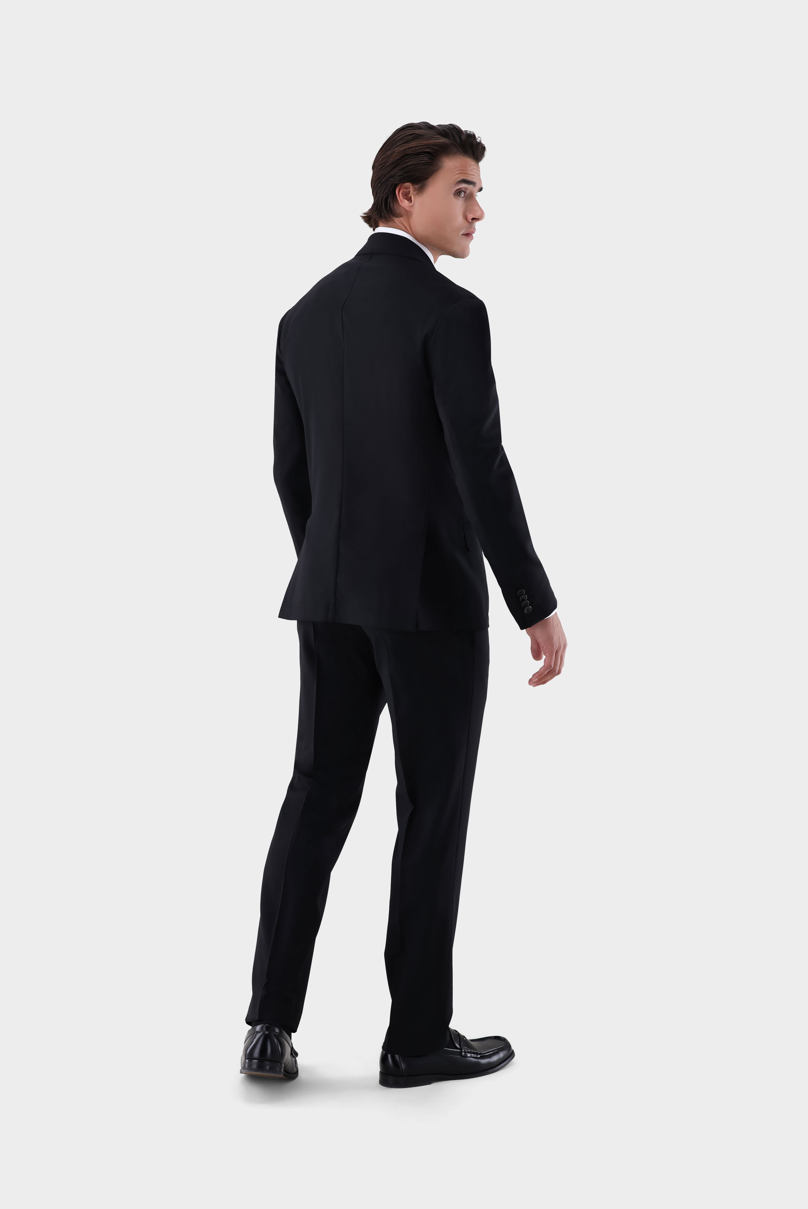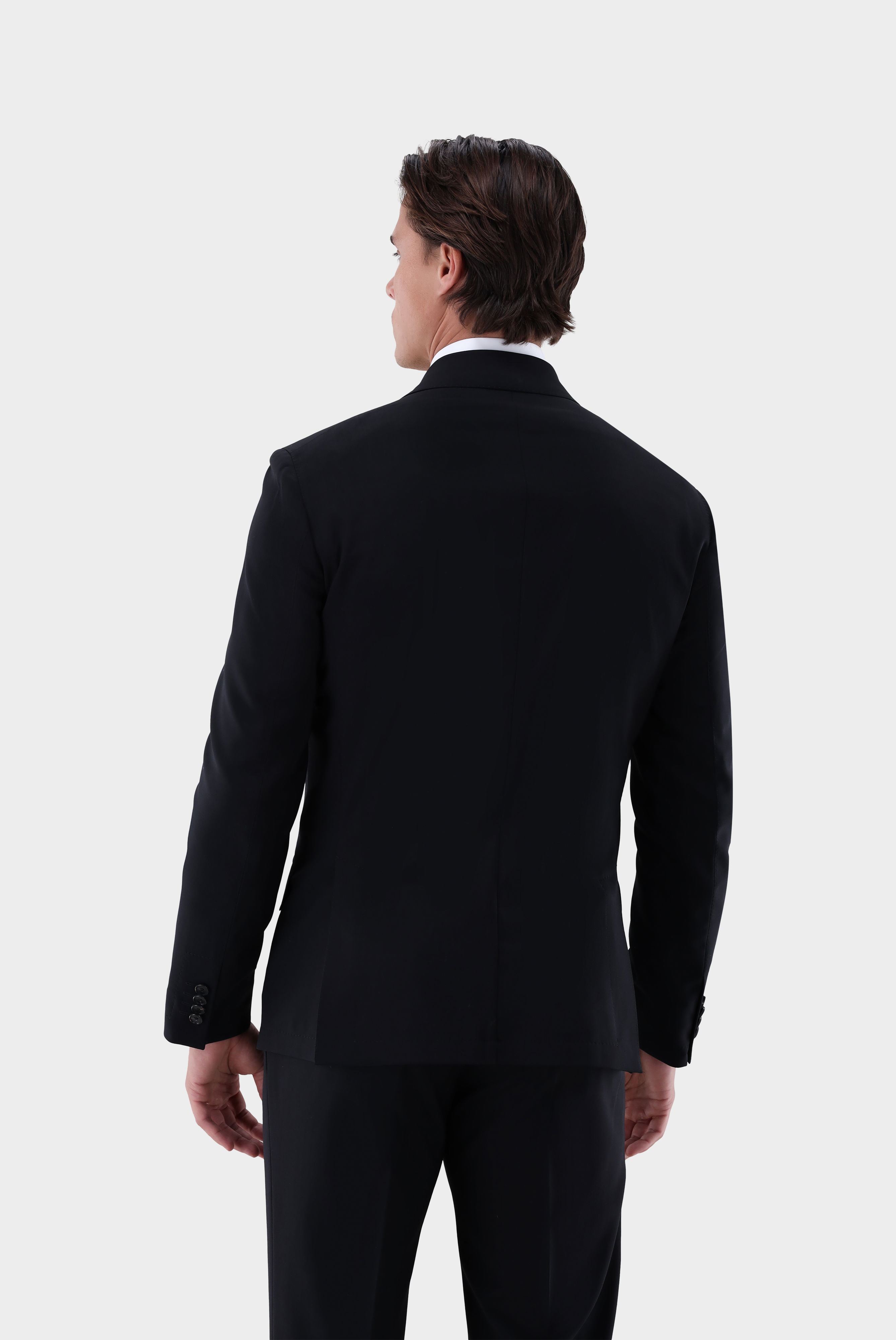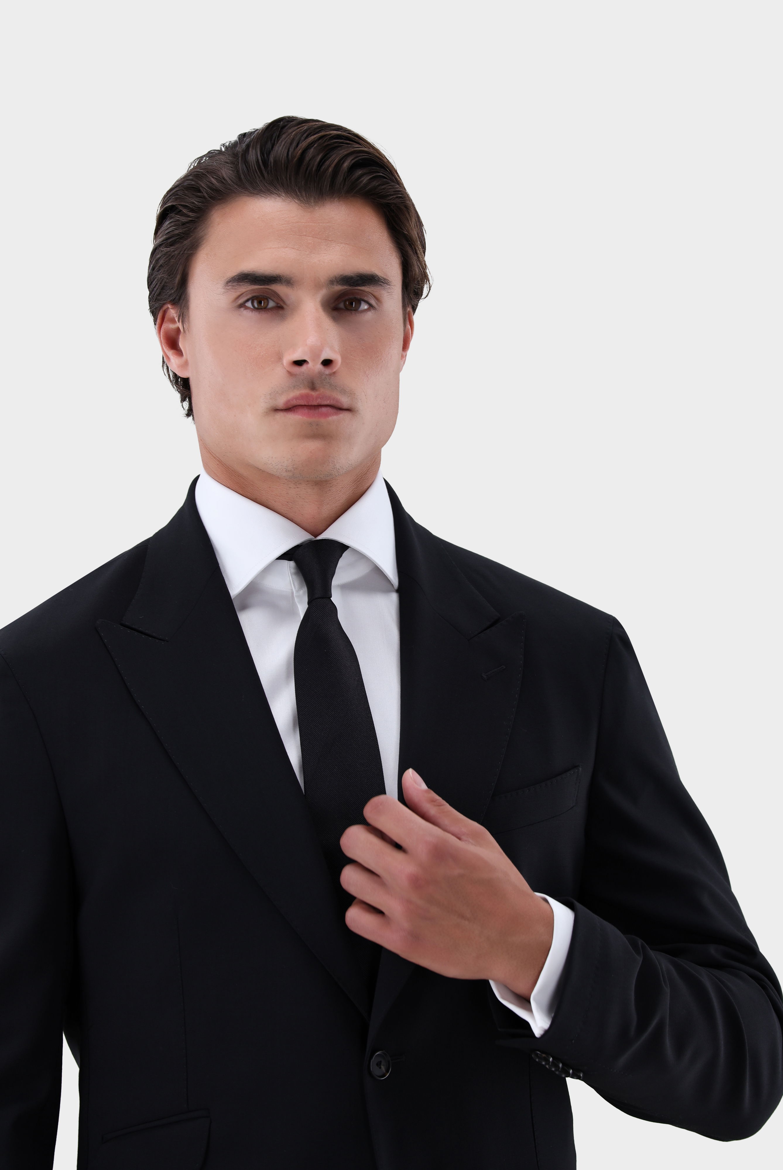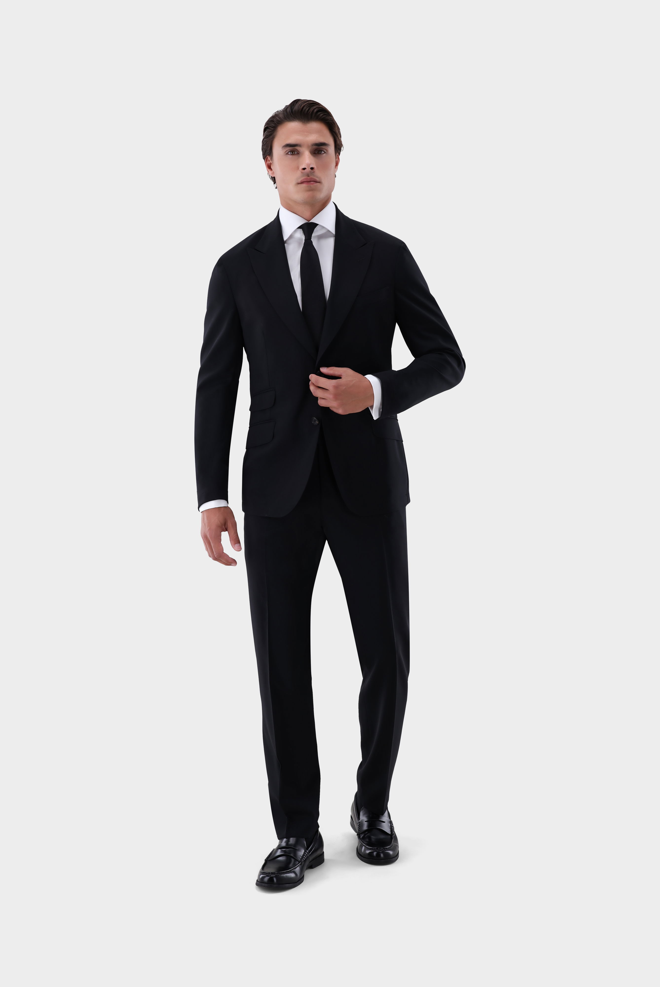 Look aus Sakko aus Wolle mit aufsteigendem Revers