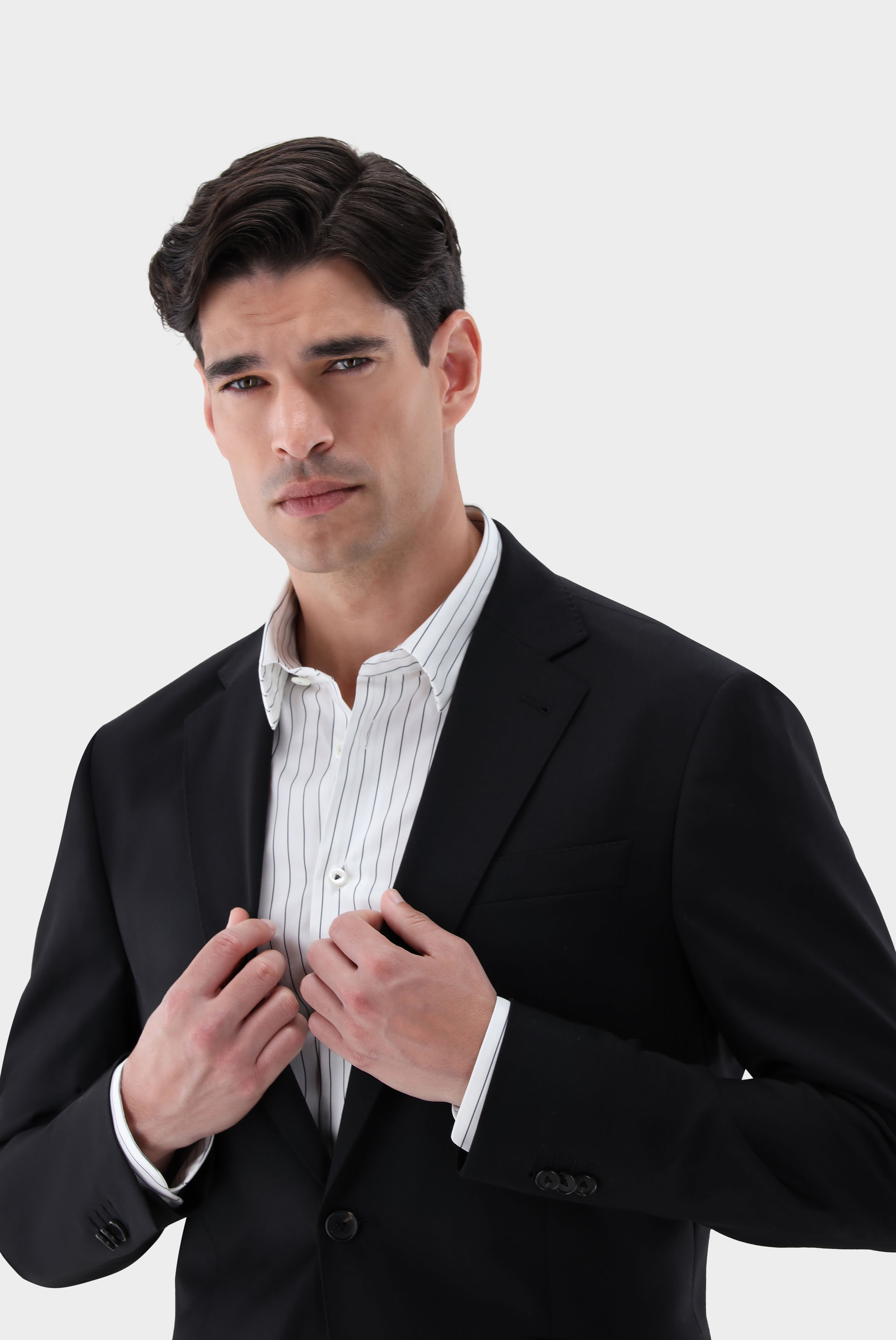Slim Fit - Sakko aus feiner Schurwolle. Überzeugend mit aufknöpfbarem Ärmelschlitz und klassischem Reverskragen. Perfekt für feierliche Anlässe oder einen modernen Business Look.