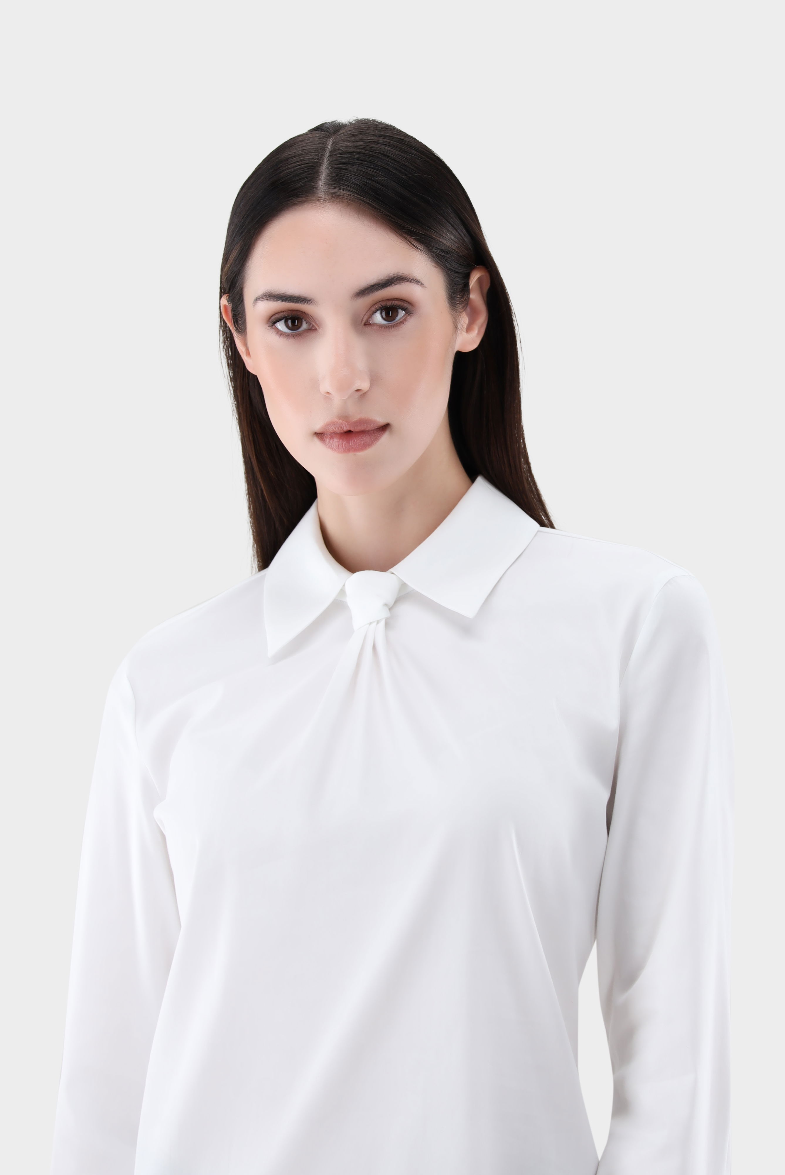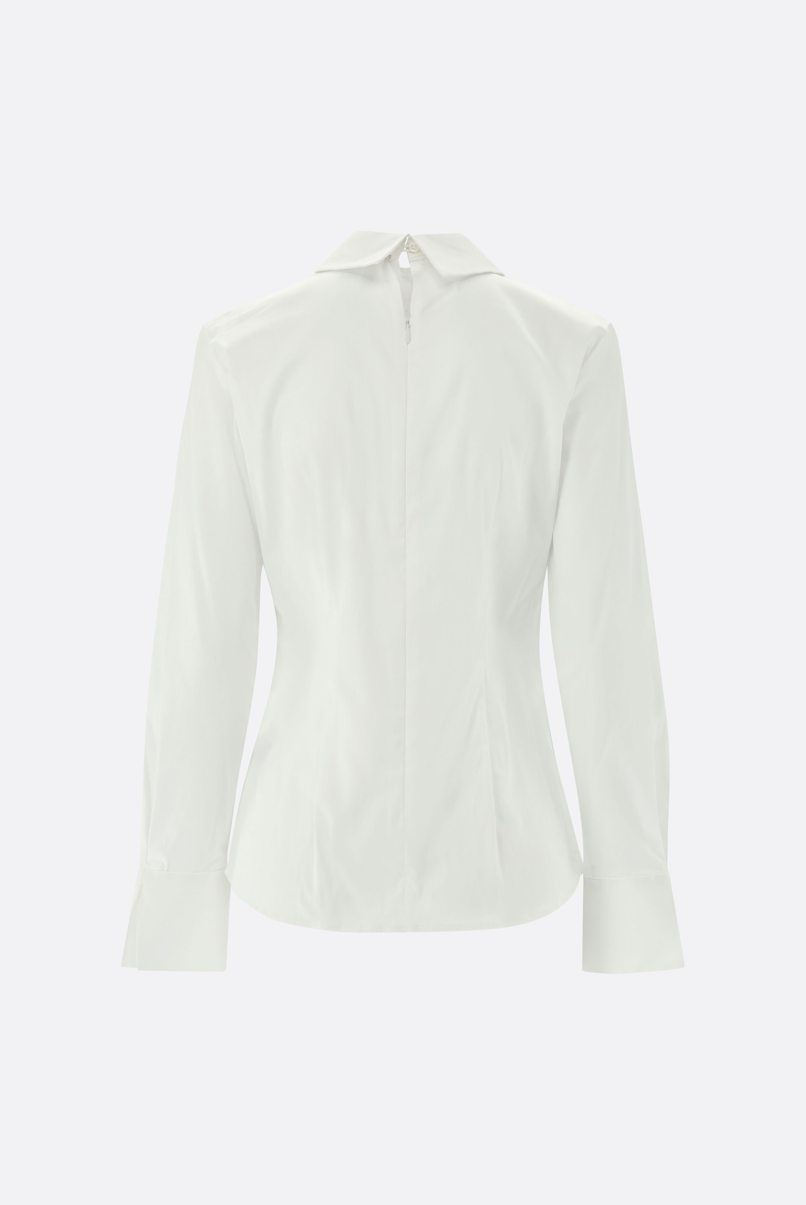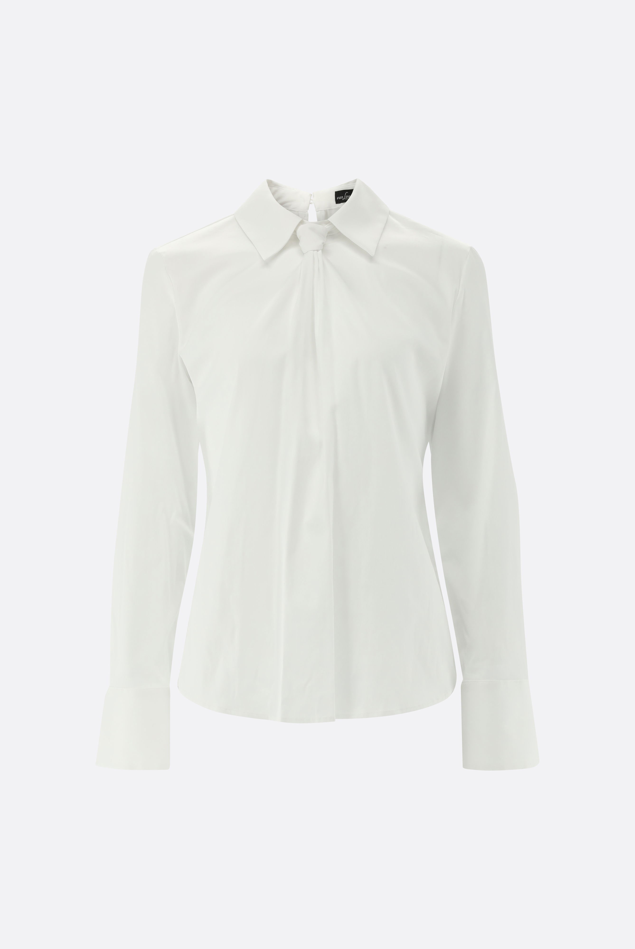Unsere eng geschnittene Schlupfbluse aus Satin mit langen Ärmeln verfügt über einen Kragen mit Knotendetail in Krawattenoptik. Sie besteht aus einem Baumwollstretch-Gemisch und hat einen nahtfeinen Reißverschluss im Rücken. Perfekt geeignet für geschäftliche Anlässe und festliche Gelegenheiten.