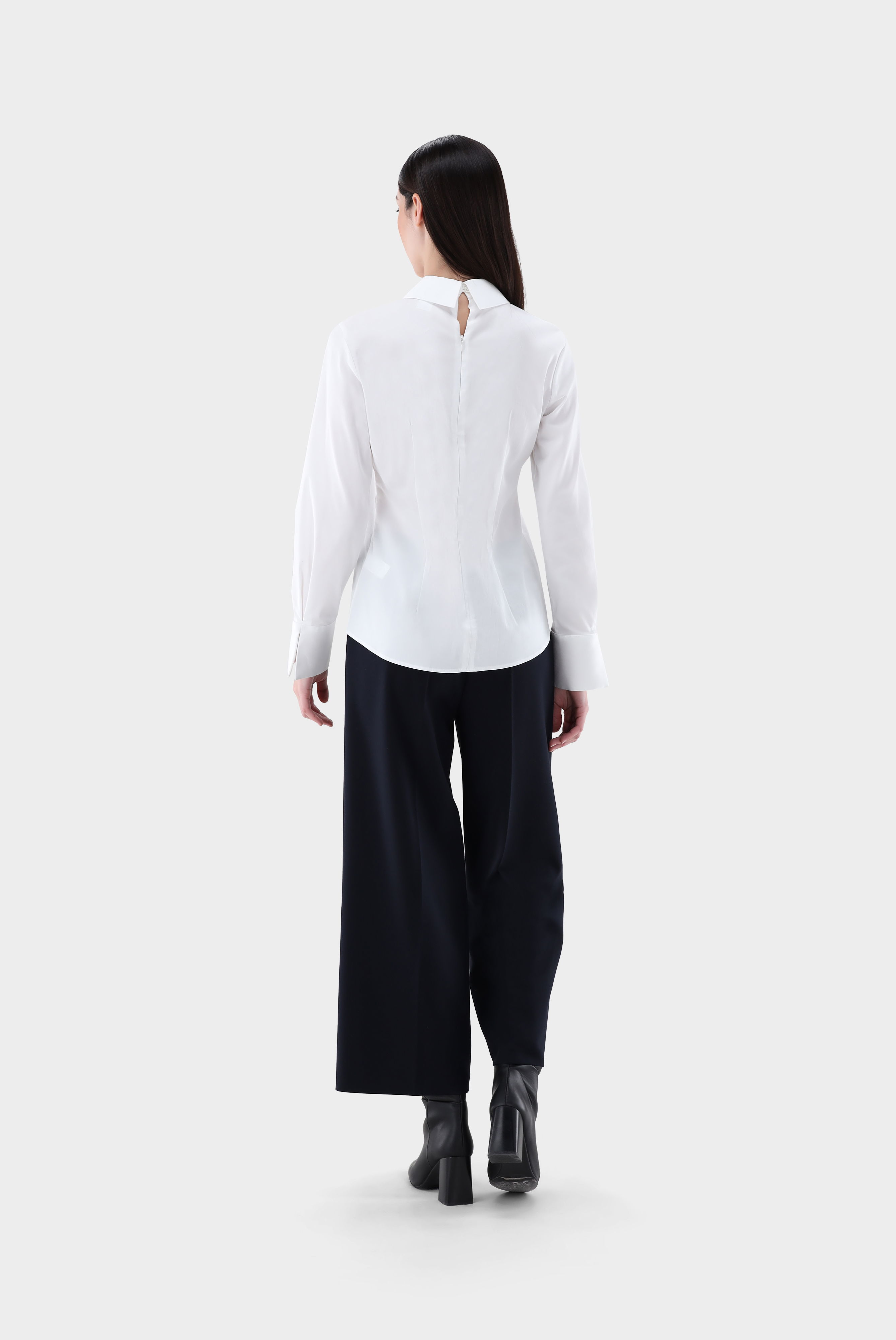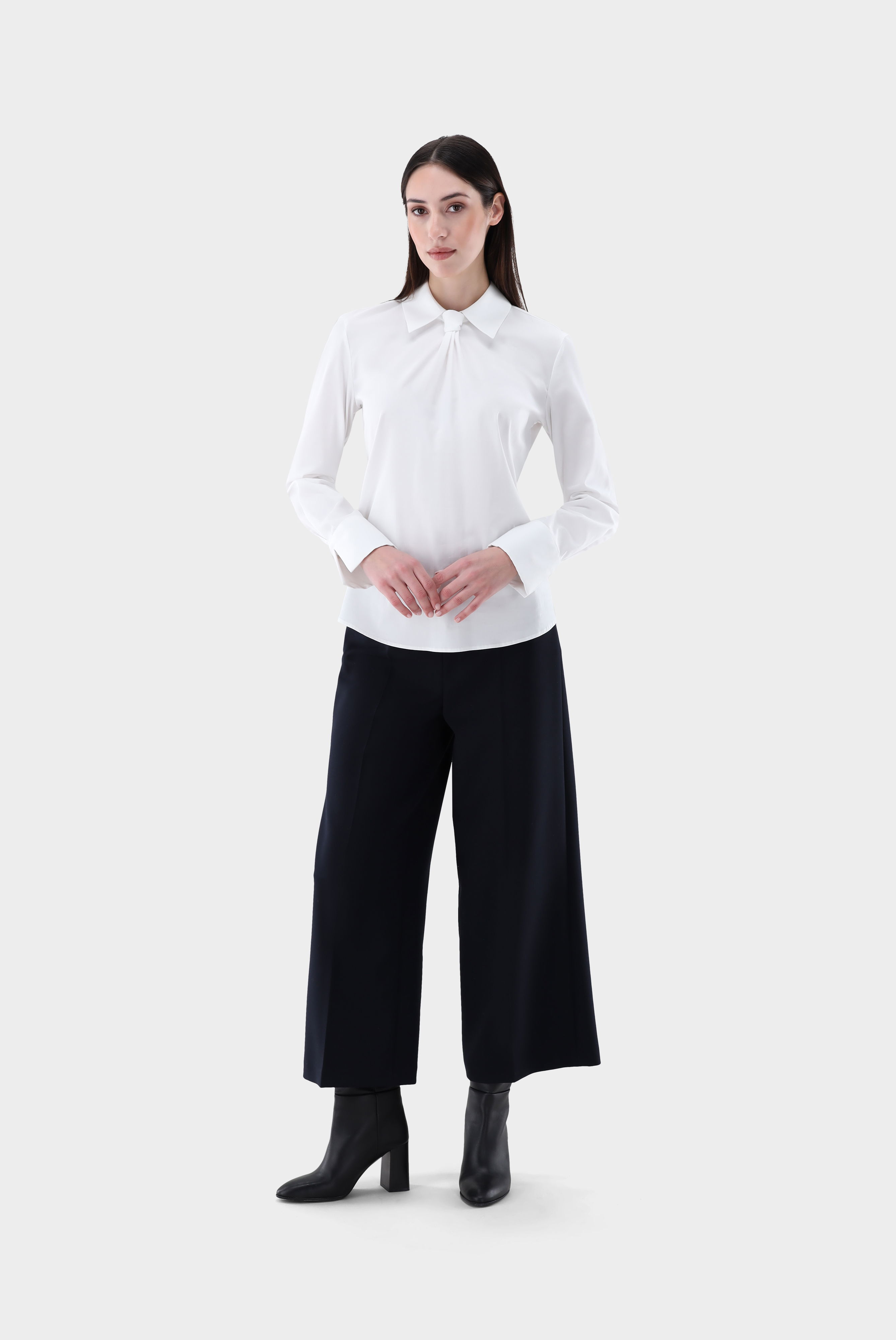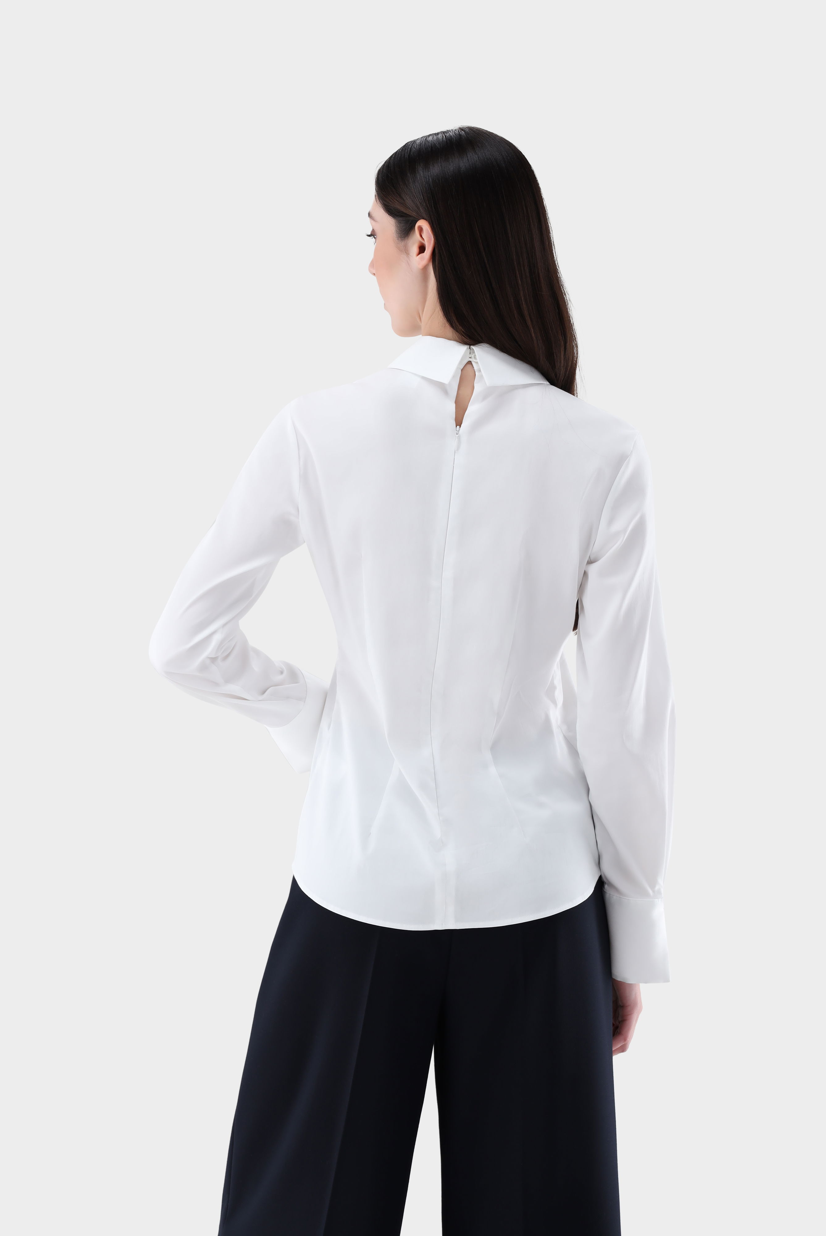 Unsere eng geschnittene Schlupfbluse aus Satin mit langen Ärmeln verfügt über einen Kragen mit Knotendetail in Krawattenoptik. Sie besteht aus einem Baumwollstretch-Gemisch und hat einen nahtfeinen Reißverschluss im Rücken. Perfekt geeignet für geschäftliche Anlässe und festliche Gelegenheiten.