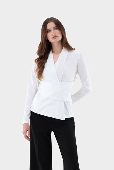 Look aus Schlupfbluse tailliert mit Wickeloptik