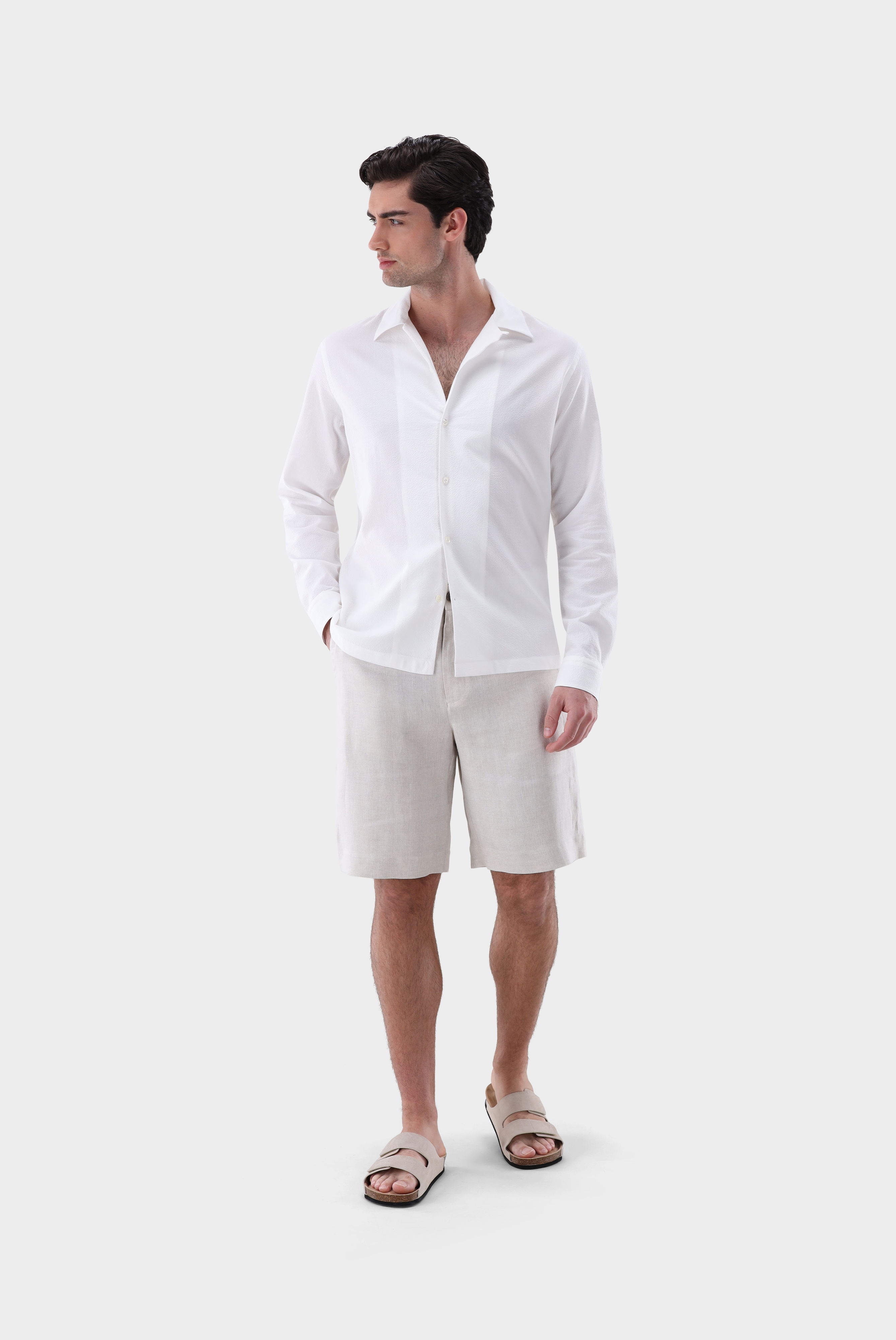 Look aus Seersucker-Hemd mit Reverskragen