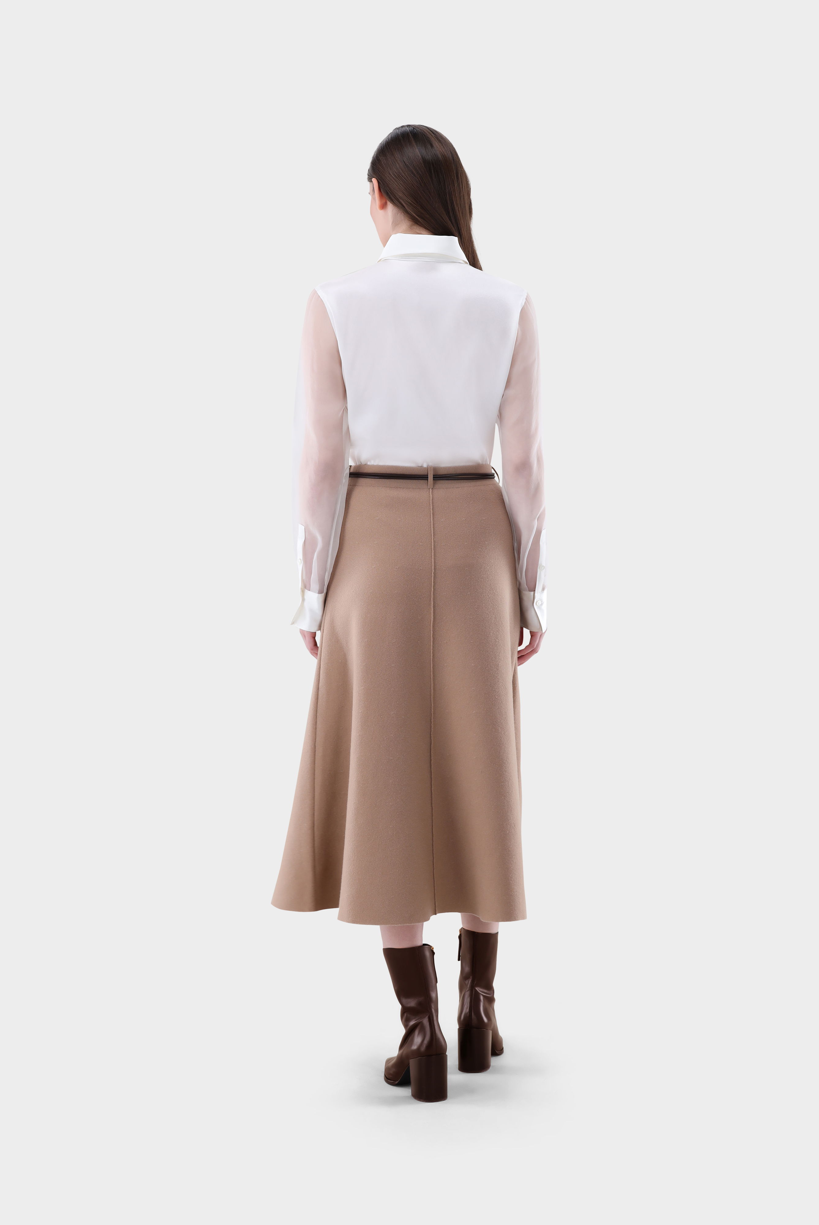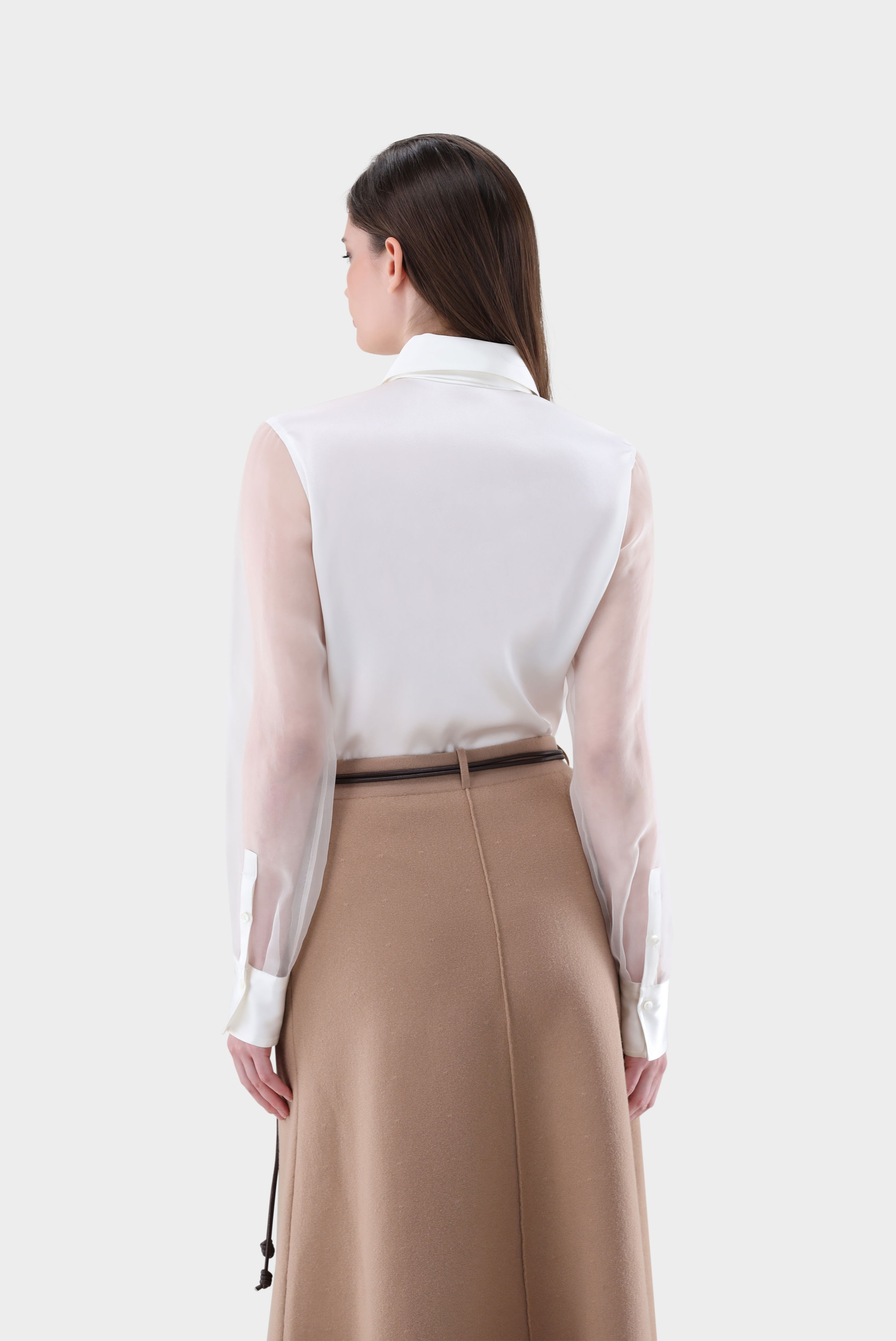 Look aus Seidenbluse mit Organza Ärmeln