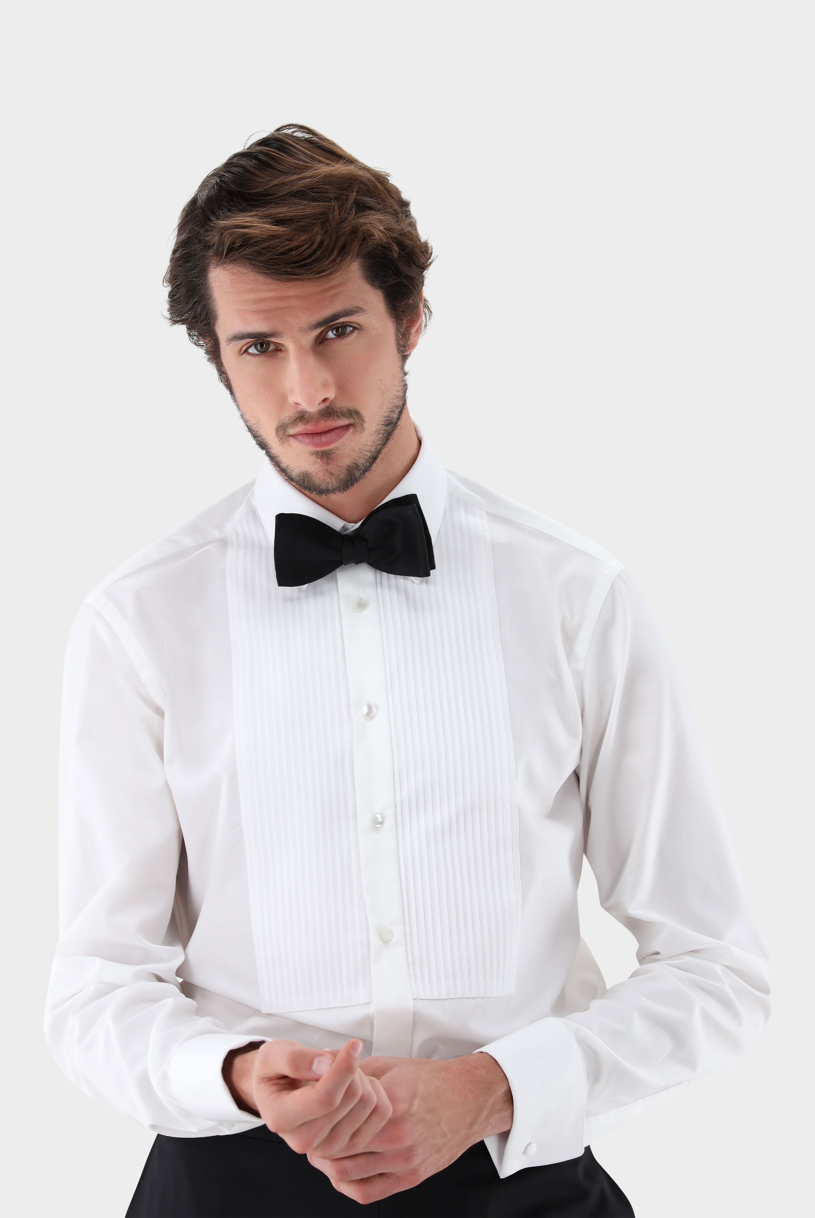 Konzipiert für Black-Tie-Events. Ein elegantes Smokinghemd mit Plissee-Einsatz, welches Ihren Abend-Look zu etwas ganz Besonderem macht. Zurückhaltung, die sofort ins Auge fällt. Das Hemd eignet sich für den Einsatz von Smoking Knöpfen und verfügt über eine Doppelmanschette.