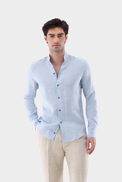 Look aus Stehkragen Hemd aus Leinen