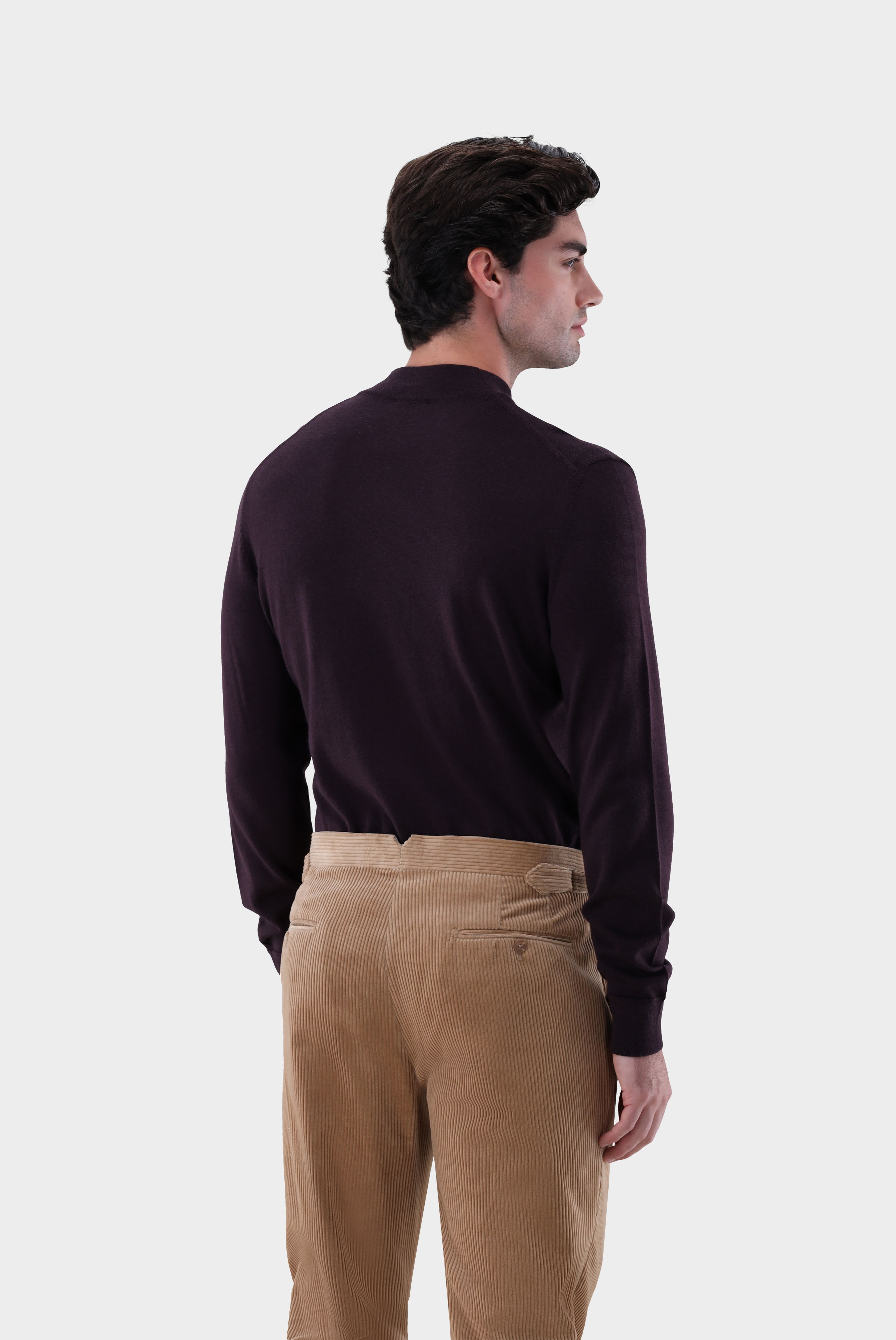 Der Stehkragenpullover aus exklusiver merzerisierter Merinowolle ist ein klassisches und hochwertiges Kleidungsstück. Hergestellt aus feinster merzerisierter Merinowolle, bietet dieser Pullover ein angenehmes Tragegefühl und eine edle Optik. Der Stehkragen verleiht dem Pullover eine zeitlose Eleganz und unterstreicht den modernen Stil. Dieser Pullover ist vielseitig kombinierbar und eignet sich sowohl für formelle Anlässe als auch für den lässigen Freizeitlook. Die merzerisierte Merinowolle sorgt für eine angenehme Wärmeisolierung und Atmungsaktivität, wodurch der Pullover das ganze Jahr über getragen werden kann. Die Passform ist schlank und schmeichelhaft, was dem Pullover eine moderne Silhouette verleiht.