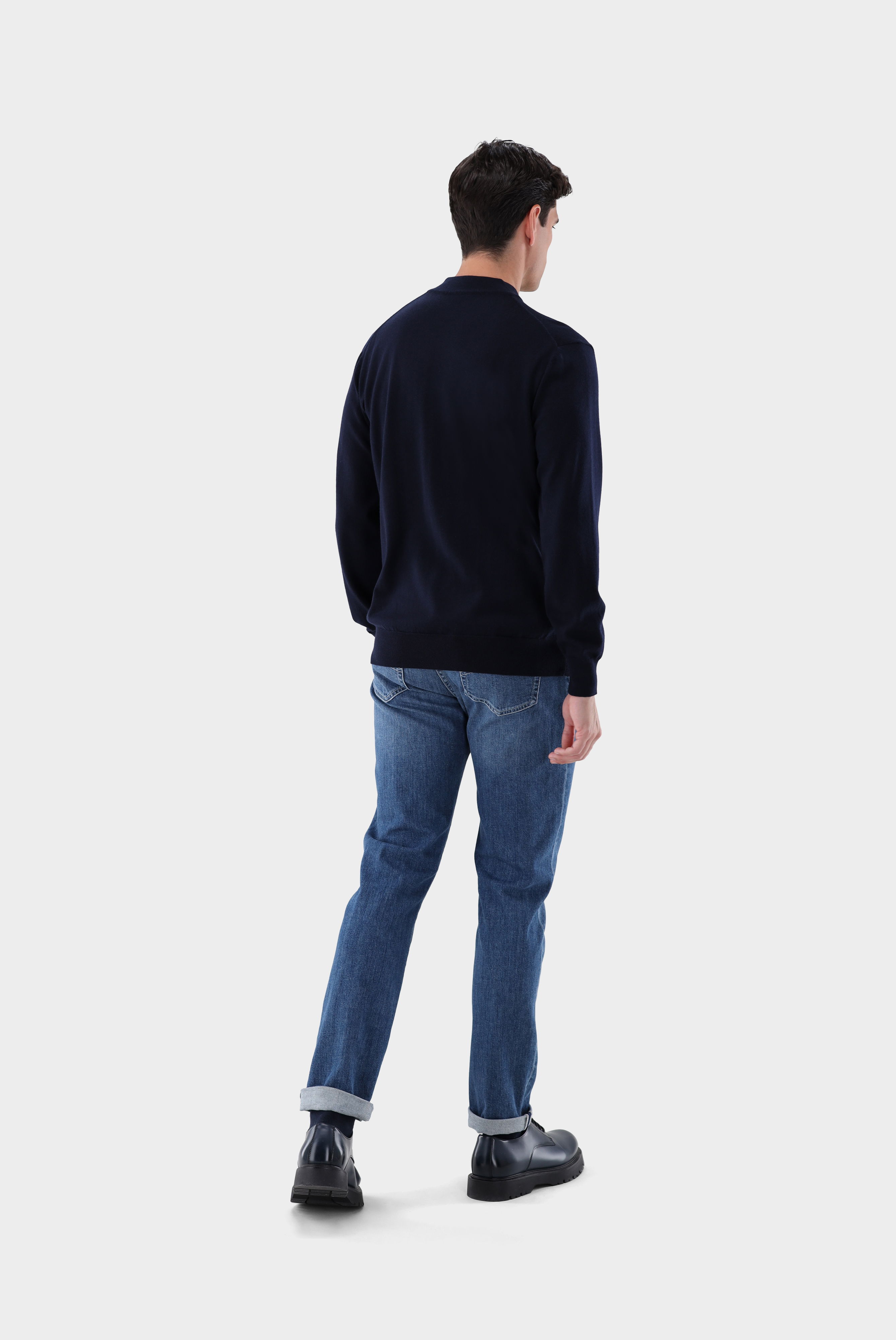 Look aus Stehkragenpullover aus Merzerisierter Merinowolle