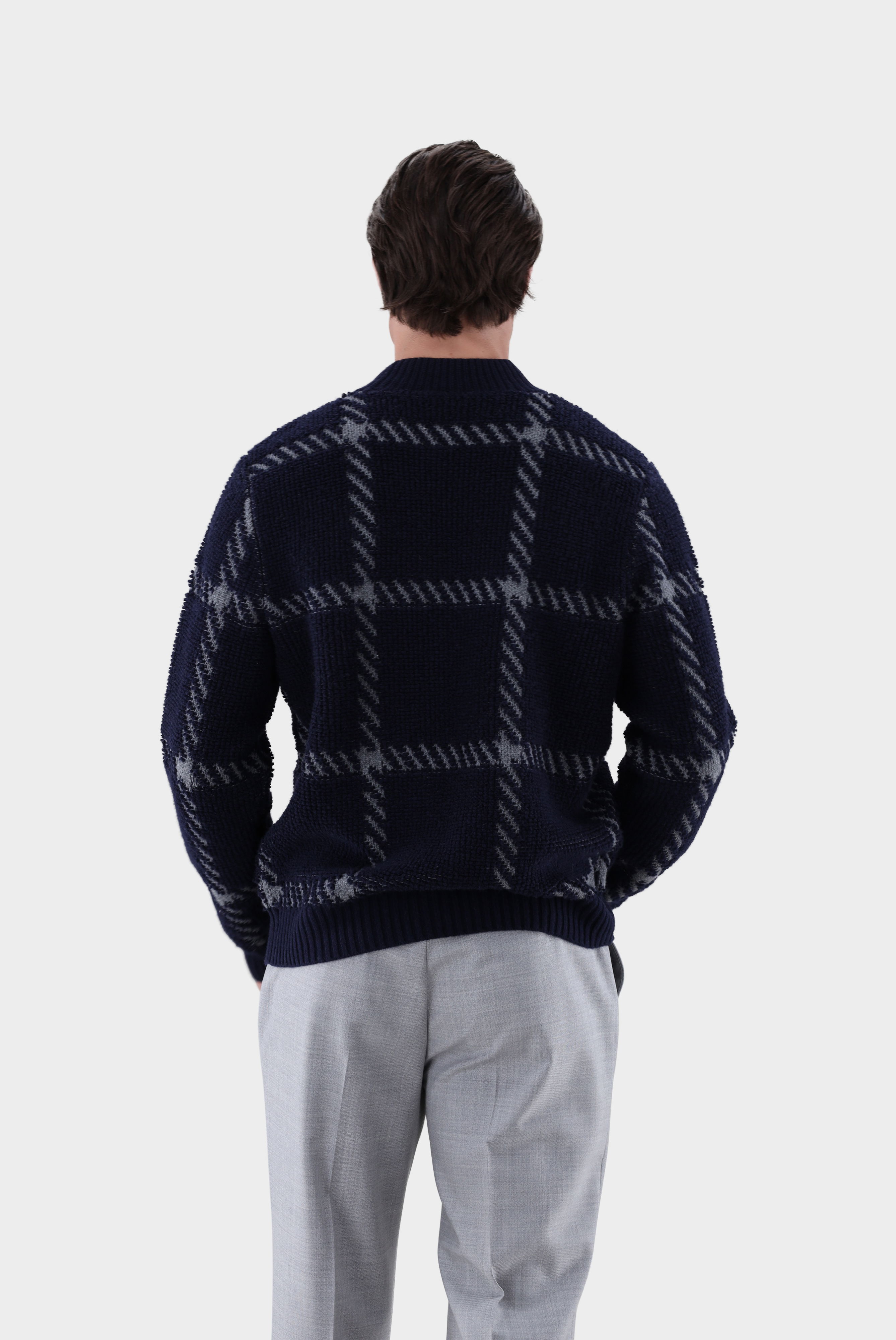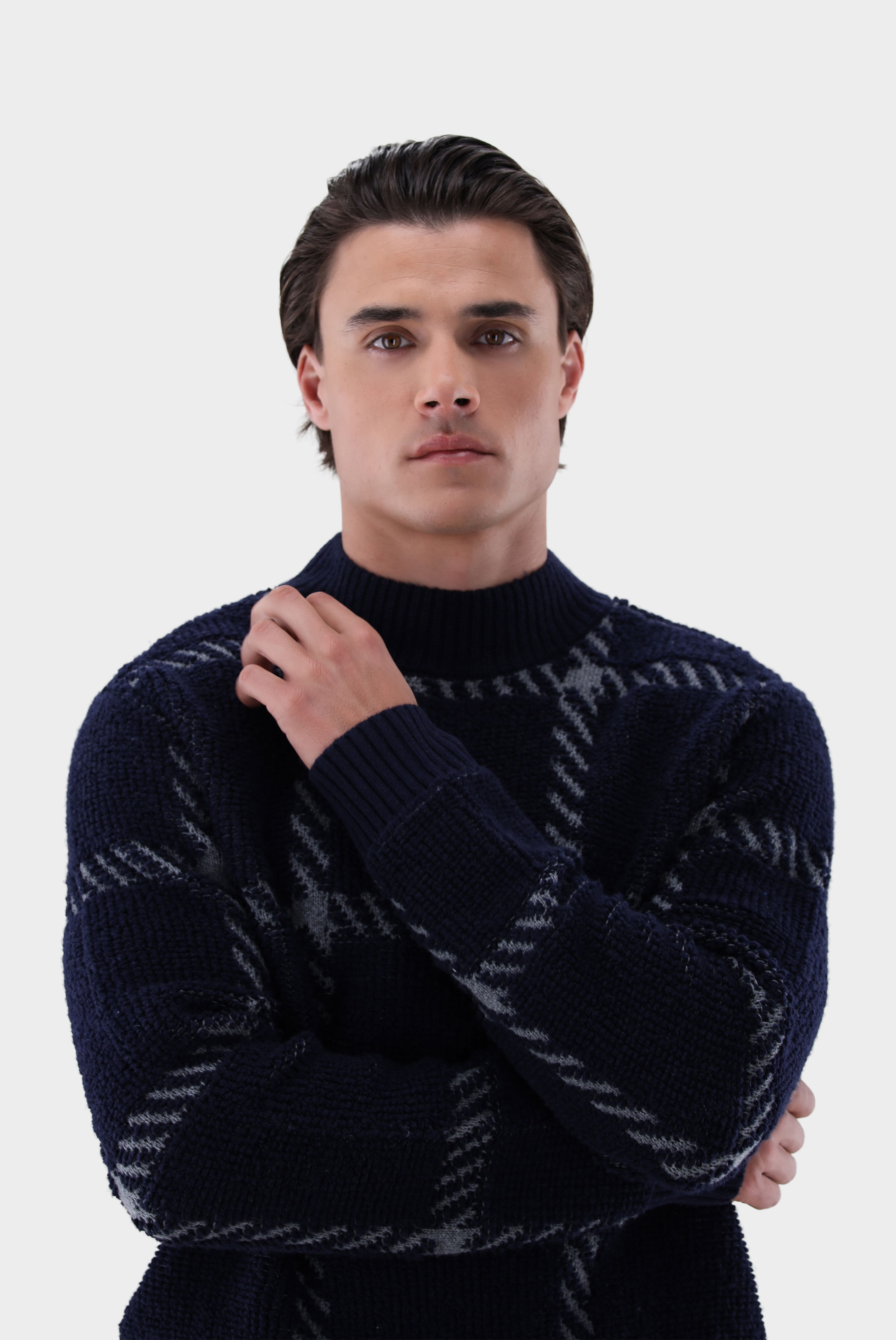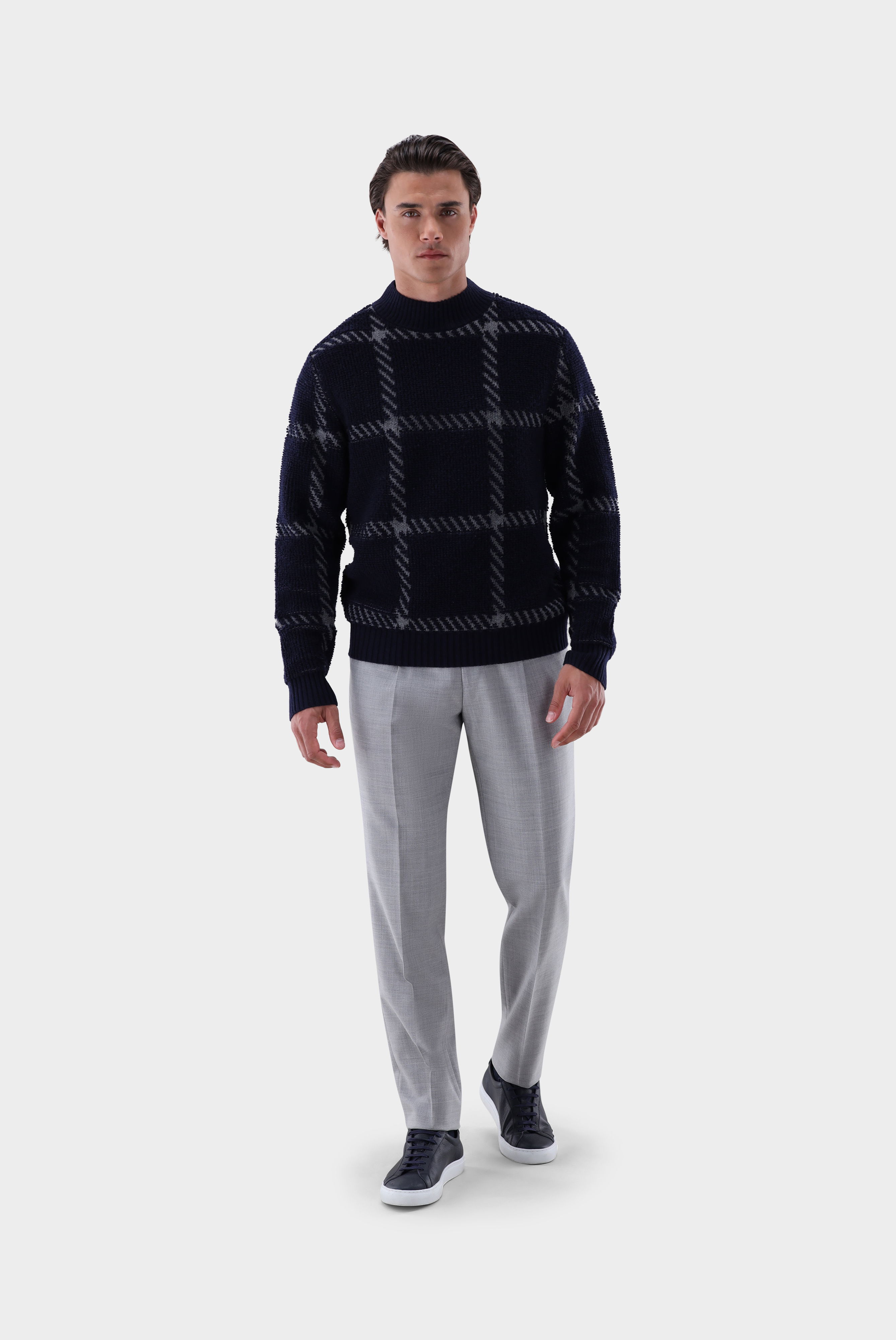 Kuscheliger Pullover mit Kaschmir und zweifarbigem Jacquard-Karomuster für einen stilvollen Akzent. Der wärmende, besonders weiche Strick sorgt für hohen Tragekomfort, während der Stehkragen zusätzlichen Schutz vor Kälte bietet. Die hochwertige Verarbeitung und das markante Muster machen den Pullover zu einem eleganten Begleiter für kühle Tage – ideal für anspruchsvolle Freizeitlooks oder gepflegte Winter-Outfits.