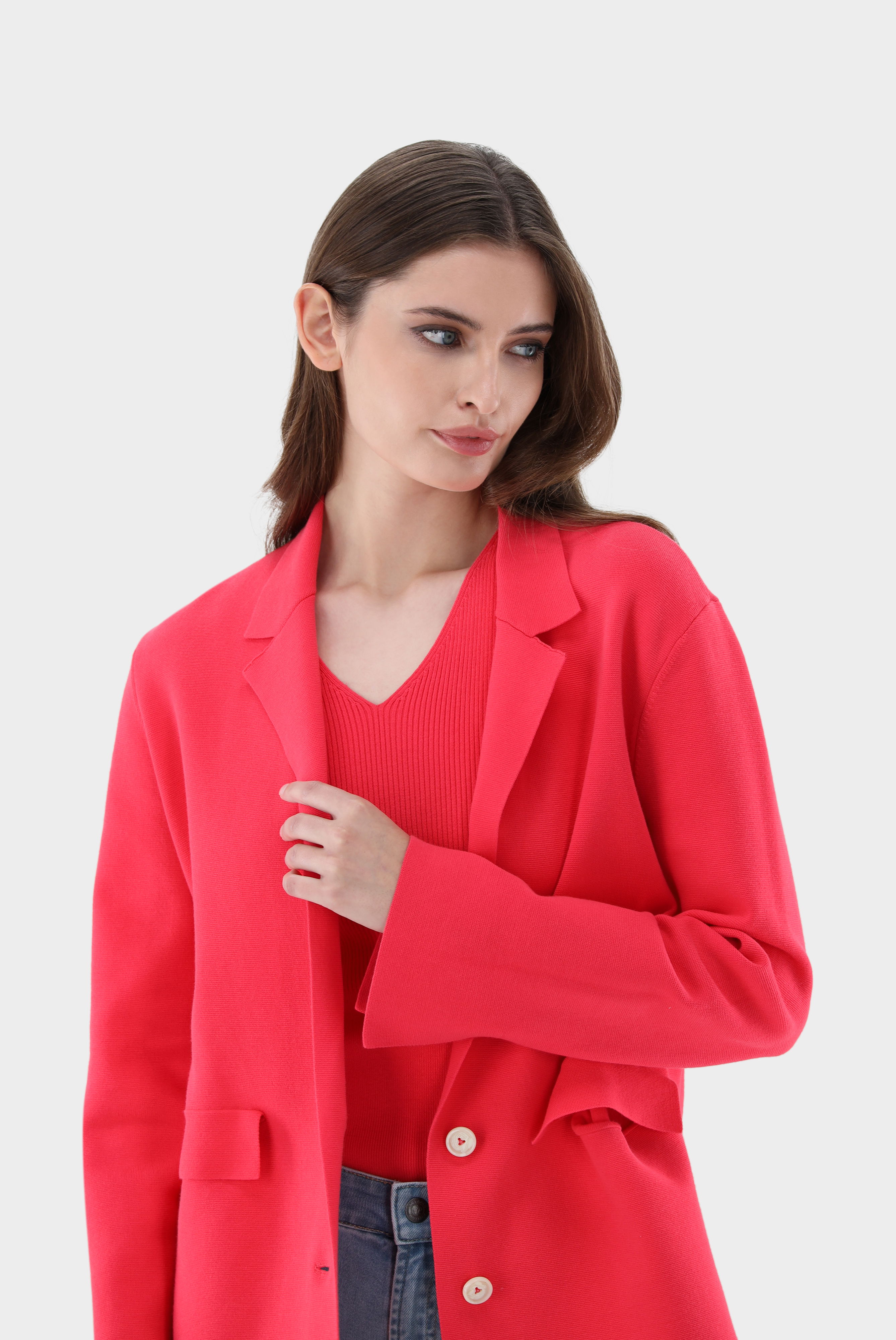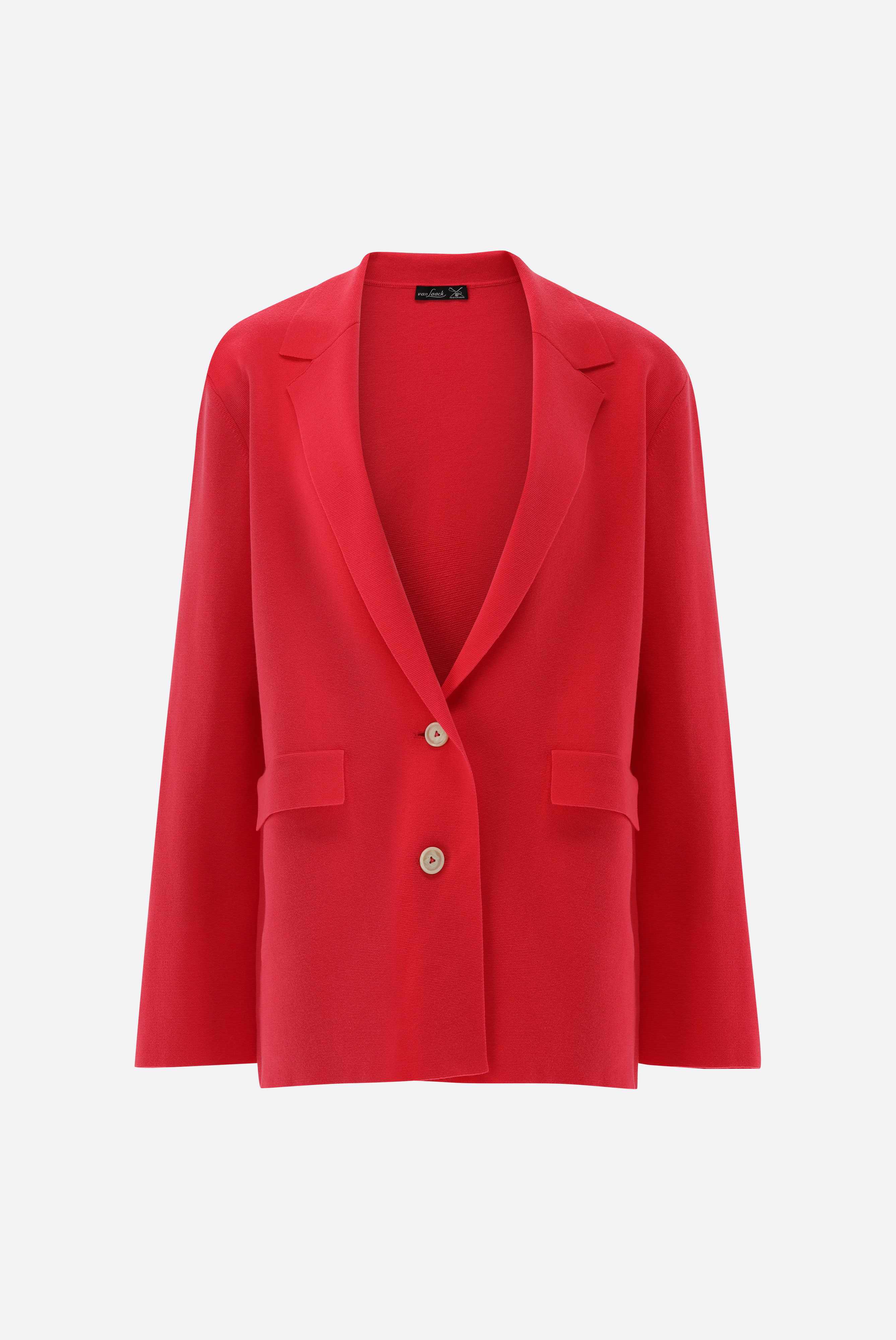Der edle Strick Blazer aus Air Cotton besticht durch eine angezogene Optik, bei hohem Tragekomfort durch die Elastizität des Stricks. Der einreihige Blazer verfügt über ein gekerbtes Revers, lange Ärmel, zwei seitliche Pattentaschen und wird im Milano-Strick aus Air-Cotton-Stretch-Mischung gefertigt. Er lässt sich ideal mit der Hose Swala oder dem Top Serinia kombinieren.