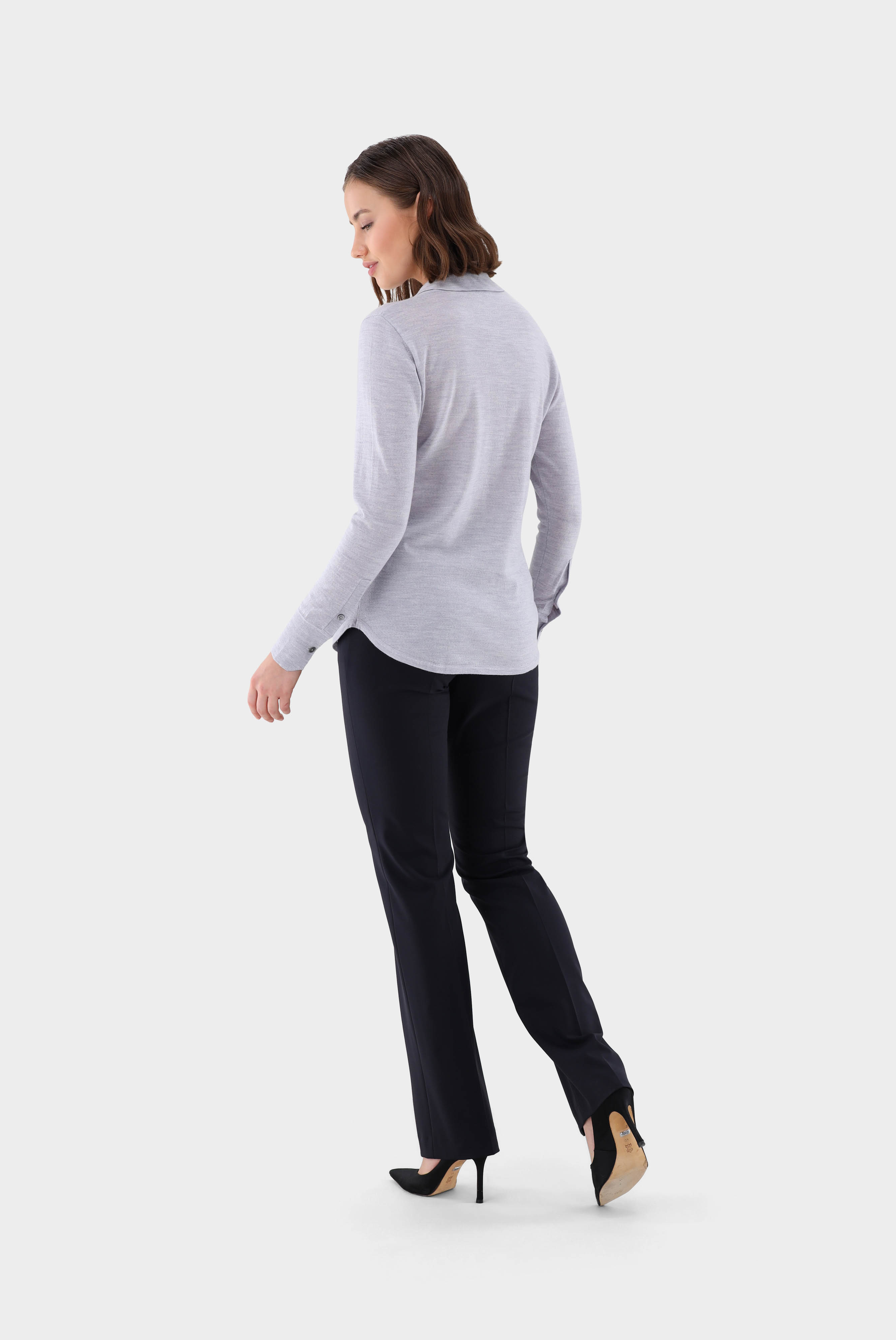 Entdecken Sie unsere Strickbluse aus Schurwolle mit Hemdblusenkragen und offener Knopfleiste. Diese Bluse bietet nicht nur Wärme und Komfort, sondern auch einen zeitlosen Stil. Der Hemdblusenkragen und die offene Knopfleiste verleihen einen klassischen Look.