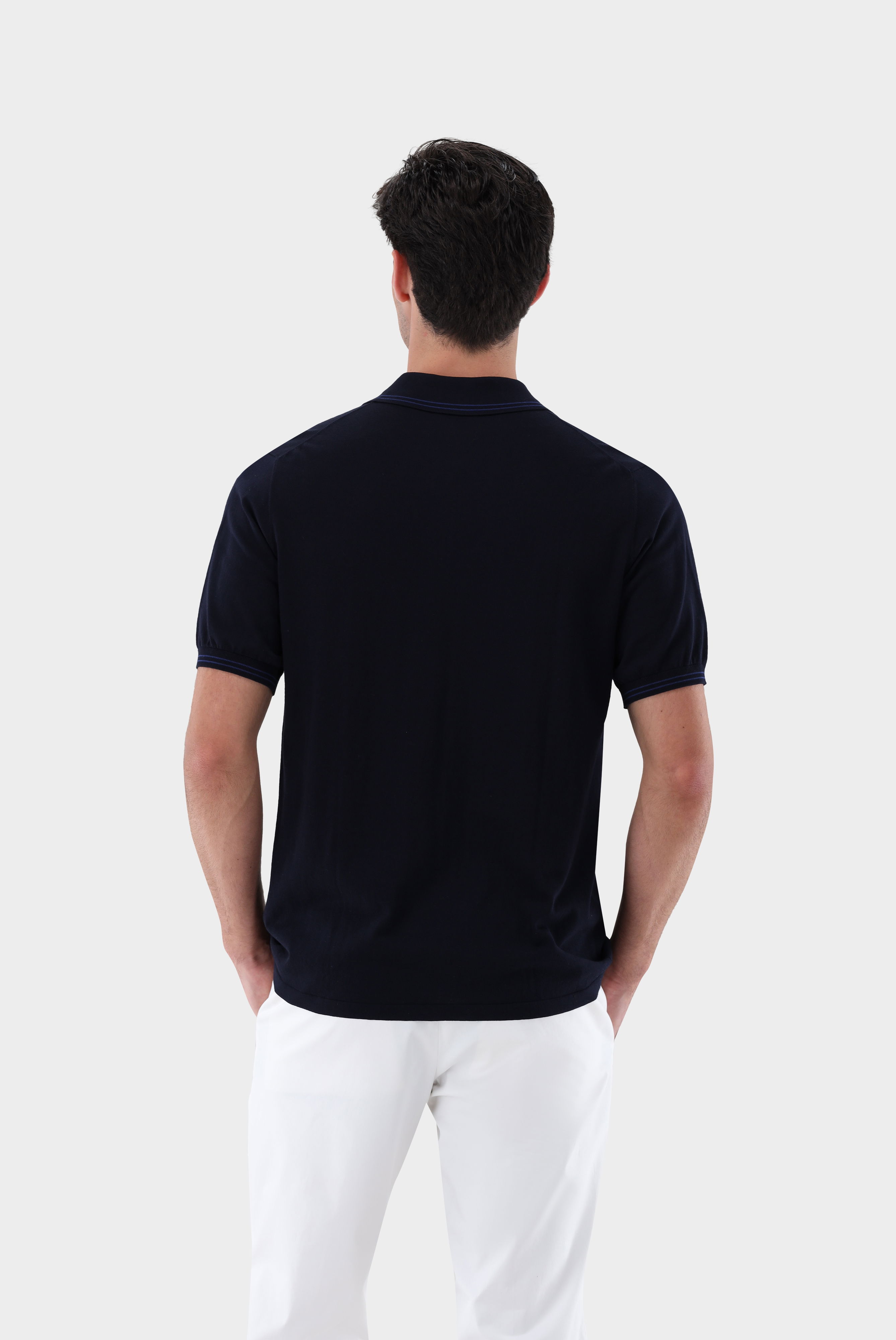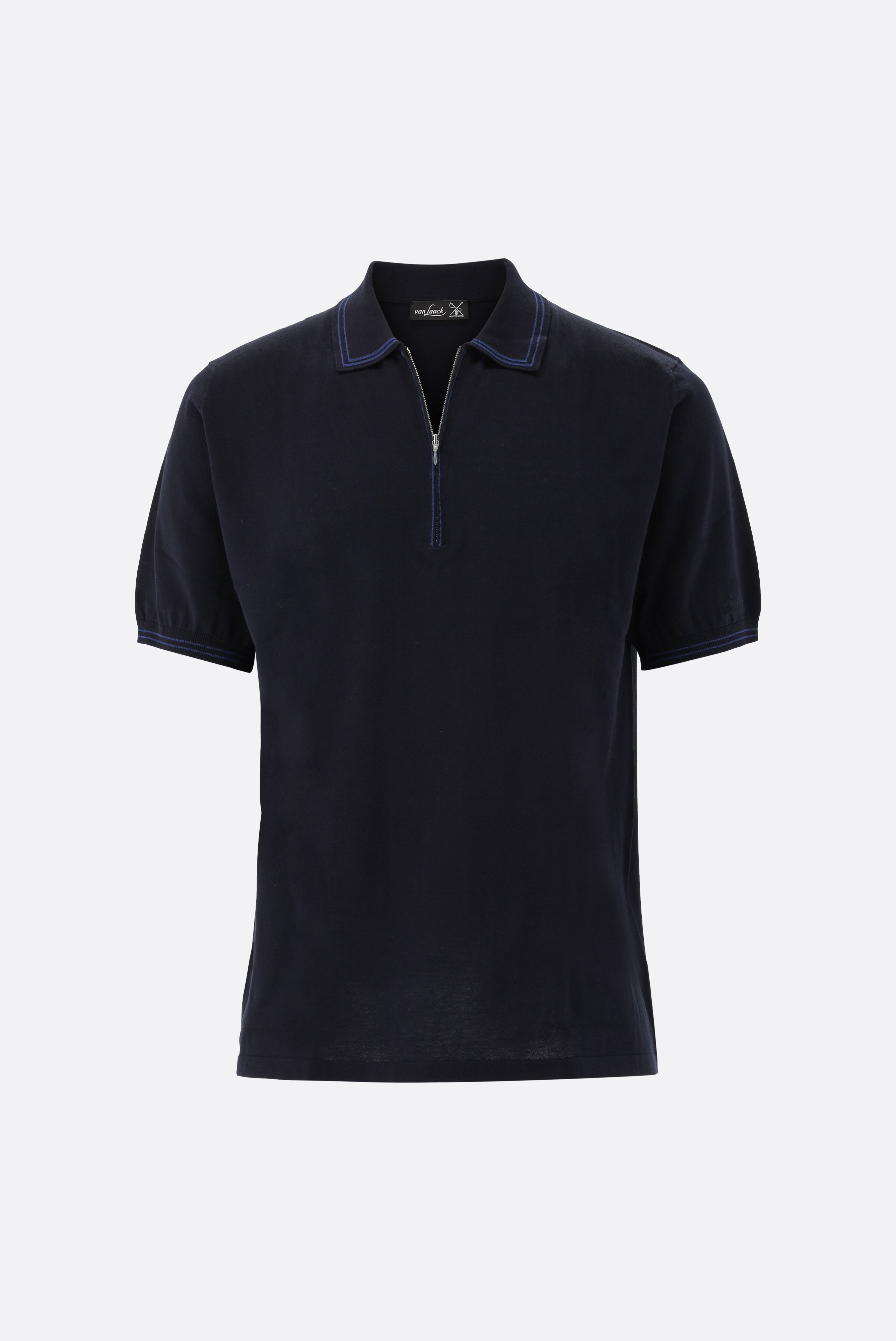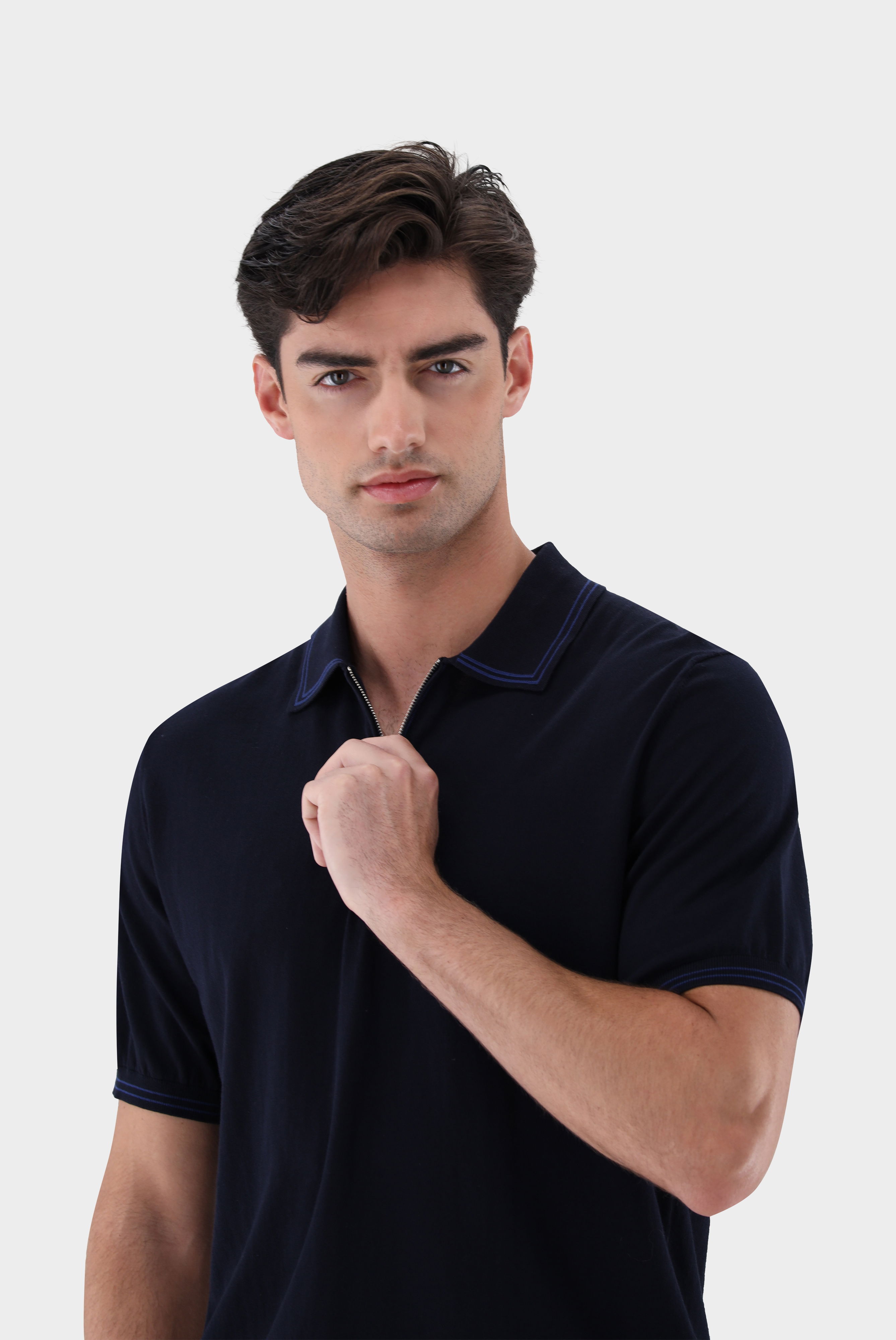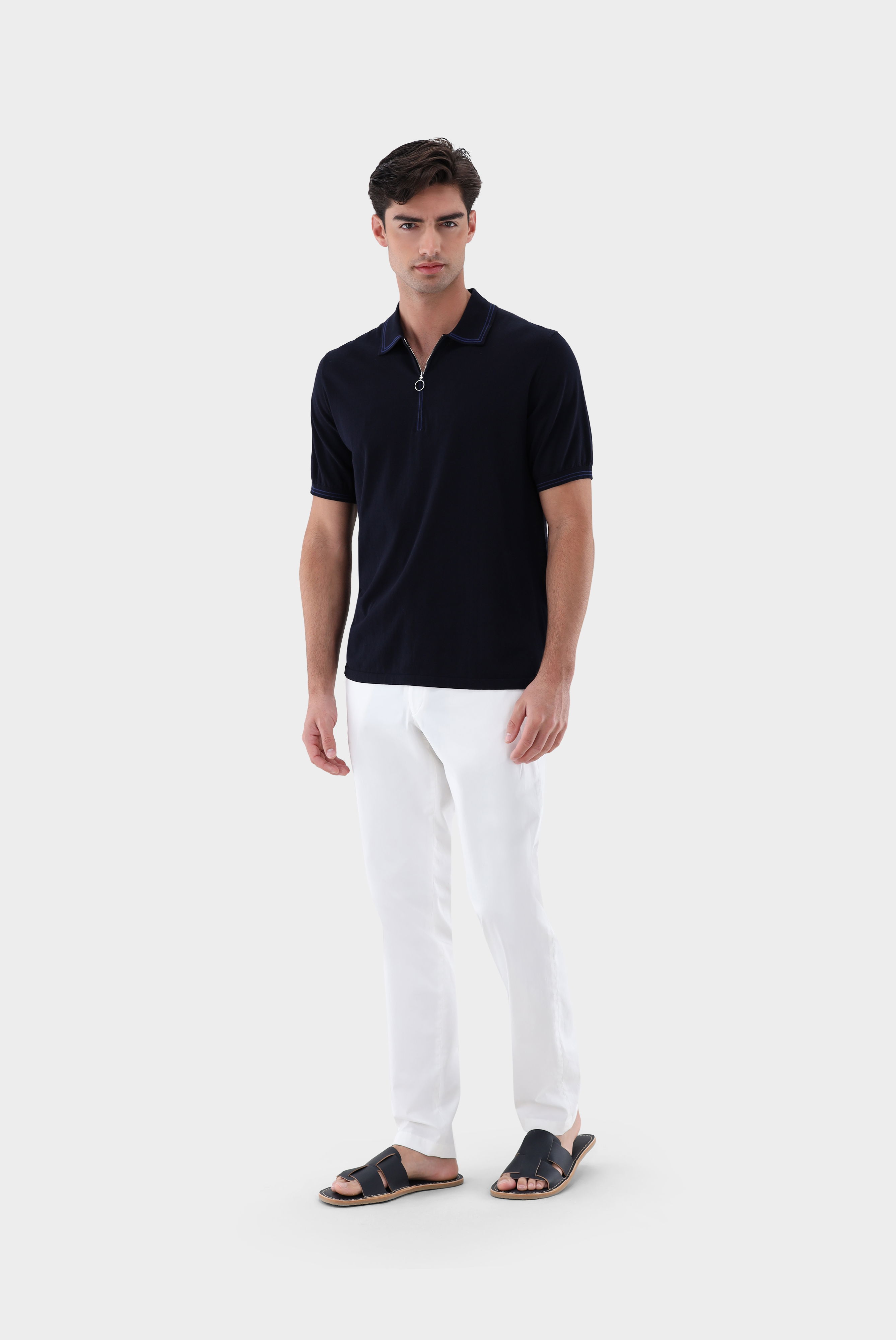 Look aus Strick-Polo mit Reißverschluss aus Air Cotton