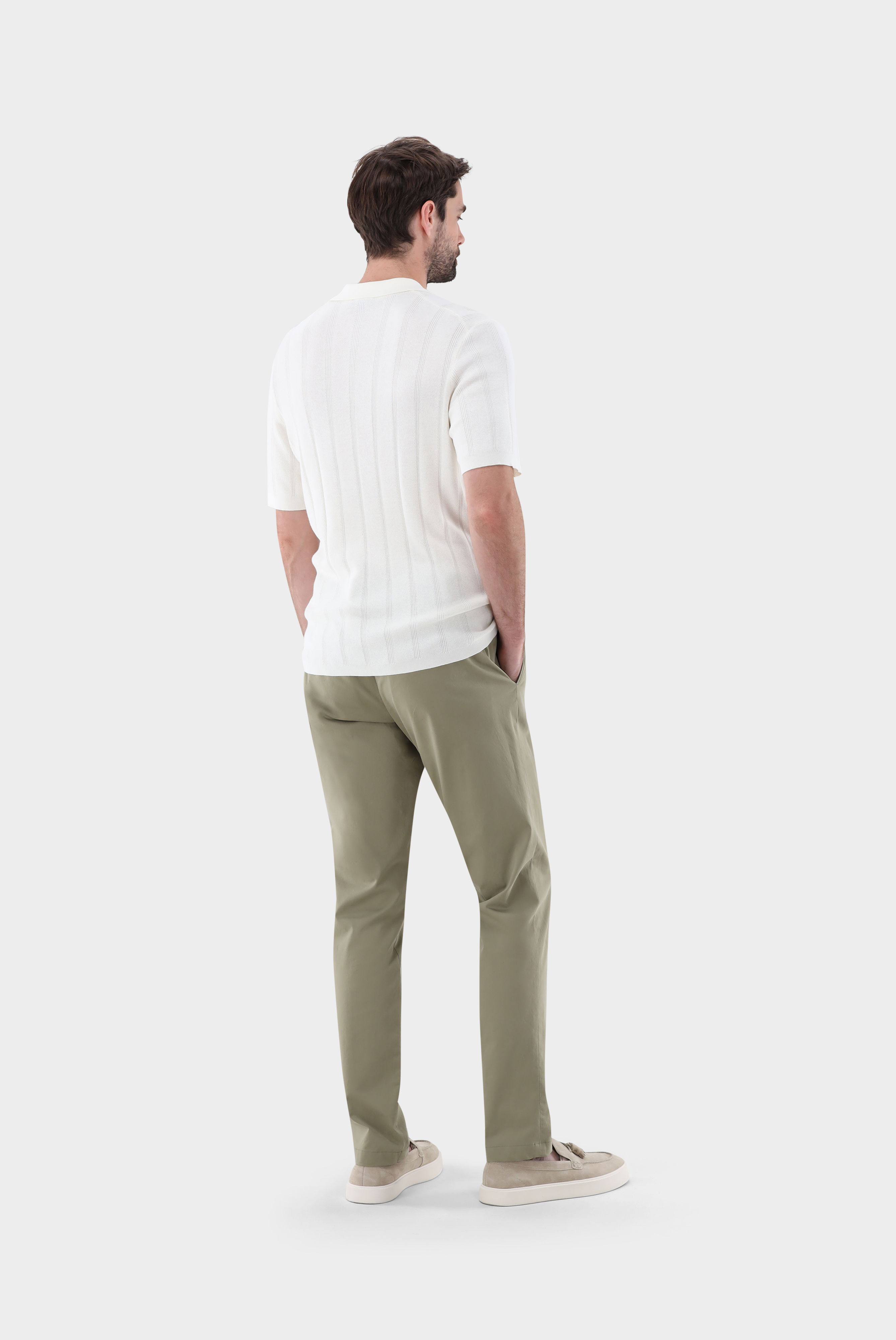Look aus Strick-Poloshirt mit Jacquard Streifen