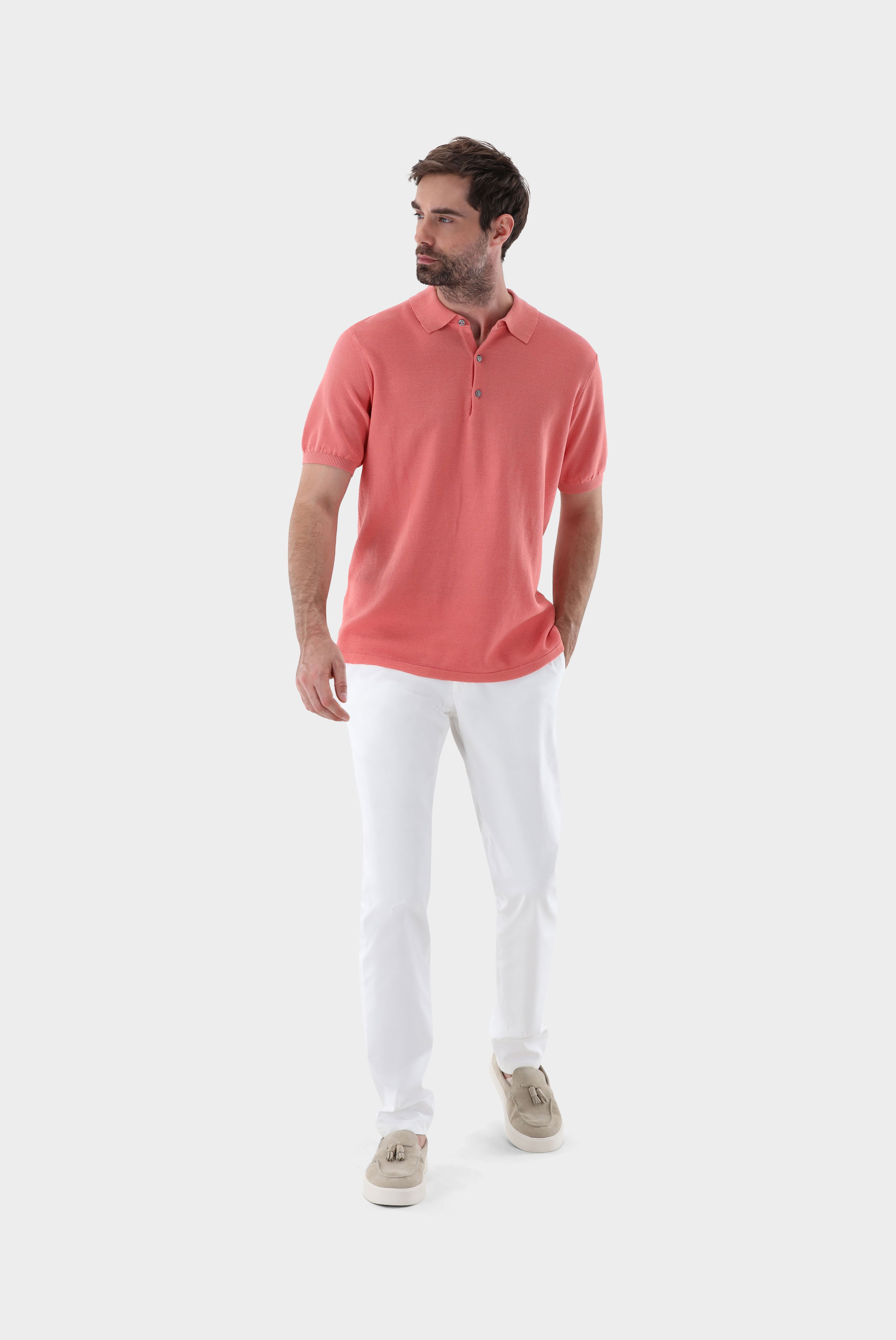 Look aus Strick-Poloshirt mit Reiskorn Optik