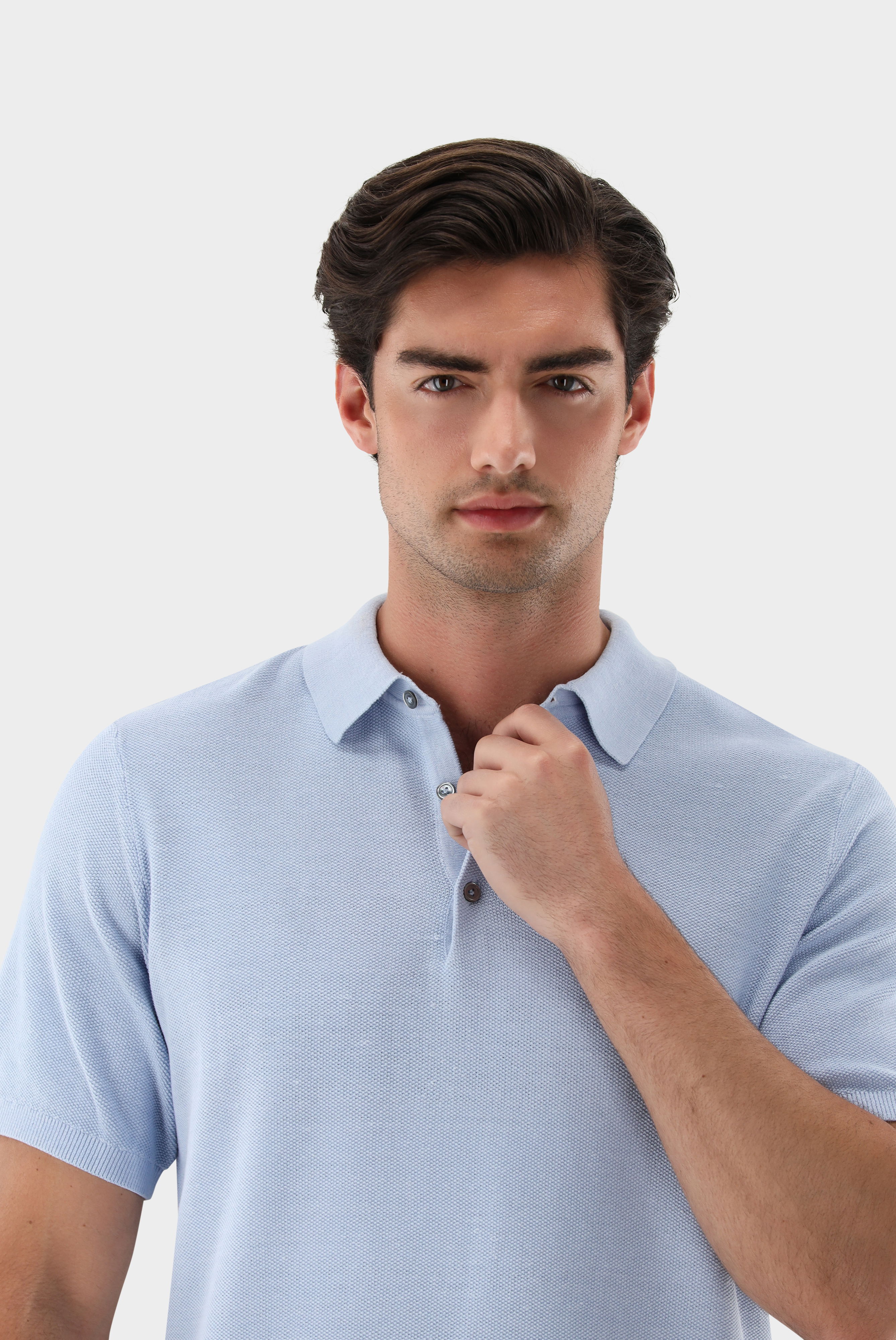 Das Strick Polohemd mit Reiskorn Optik aus Baumwolle und Leinen überzeugt durch Tragekomfort und hochwertige Verarbeitung. Das Poloshirt wird Stückgefärbt und erhält dadurch eine leicht gewaschene Optik. Das Mischgewebe aus Baumwolle und Leinen sorgt für eine hohe Luftdruchlässigkeit und eignet sich ideal für den Sommer. Die raue Reiskorn Oberfläche sorgt für einen modernen Look.