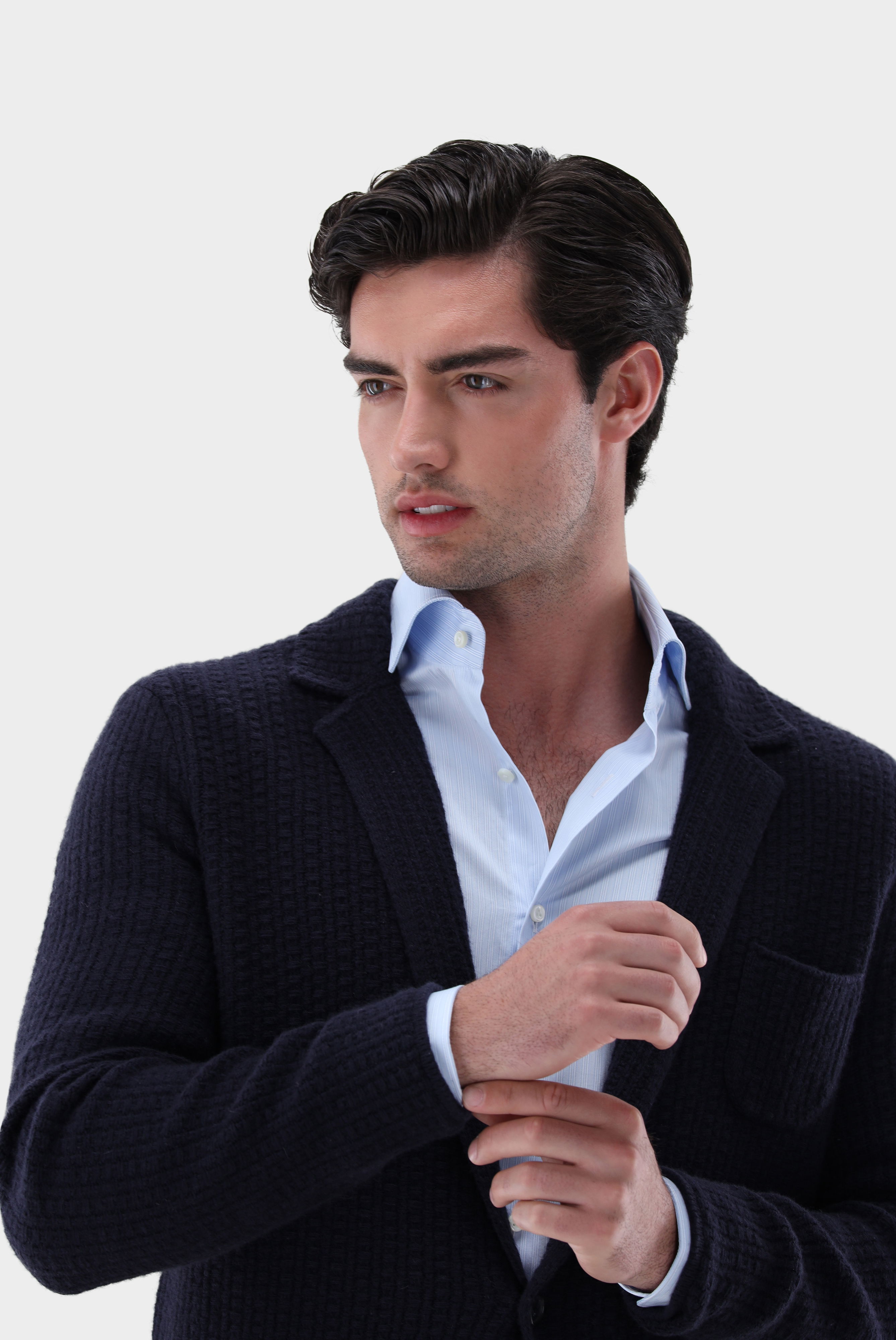 Dieses klassische Sakko überzeugt durch seine hochwertige Woll- und Kaschmirmischung, die für eine weiche Haptik und angenehme Wärme sorgt. Die gemütliche Tweed-Strickstruktur verleiht dem Modell eine lässige Note und macht es zum idealen Begleiter für stilvolle Casual-Looks. Mit aufgesetzten Taschen bietet das Sakko praktische Details und unterstreicht seinen modernen Charakter. Ein vielseitiges Kleidungsstück, das Eleganz und Komfort harmonisch miteinander verbindet.