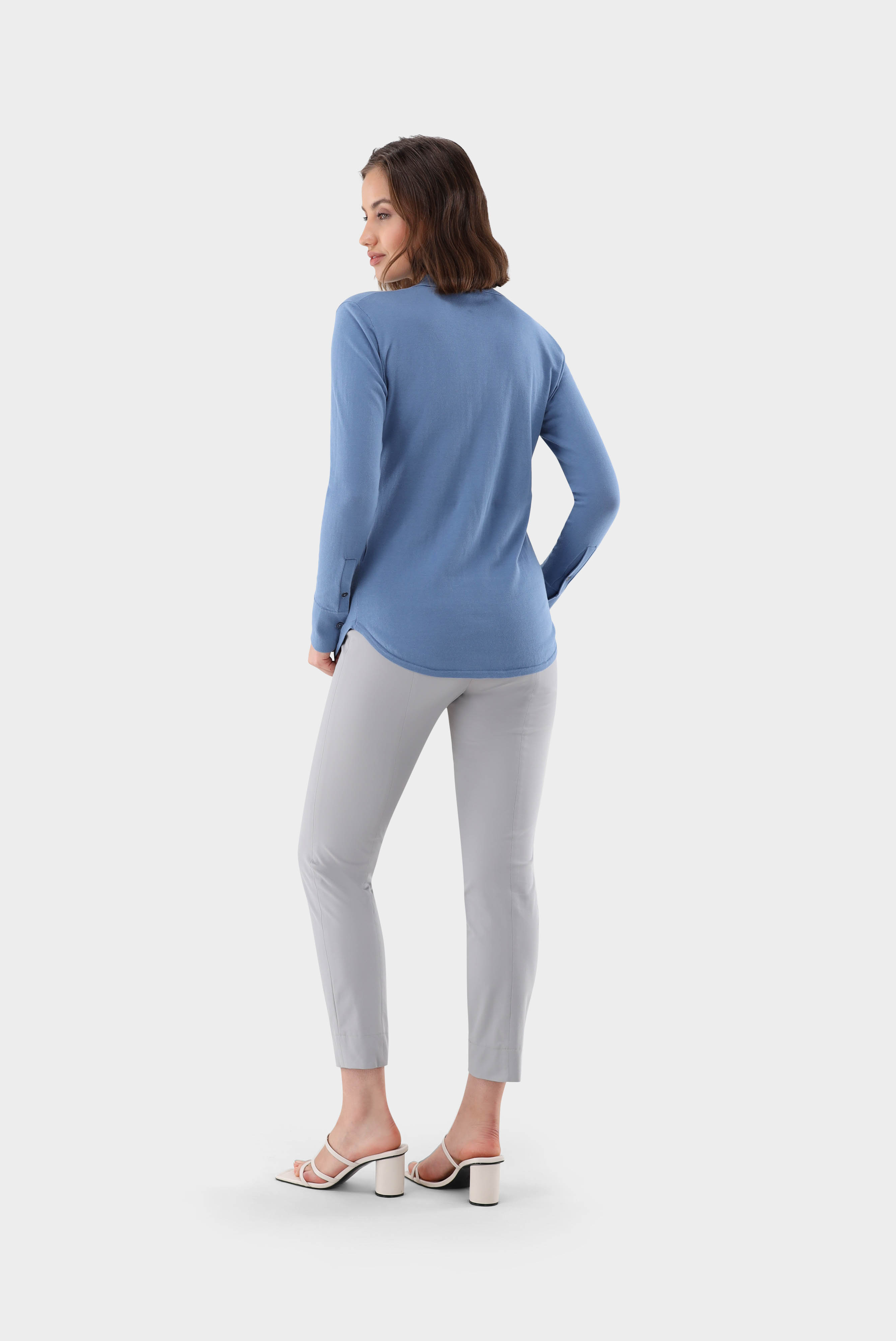 Das Langarm-Strickshirt besteht aus hochwertiger Baumwolle und bietet optimalen Tragekomfort. Perfekt für vielseitige Anlässe dank seiner figurbetonten Passform und seiner dezenten Optik. Die langen Ärmel bieten saisonale Flexibilität. Zusätzlich verfügt es über einen klassischen Hemdblusenkragen und eine offene Knopfleiste.