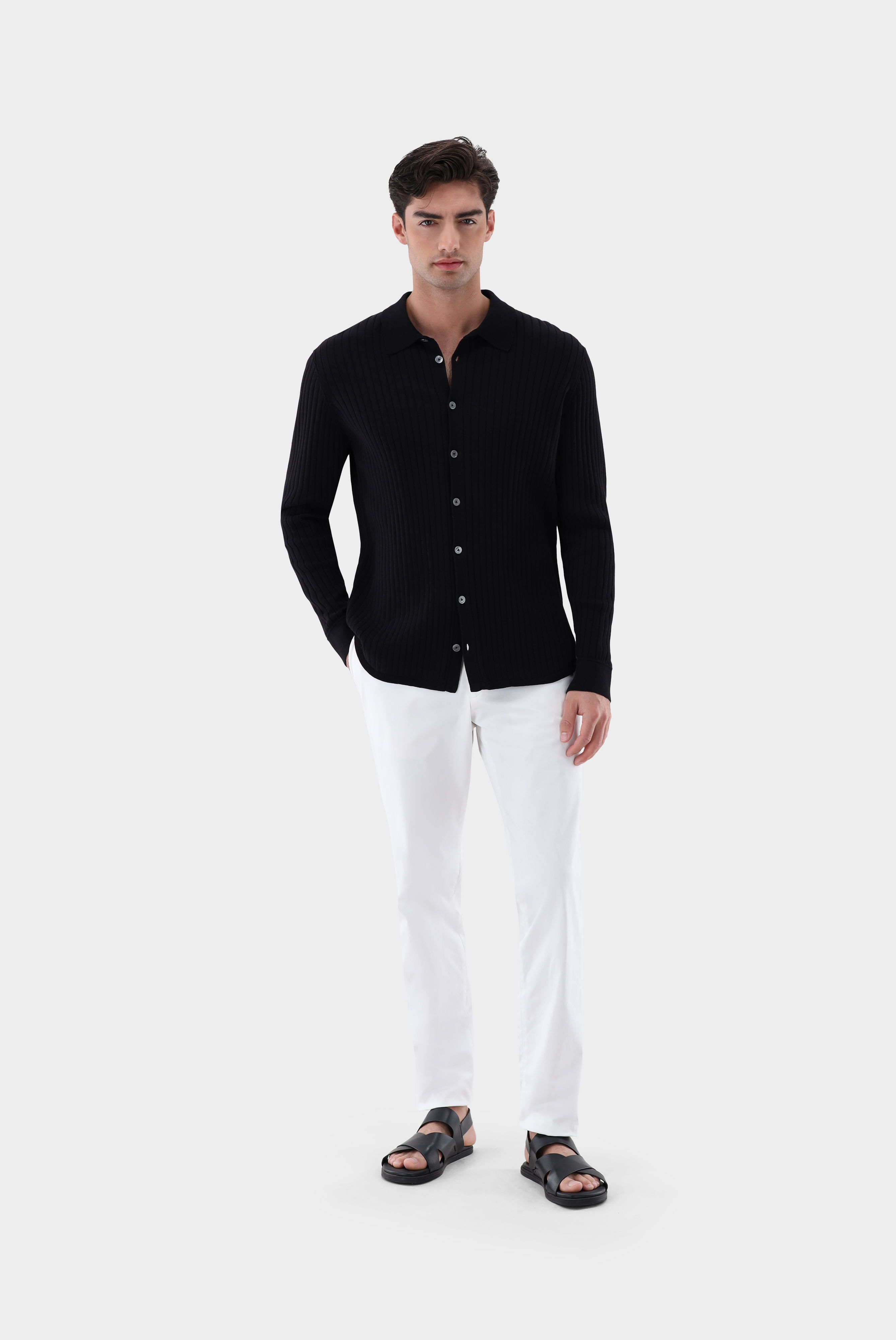 Das gerippte Strick Hemd mit Baumwolle und Seide überzeugt durch Tragekomfort und hochwertige Verarbeitung. Der Einsatz von gezwirnten, fein gestrickten Garnen aus Baumwolle und Siede mit einer gerrippten Struktur, bewirkt einen Coolen Streifenlook. Der Seidenanteil sorgt hierbei zusätzlich für eine kühlende Funktion.