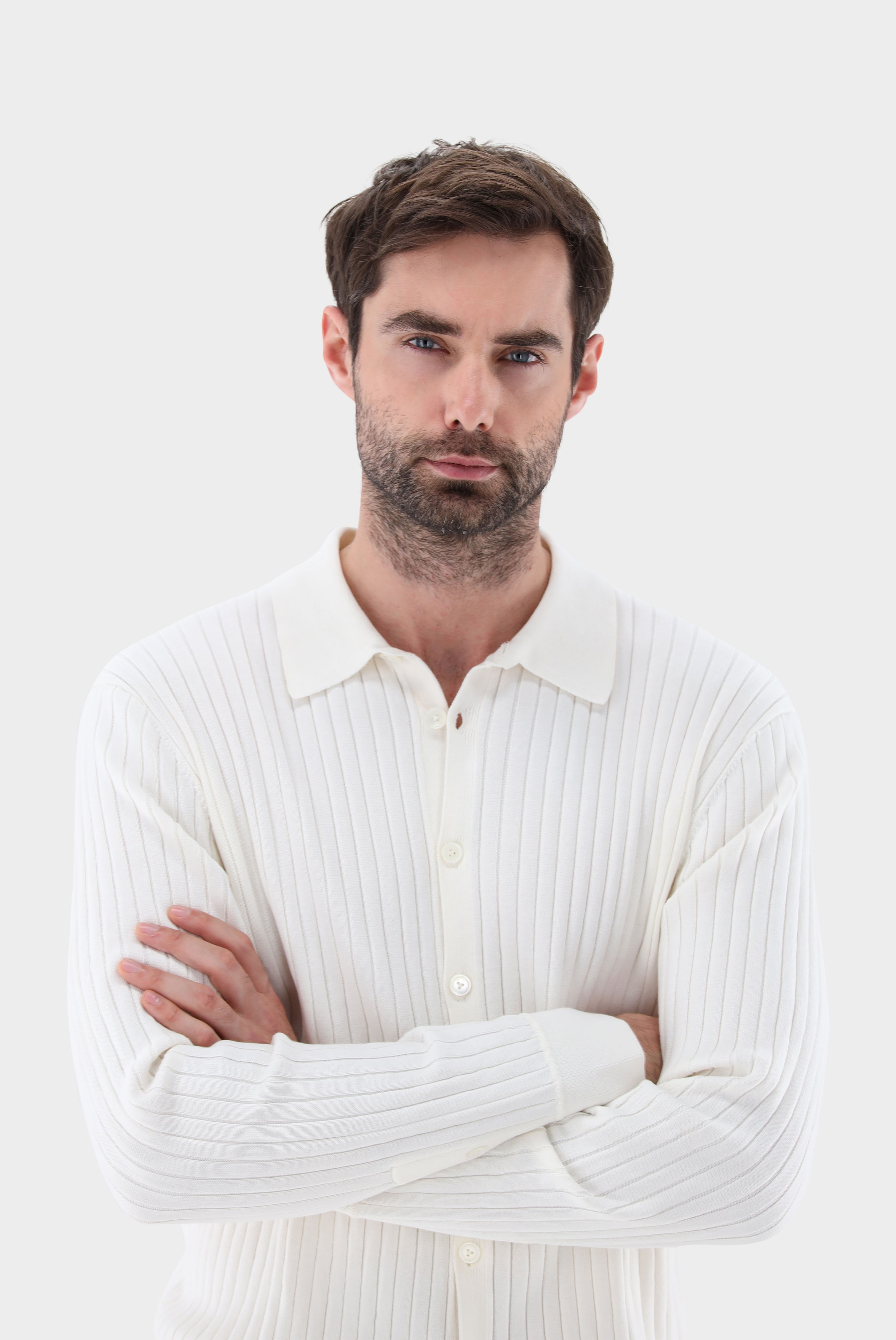 Das gerippte Strick Hemd mit Baumwolle und Seide überzeugt durch Tragekomfort und hochwertige Verarbeitung. Der Einsatz von gezwirnten, fein gestrickten Garnen aus Baumwolle und Siede mit einer gerrippten Struktur, bewirkt einen Coolen Streifenlook. Der Seidenanteil sorgt hierbei zusätzlich für eine kühlende Funktion.