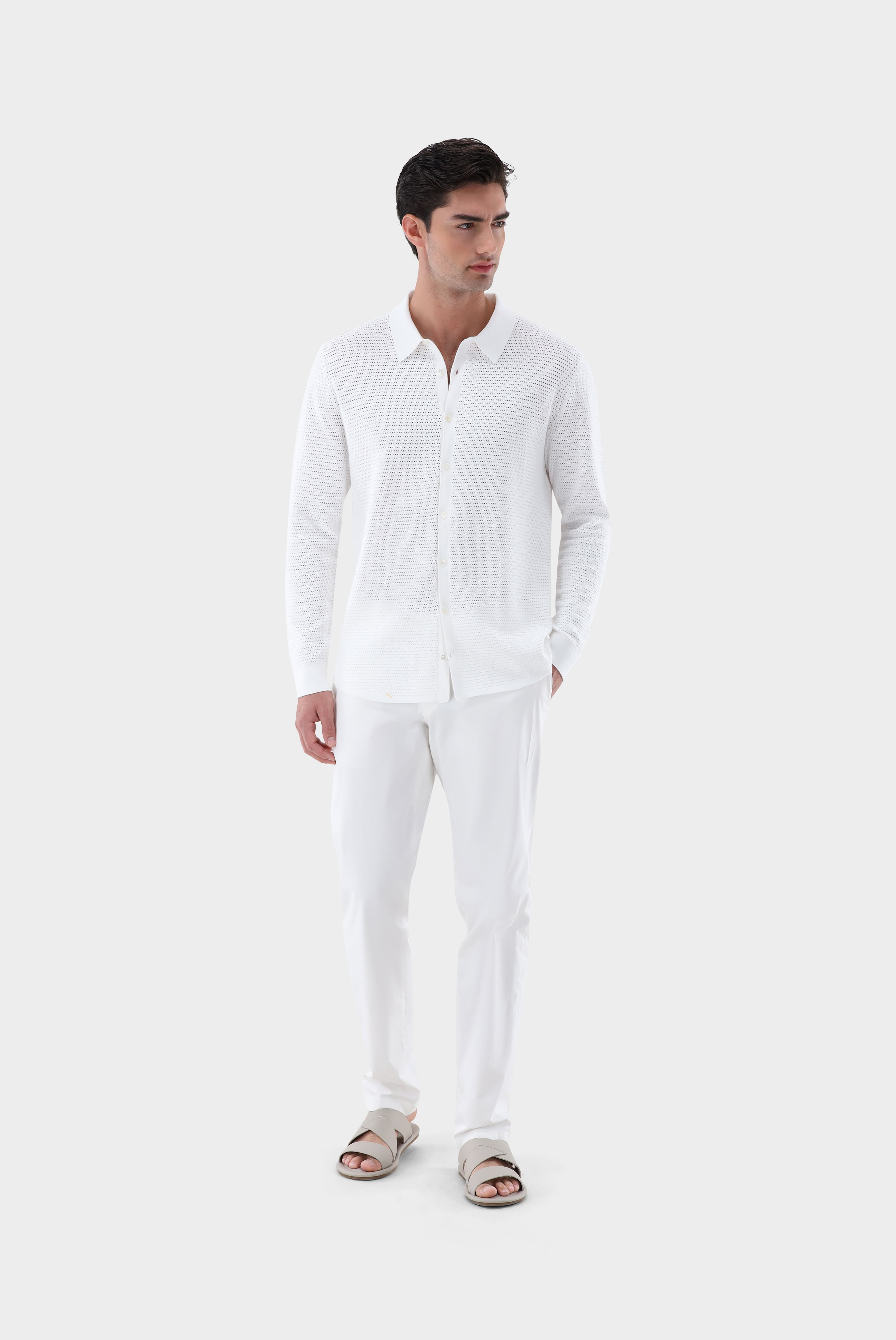Look aus Strickhemd mit Retro Struktur aus Air Cotton