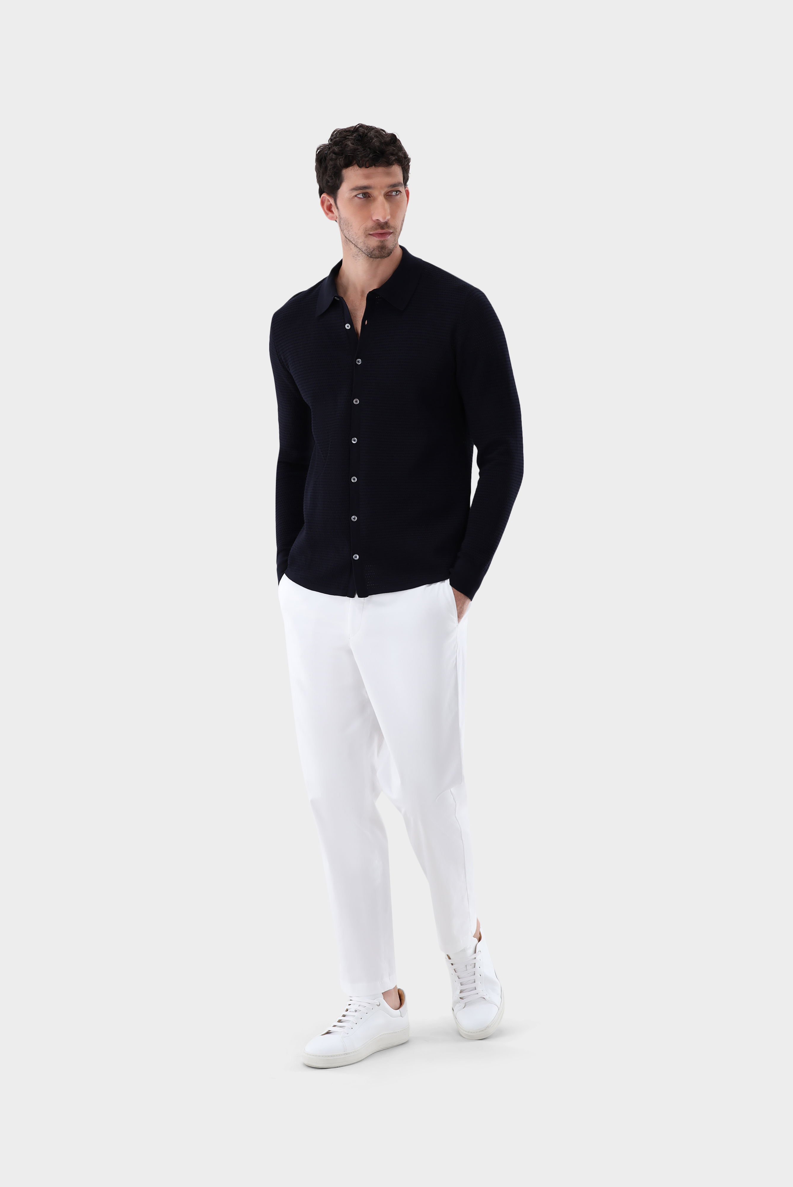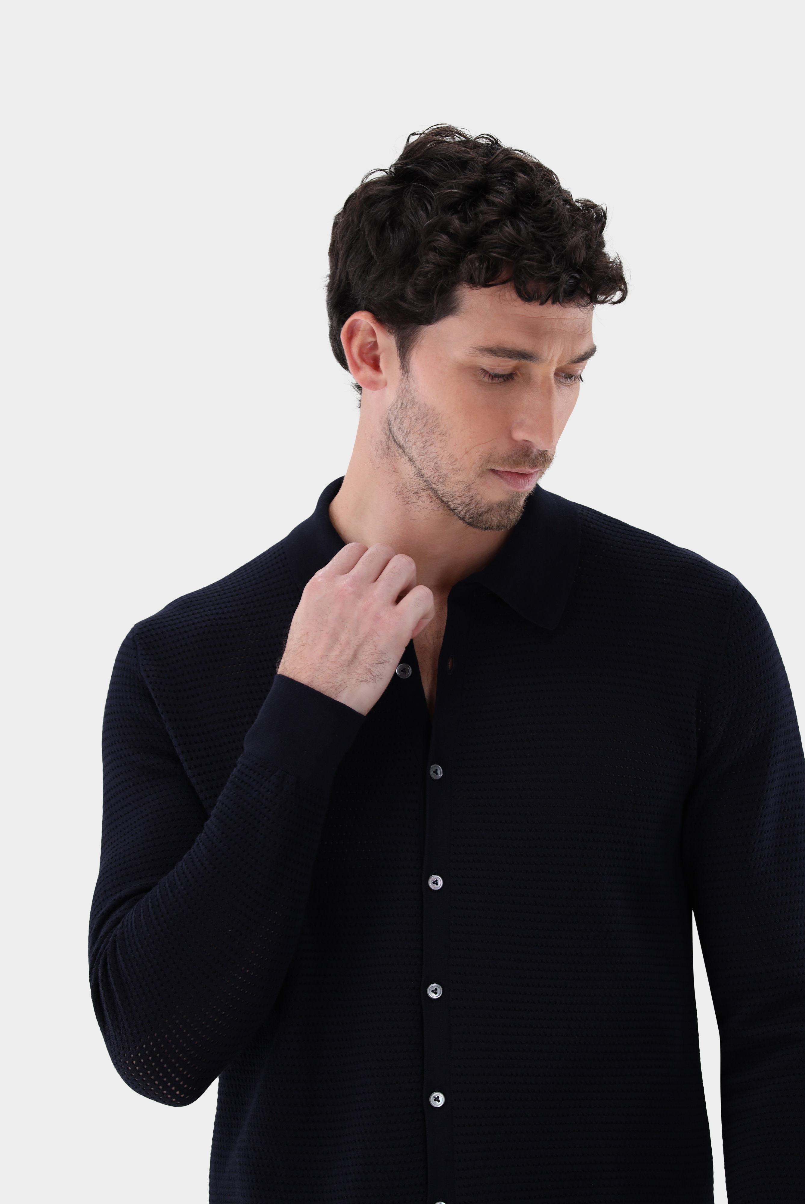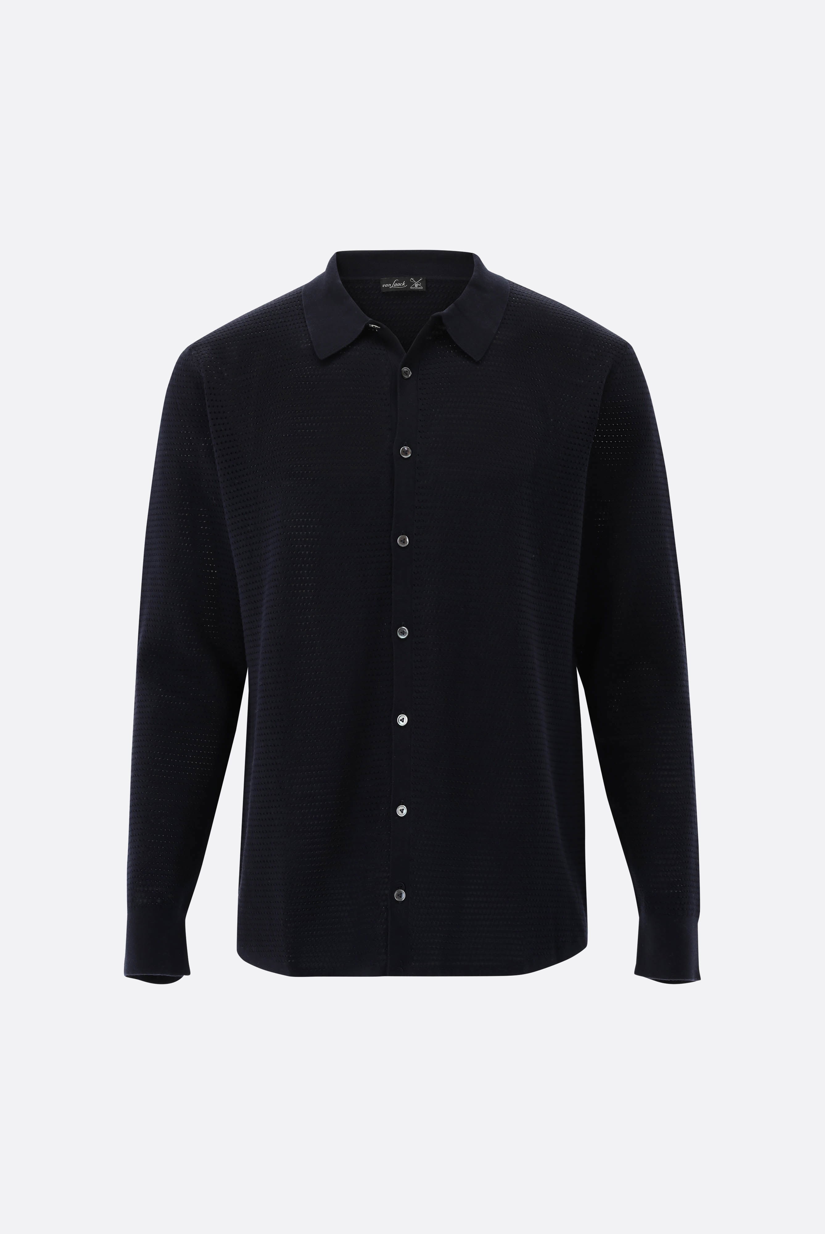 Das Strick Hemd mit Retro Struktur aus Air Cotton überzeugt durch Tragekomfort und hochwertige Verarbeitung. Der Einsatz von gezwirnten, fein gestrickten Baumwollgarnen mit einer leichten Struktur, welche gleichzeitig blickdicht sind, bewirkt besondere Luftdurchlässigkeit und verleiht dem Hemd einen besonders modernen look.