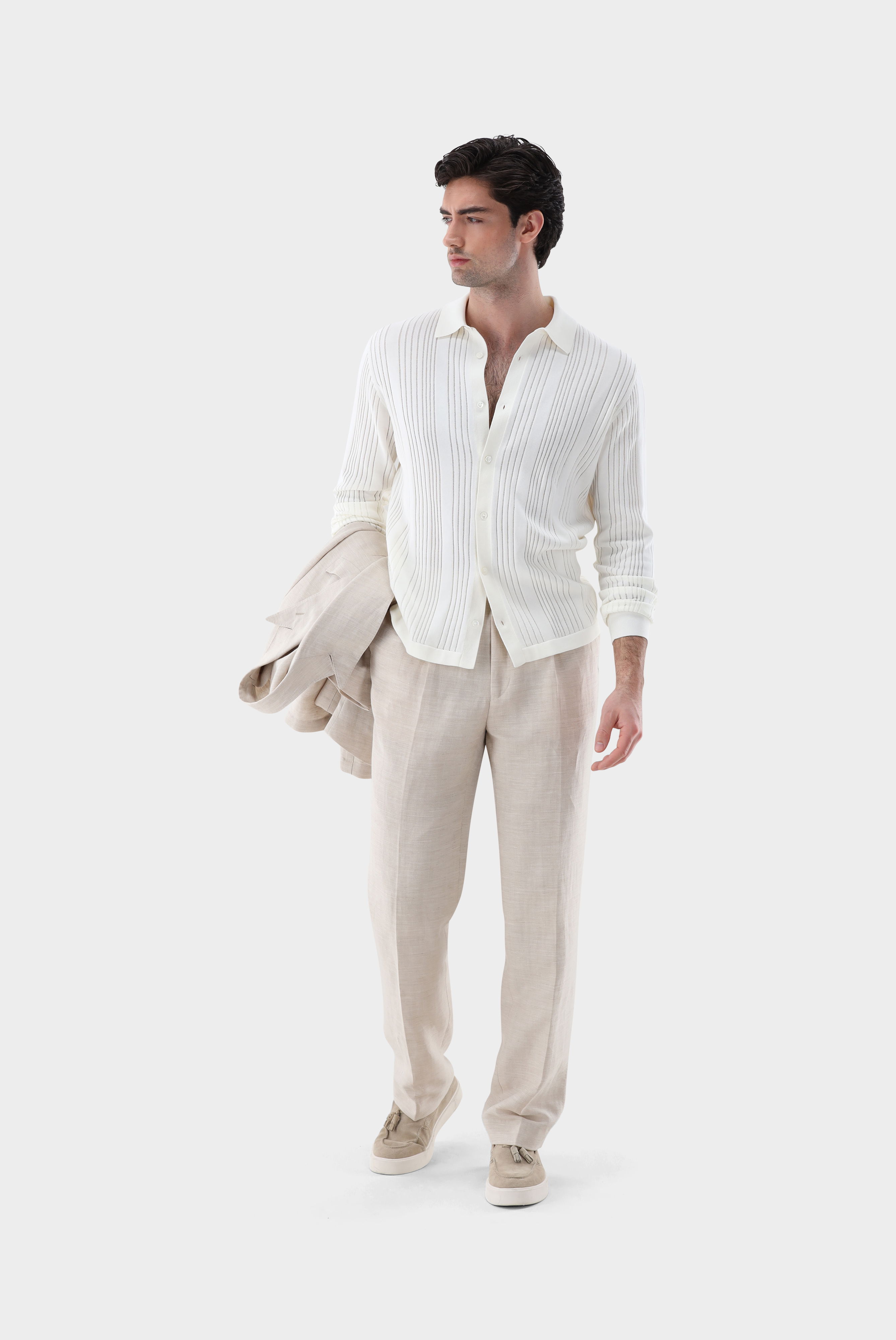 Look aus Strickhemd mit Streifen-Struktur aus Air Cotton