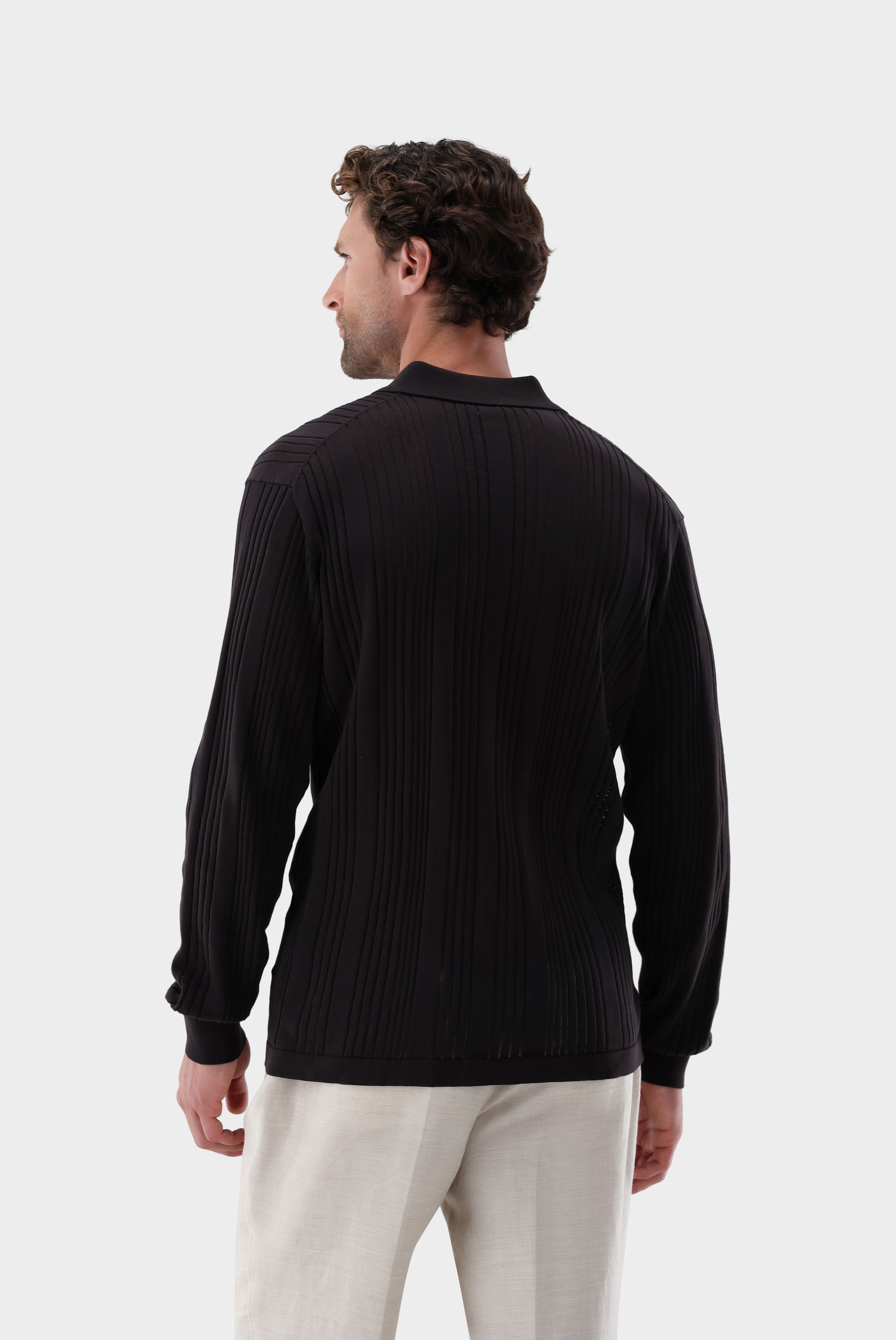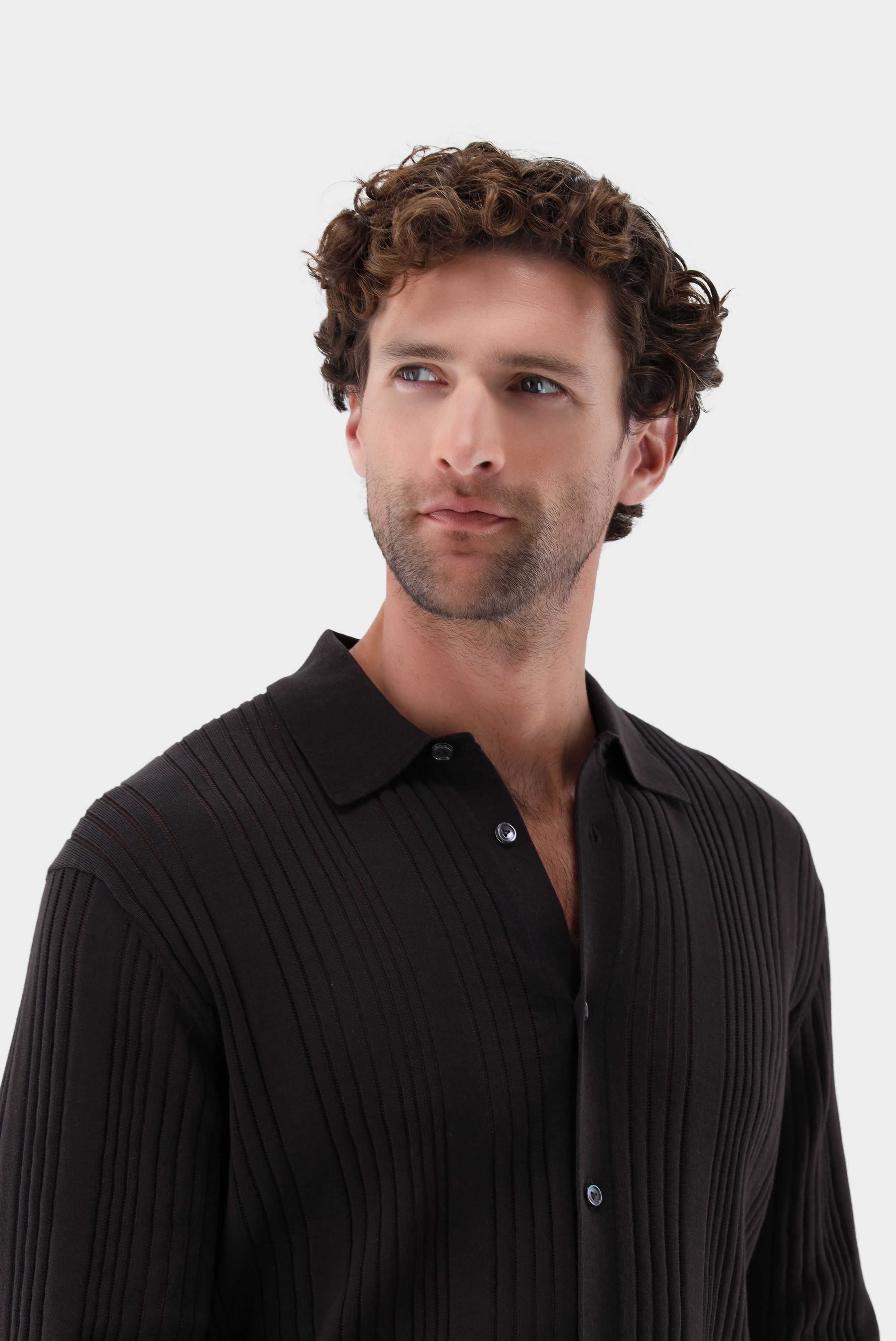 Das Strick Hemd mit Streifen Struktur aus Air Cotton überzeugt durch Tragekomfort und hochwertige Verarbeitung. Der Einsatz von gezwirnten, fein gestrickten Baumwollgarnen mit einer modernen Struktur in Streifen-Form, welche gleichzeitig blickdicht sind, bewirkt besondere Luftdurchlässigkeit und verleiht dem Hemd einen besonders modernen look.