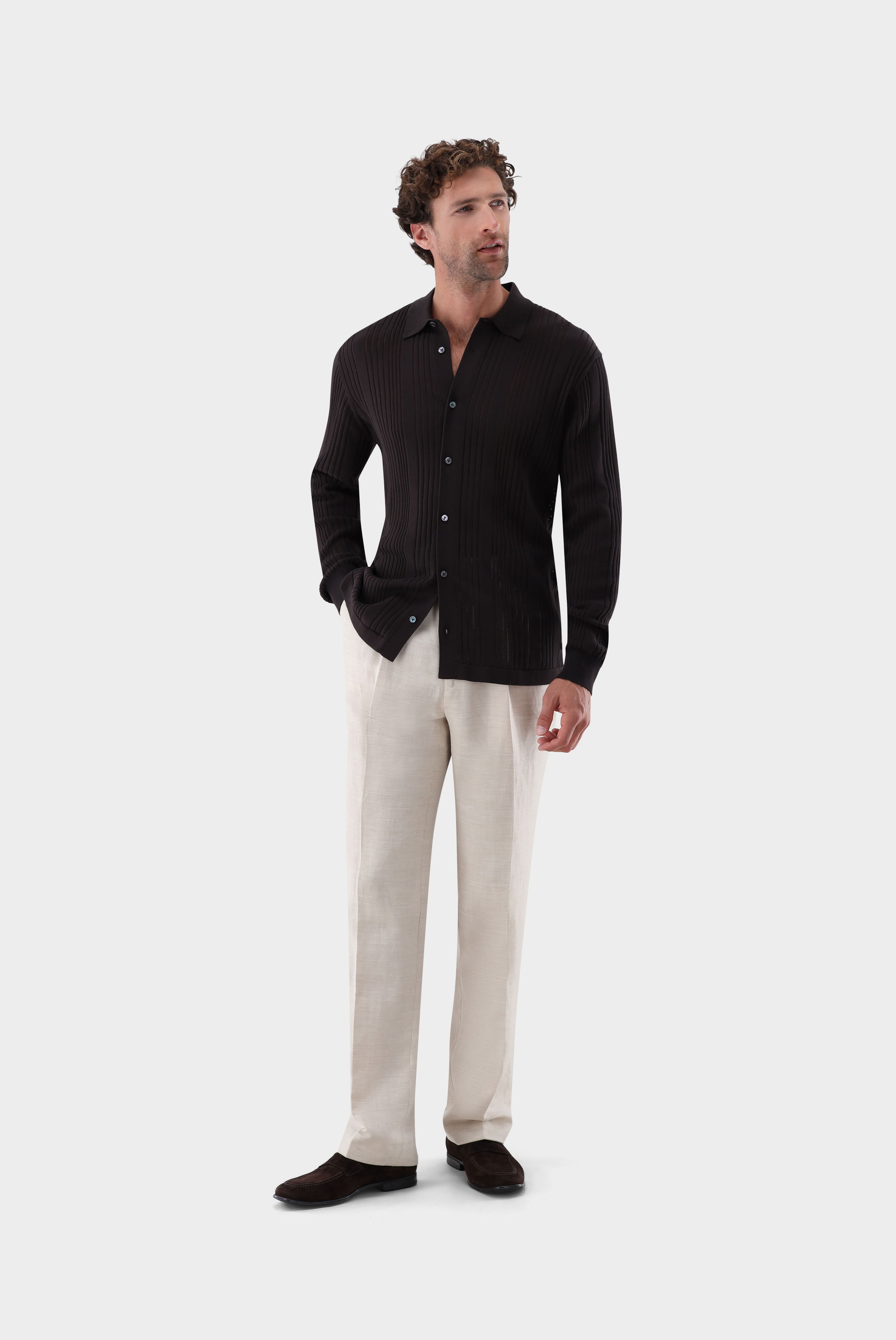 Look aus Strickhemd mit Streifen-Struktur aus Air Cotton