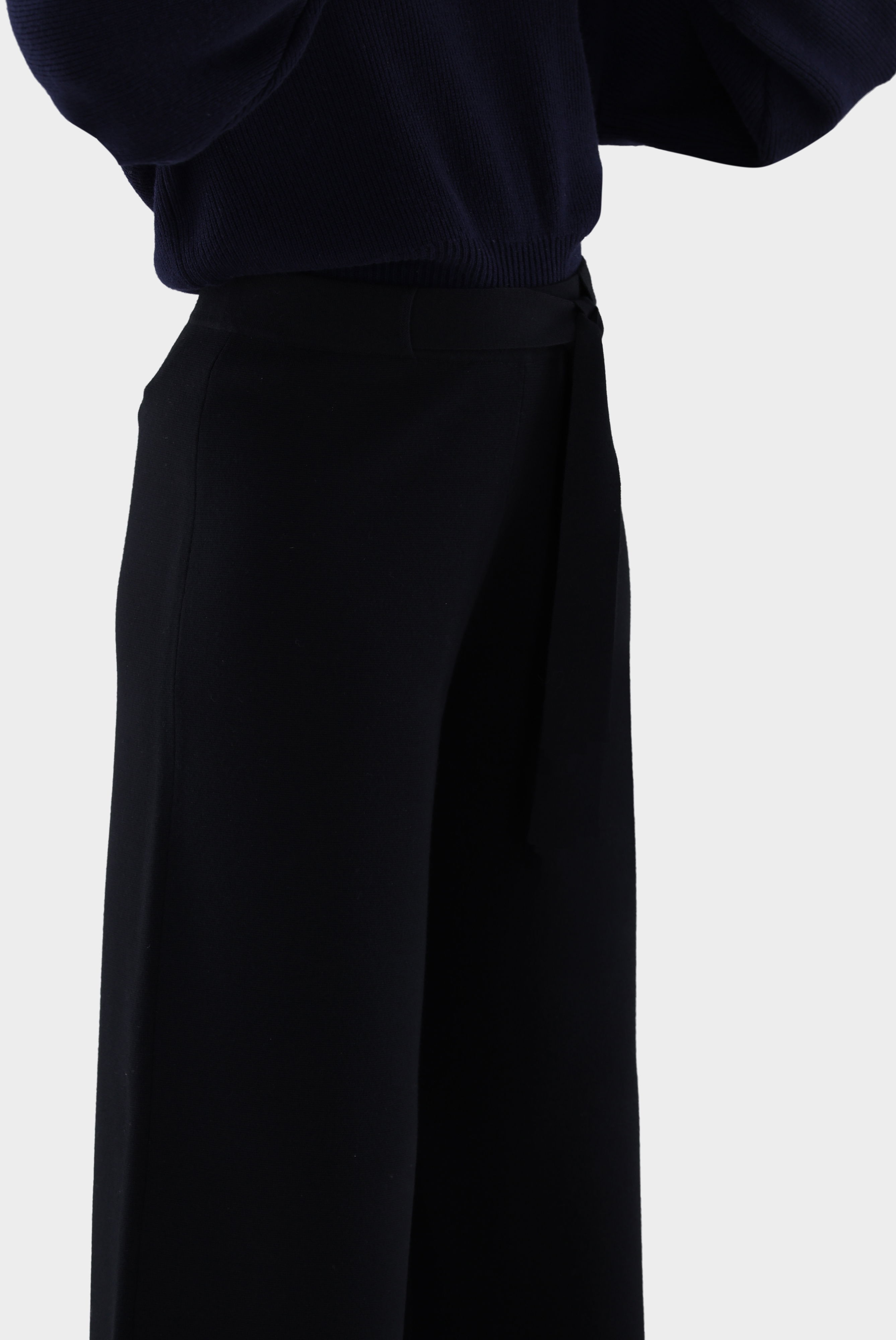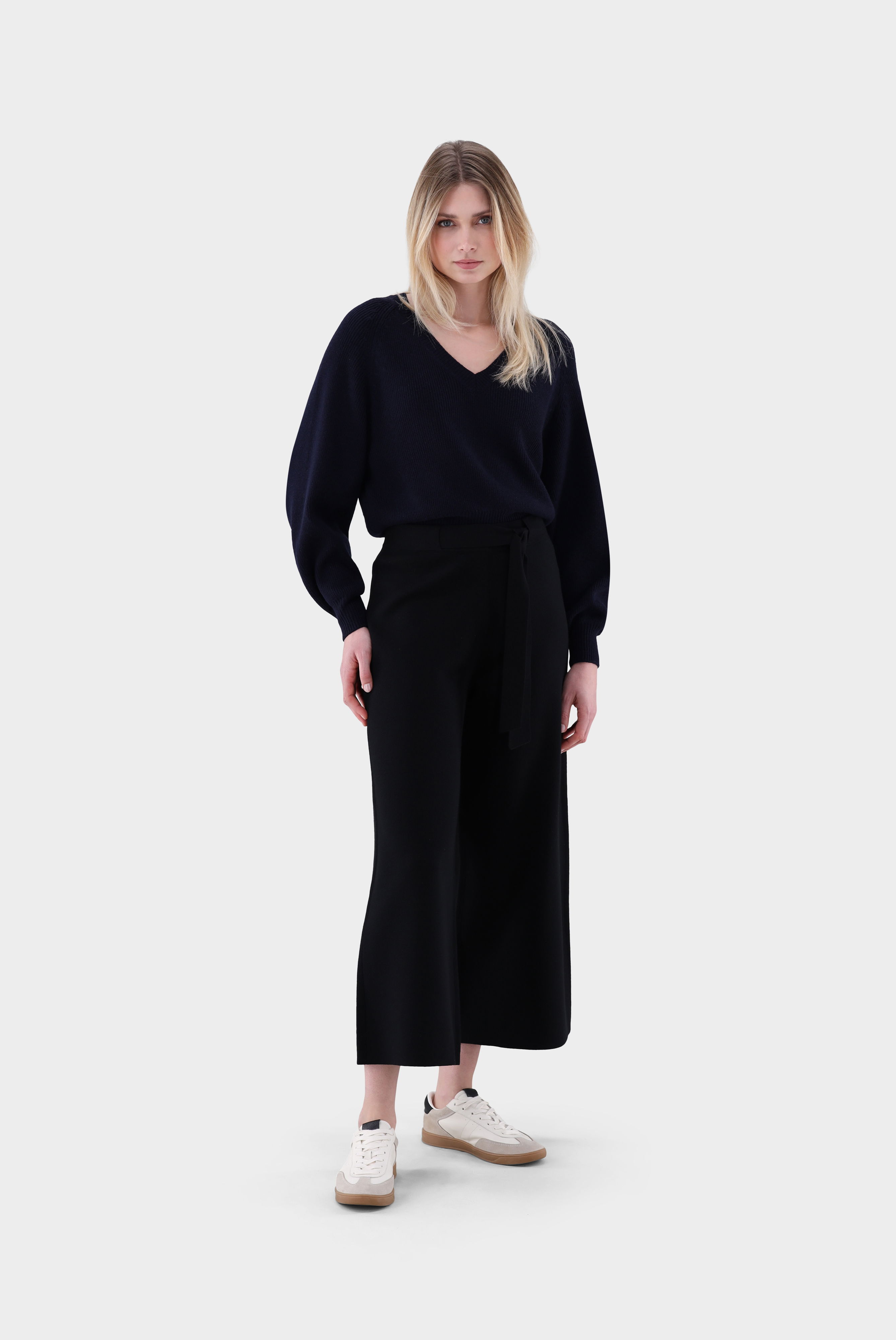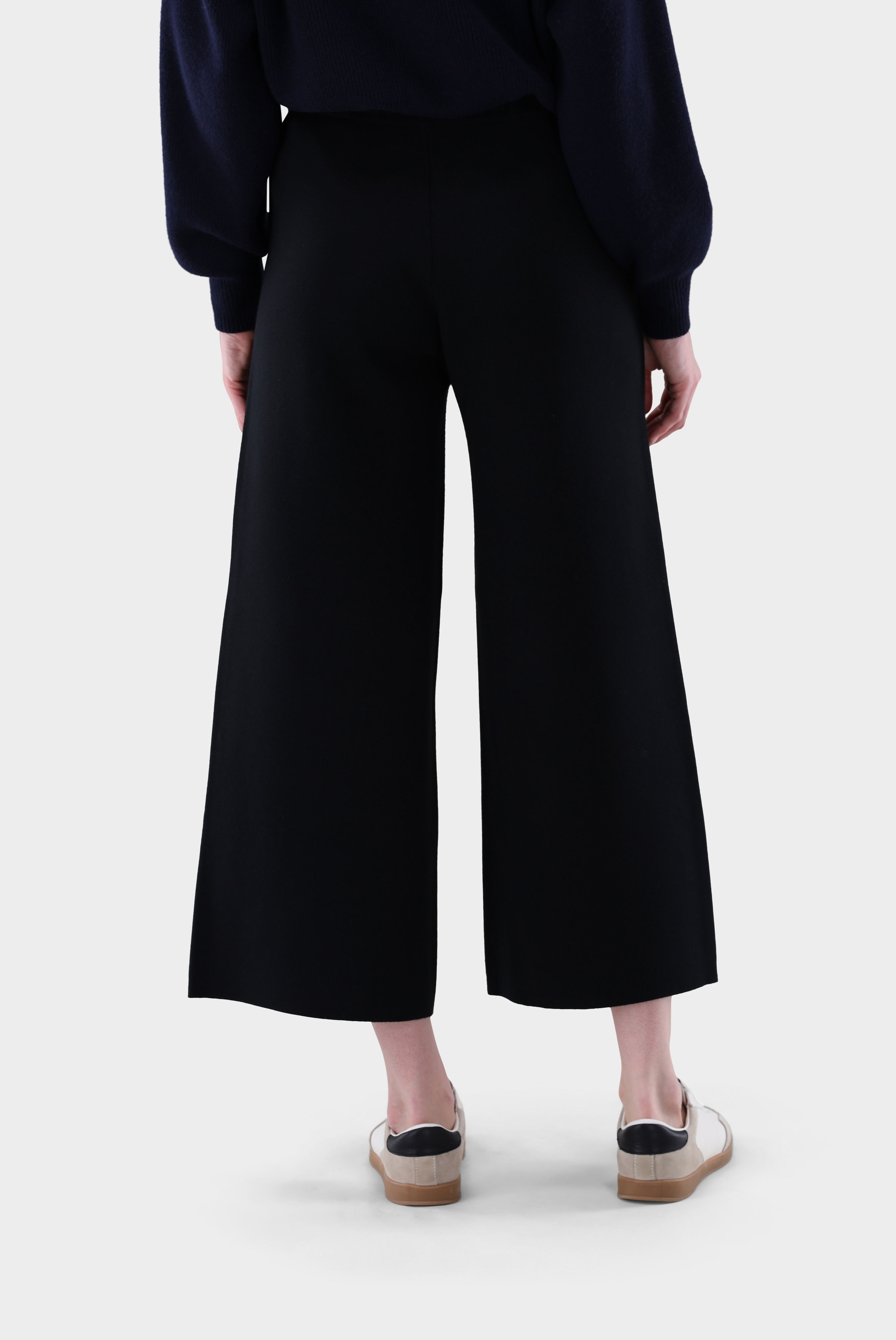 Diese 7/8-Strickhose überzeugt mit weitem Bein und moderner Silhouette. Der abnehmbare Gürtel betont die Taille und ermöglicht individuelle Stylingvarianten. Gefertigt aus ultrafeiner Merinowolle mit Stretch-Anteil bietet die Hose hohen Tragekomfort, Formbeständigkeit und eine luxuriöse Haptik. Die hochwertige Strickqualität sorgt für Bewegungsfreiheit und einen fließenden Fall. Ein vielseitiges Modell, das sowohl für entspannte Freizeit-Looks als auch für elegante Kombinationen geeignet ist.