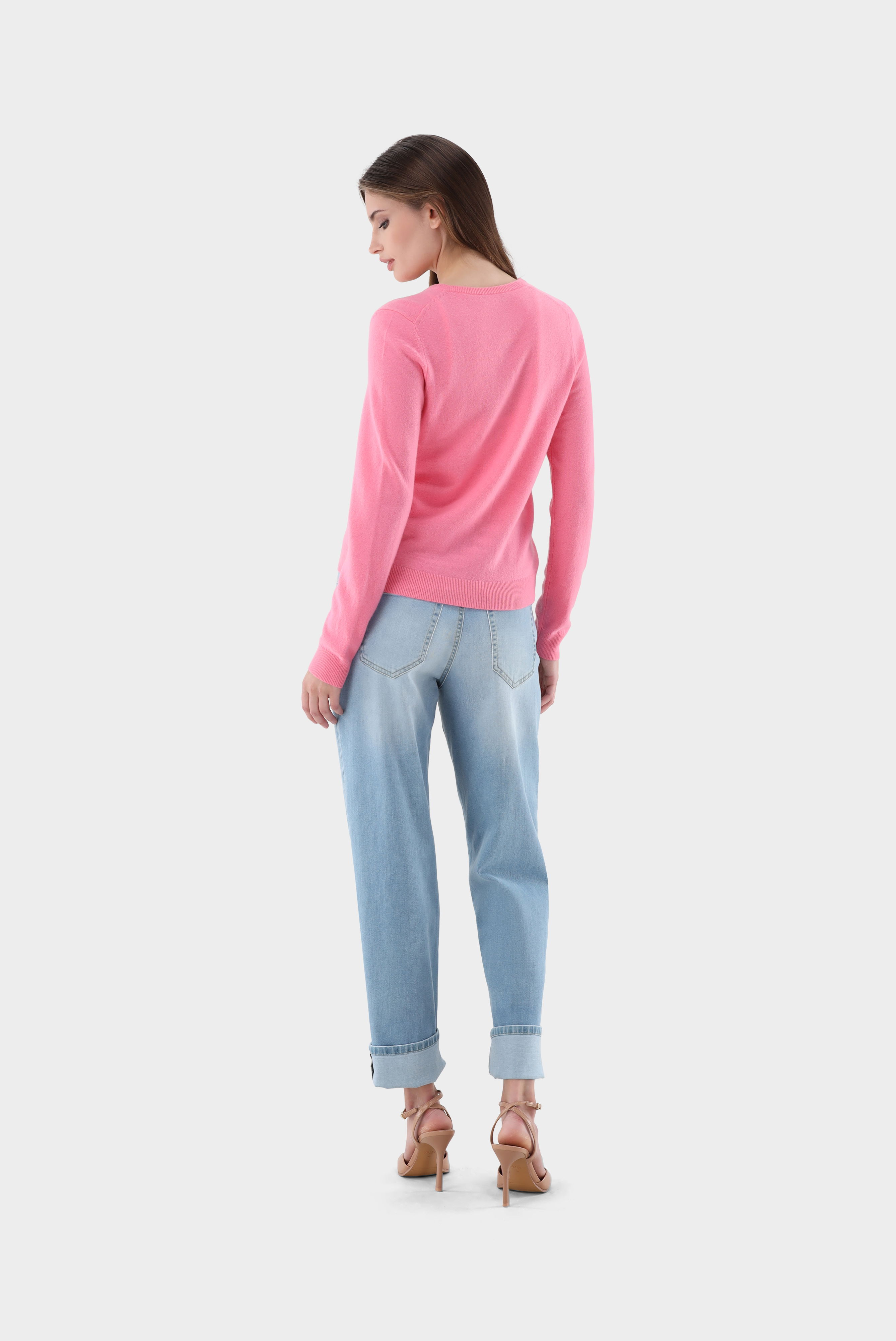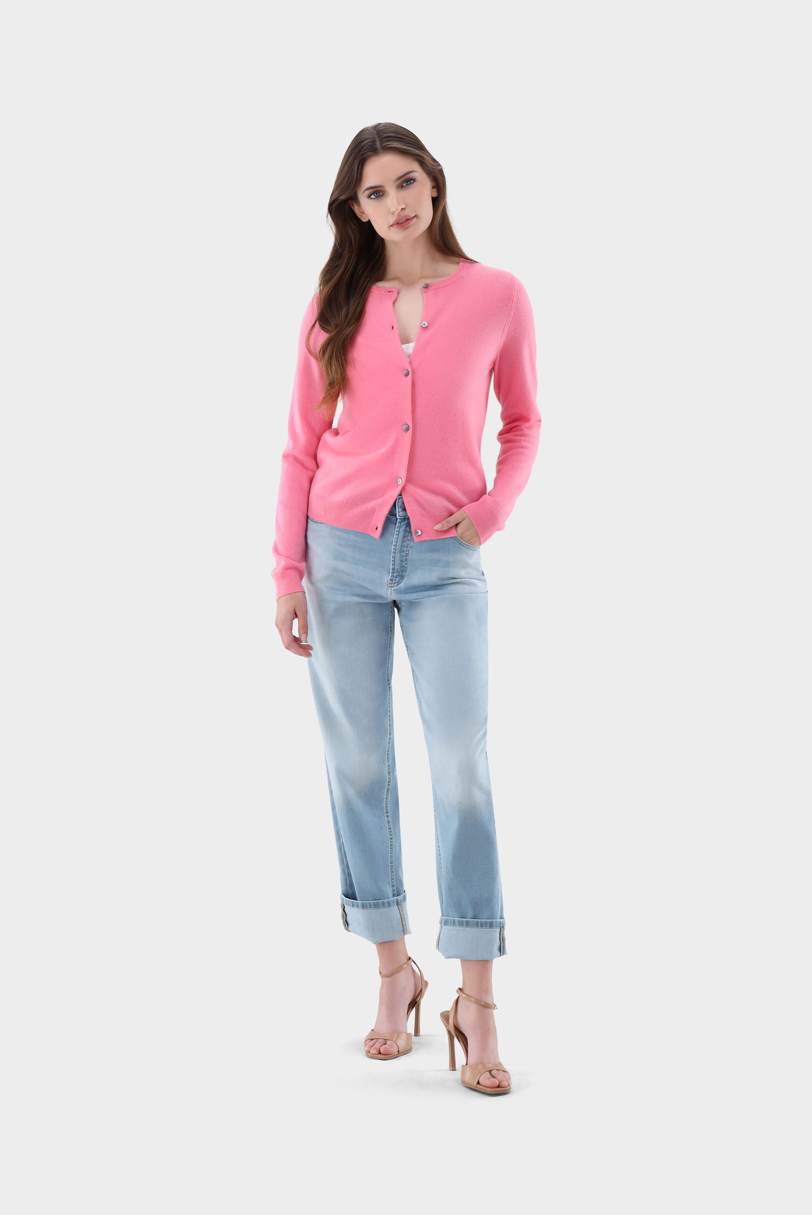 Look aus Strickjacke aus Kaschmir mit Rundhalsausschnitt