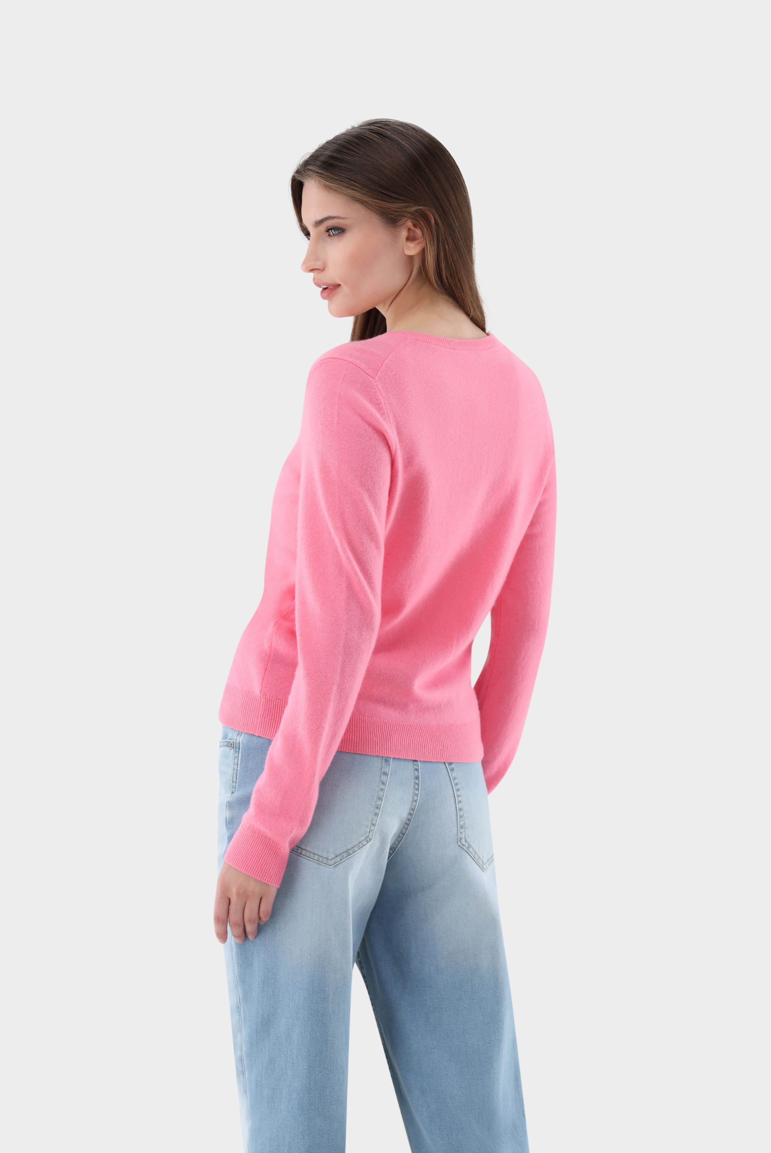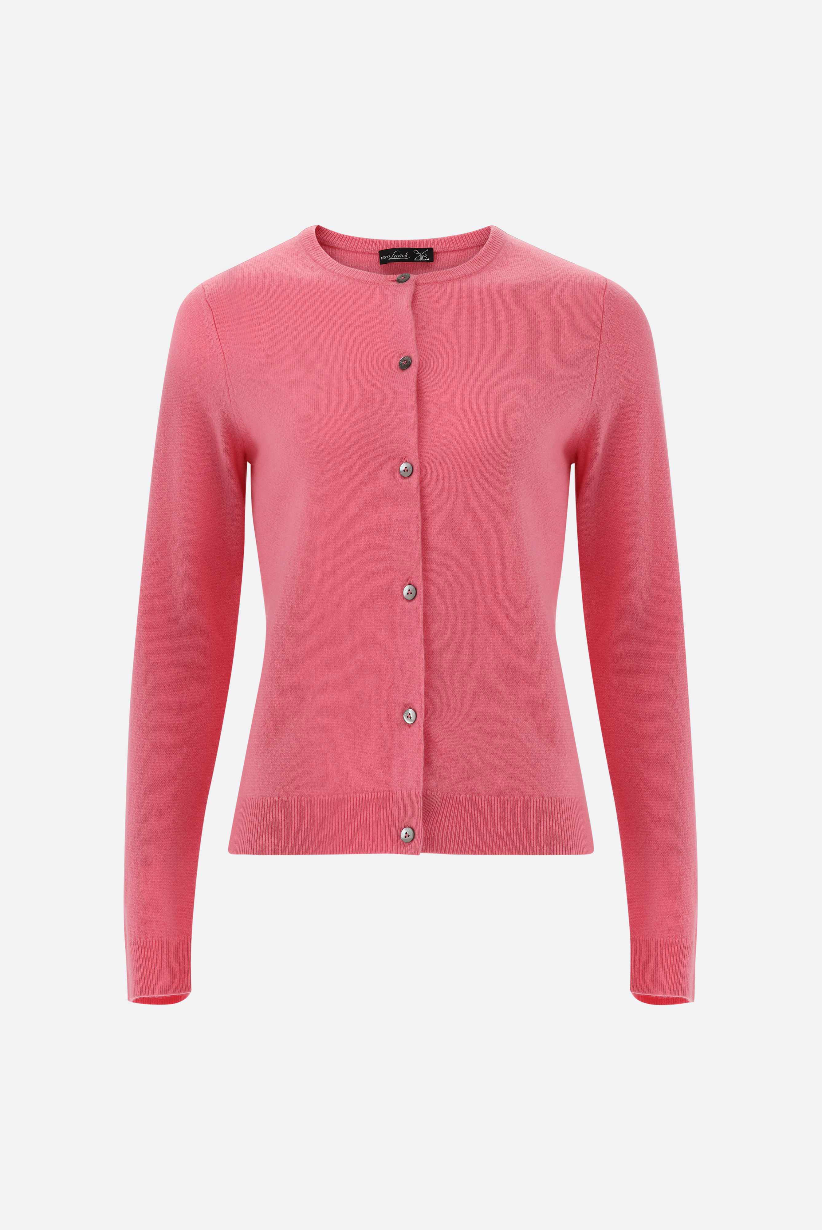 Die Strickjacke besteht aus hochwertigem Kaschmir und besticht durch ihre Qualität und zeitlosen Stil. Mit einem klassischen Rundhalsausschnitt und Perlmuttknöpfen wird sie zum vielseitigen Begleiter für verschiedene Anlässe – sei es tagsüber mit einem T-Shirt oder für die Arbeit oder abends mit einer schönen Bluse. Für ein harmonisches Ensemble besteht die Möglichkeit, ein passendes Strickoberteil zu erwerben und es als Twin Set zu tragen. Insbesondere sind die Unser Modelle Smillas und Carols ideal als Twinset kombinierbar.