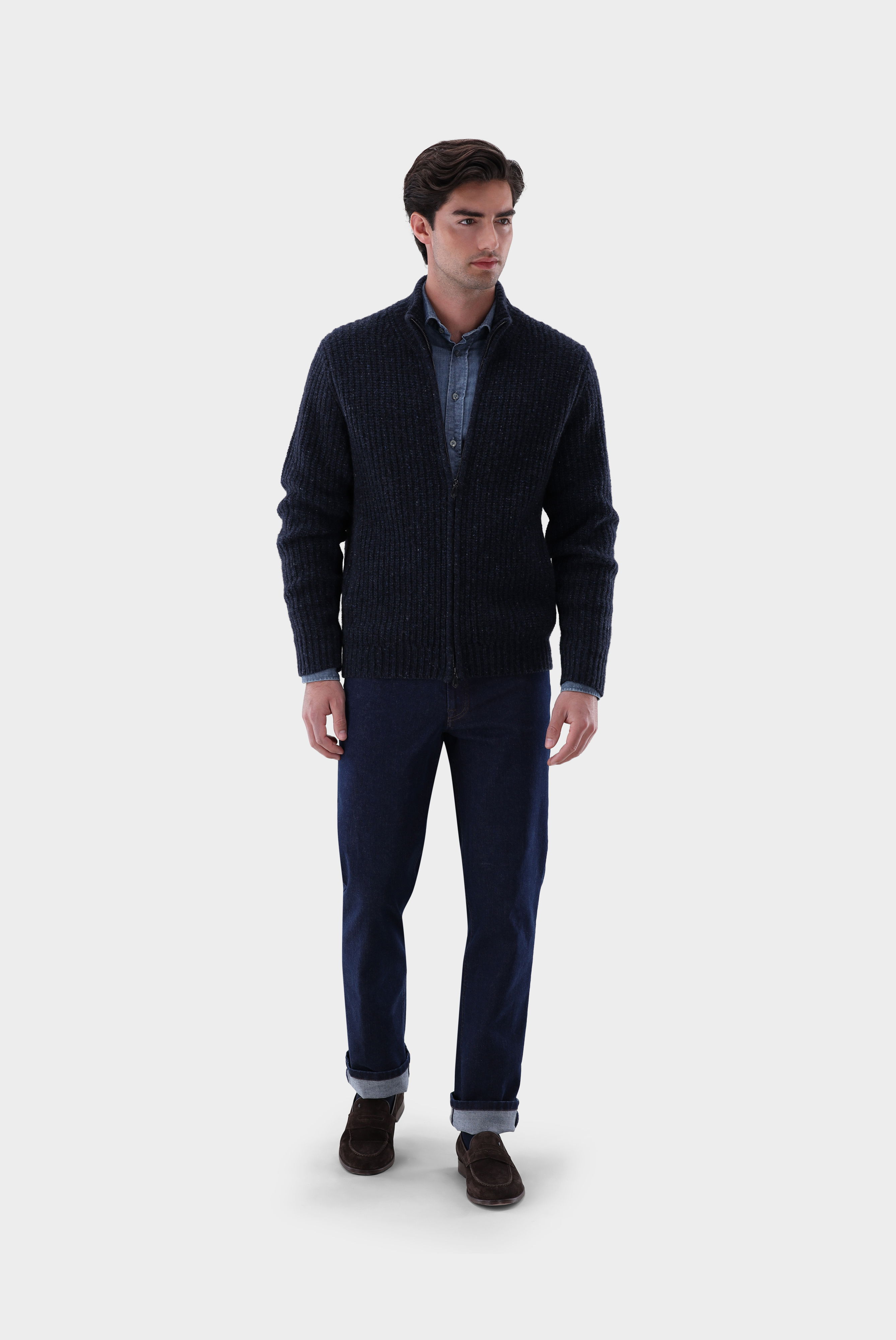 Strickjacke mit Reißverschluss aus reinem, tweedgestricktem Kaschmir für luxuriösen Tragekomfort und zeitlose Eleganz. Die voluminöse Strickart sorgt für eine markante Struktur und zusätzliche Wärme, ideal für kühle Tage. Hochwertige Verarbeitung und weiche Haptik machen dieses Modell zu einem edlen Begleiter für vielseitige Outfits. Perfekt für stilvolle Freizeit-Looks, als exklusives Highlight in der gehobenen Alltagsgarderobe oder für den Skiurlaub.