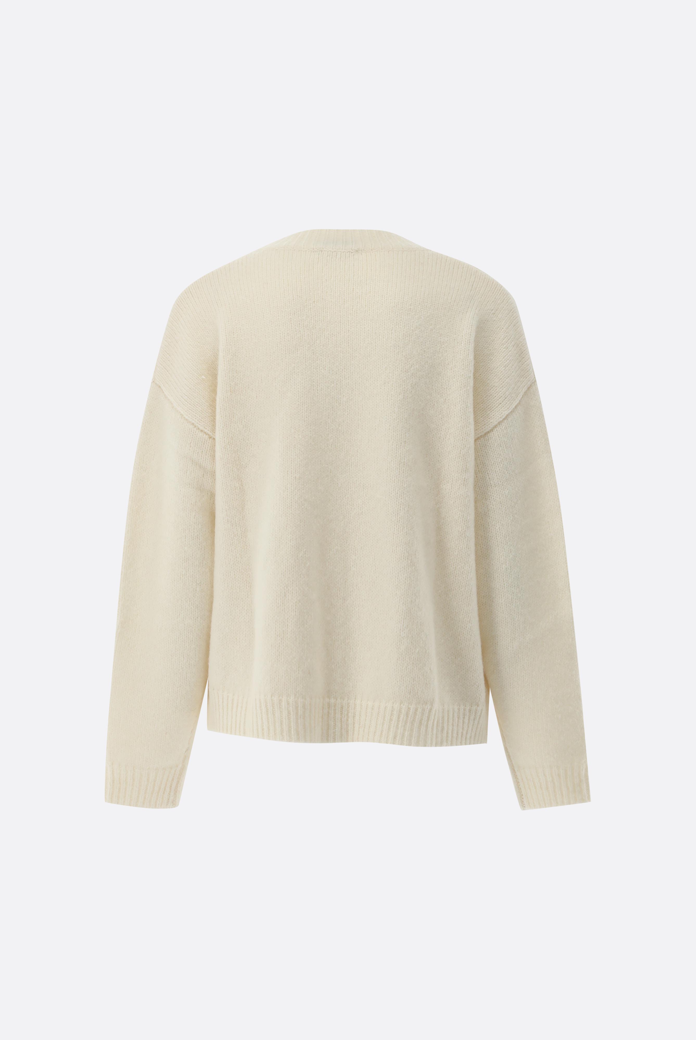 Kastig geschnittene Strickjacke mit markantem V-Ausschnitt und langen Ärmeln für eine moderne Silhouette. Gefertigt mit wolle und Alpaka bietet das Modell hervorragende Wärme und angenehmen Tragekomfort. Das offen gestrickte Zopfmuster verleiht dem Cardigan eine elegante Textur und sorgt für luftige Leichtigkeit. Ideal als vielseitiges Layering-Piece in Kombination mit einer Bluse für stilbewusste Outfits in der kühlen Jahreszeit.