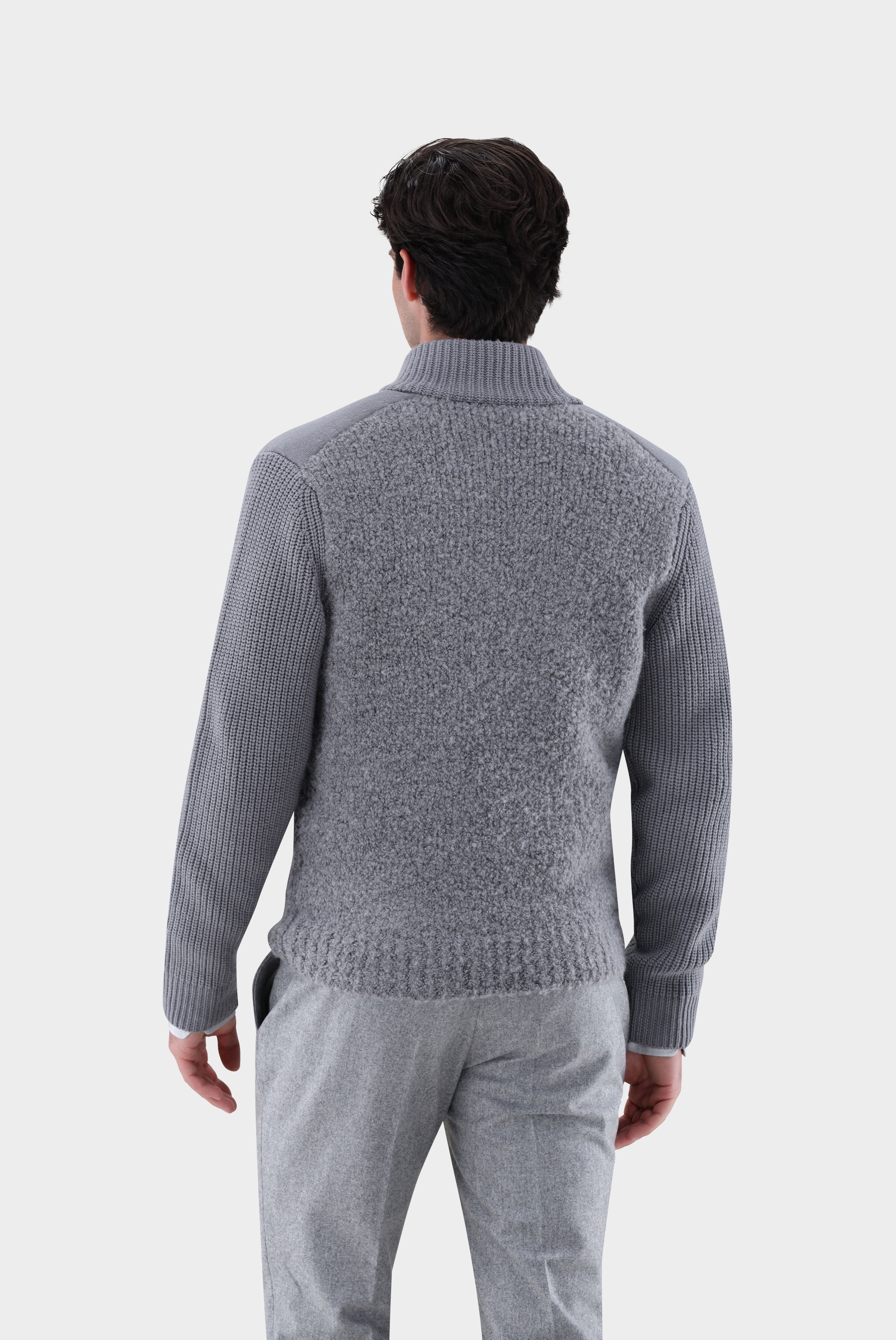 Luxuriös gestrickte Teddyjacke mit hochwertiger Wolle mit weicher Teddy-Vorderseite für besonders angenehme Wärme. Gerippte Ärmel und ein Stehkragen sorgen für einen modernen, strukturierten Look und optimalen Sitz. Praktische aufgesetzte Taschen ergänzen das funktionale Design. Die Kombination aus edlen Materialien und durchdachten Details macht die Jacke zu einem vielseitigen Begleiter für kühle Tage – ideal für stilbewusste und komfortorientierte Outfits.