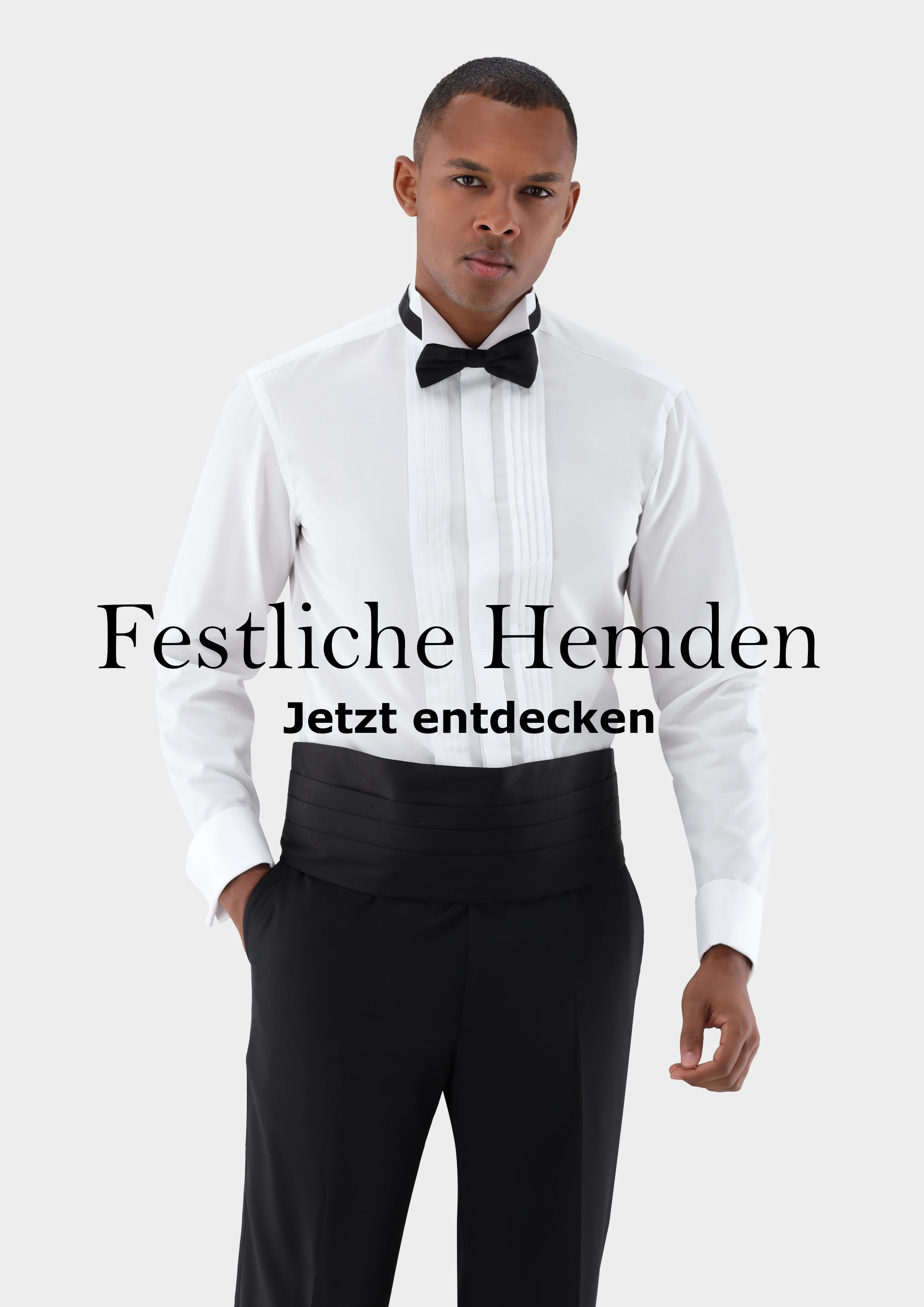 Hemd: Idealerweise in Weiß oder Hellblau, alternativ auch mit dezenten Mustern wie Microprint oder feinen Streifen für einen eleganten Look.