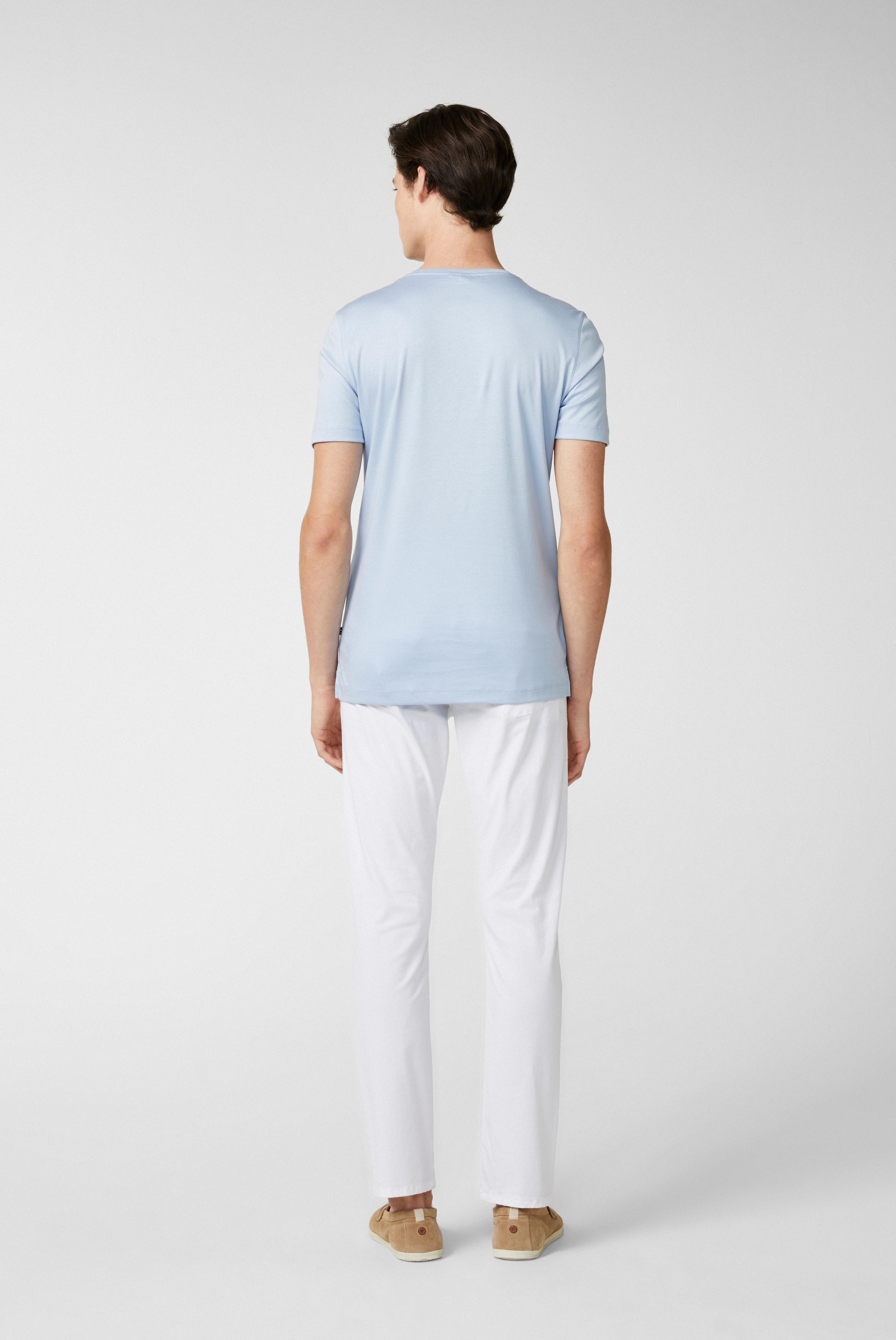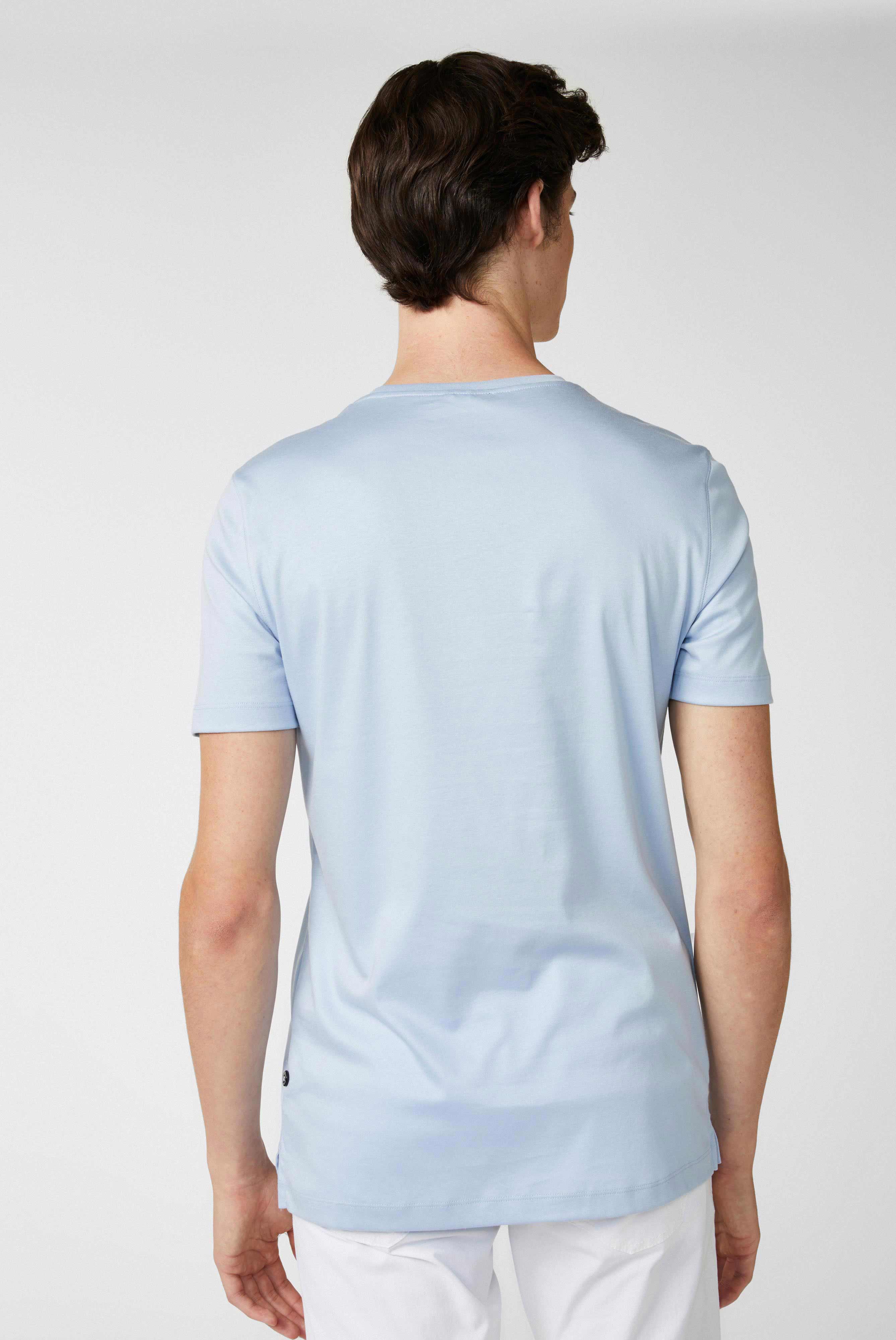 T-Shirt aus Swiss Cotton Jersey. Die Swiss Cotton Jersey Qualität, gefertigt aus besonders hochwertigem und weichem Interlock-Jersey mit Natural-Stretch, sorgt für ein luxuriöses Tragegefühl. Die glänzende Optik vollendet den edlen Look.