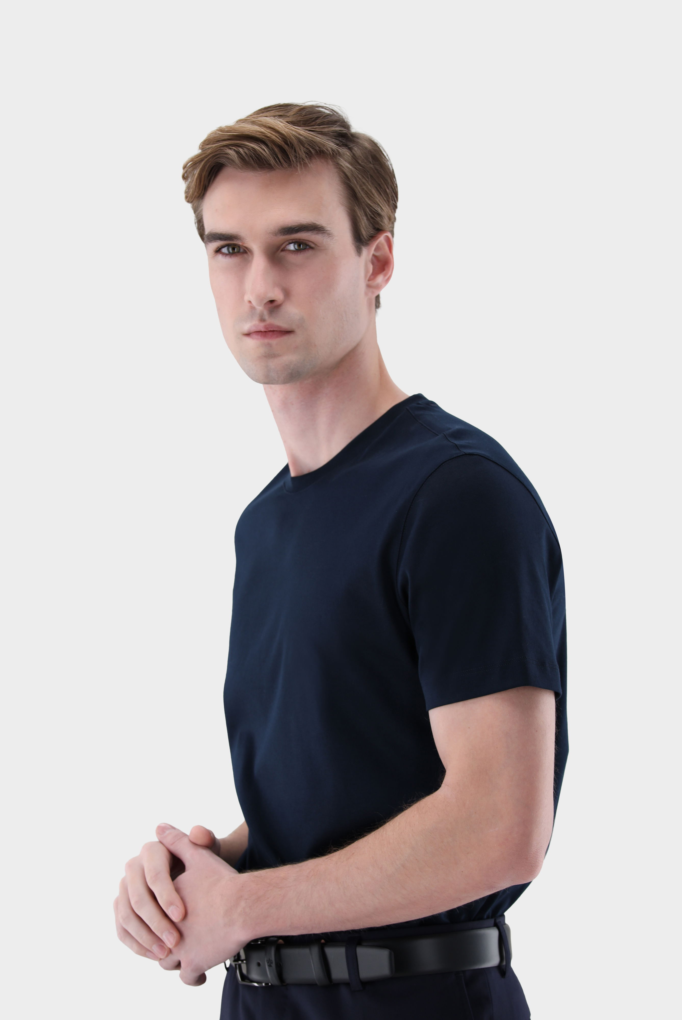 aus Schweizer Baumwolle mit Rundhals Slim Fit