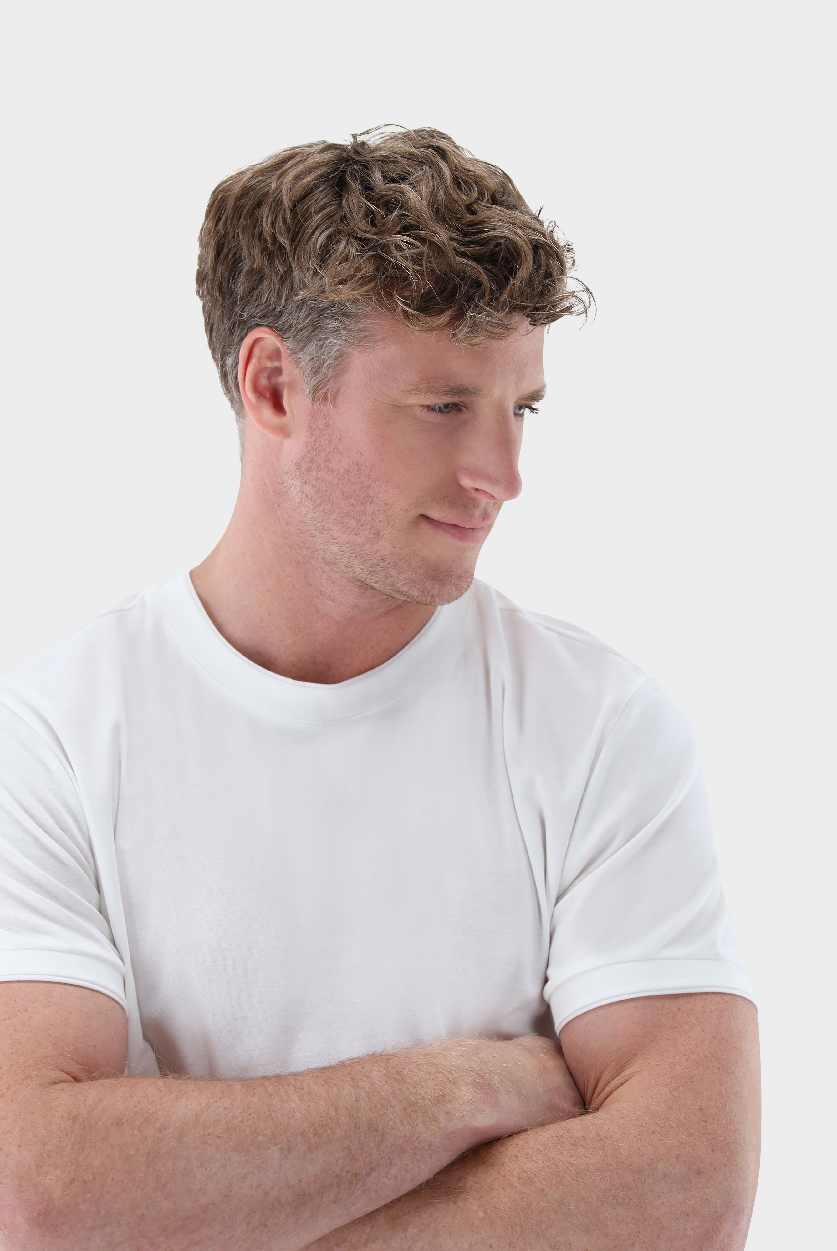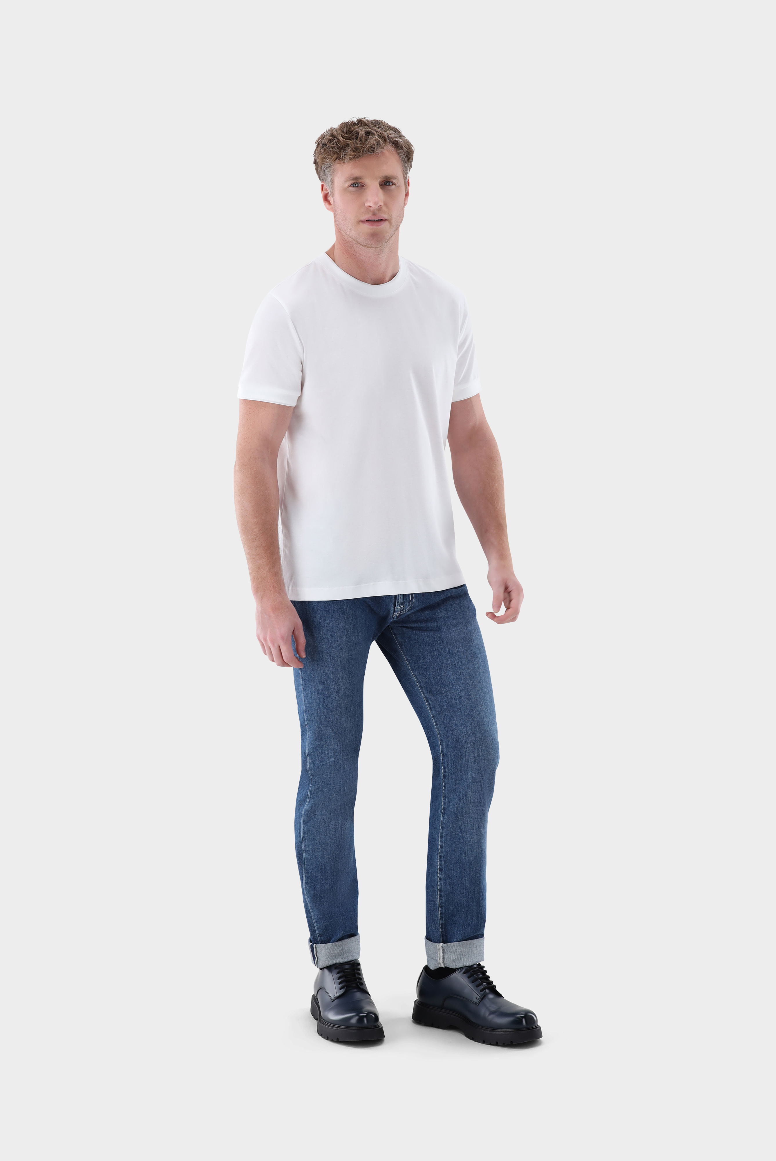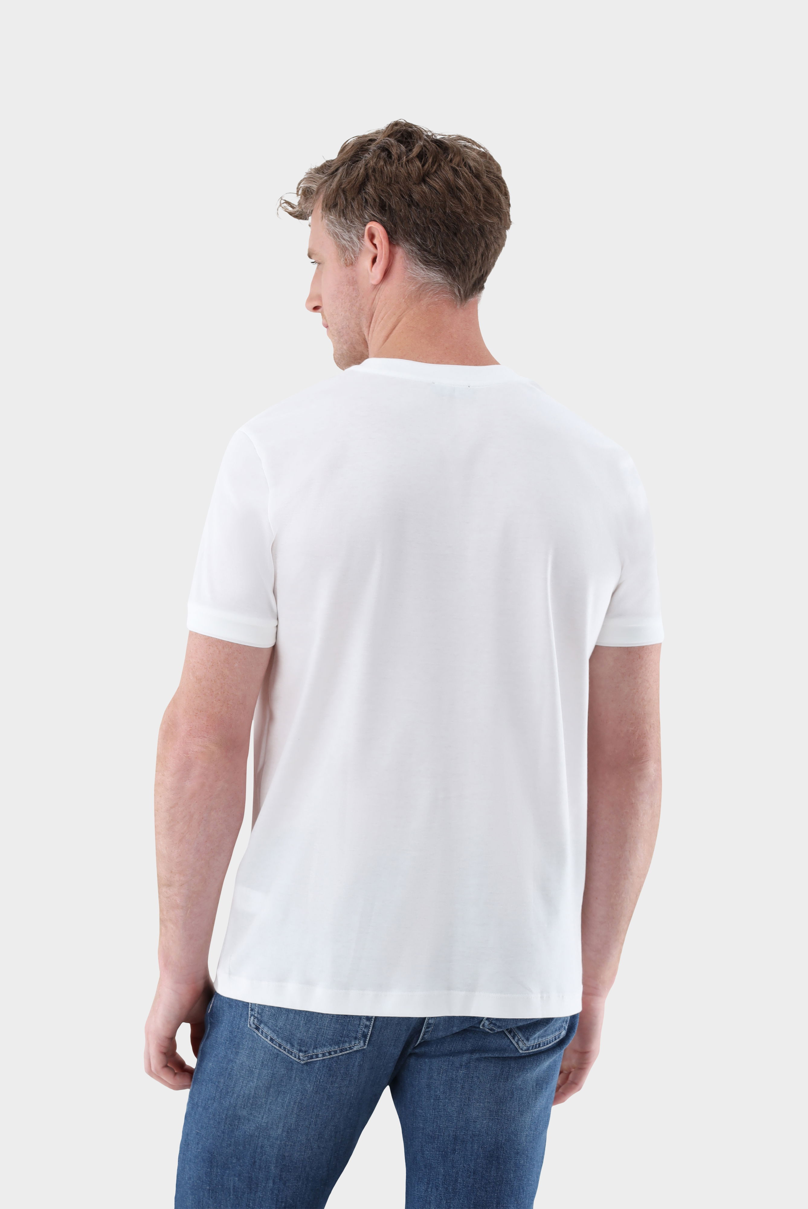 T-Shirt aus Swiss Cotton Jersey mit Rundhals und Paspel Detail. Die Swiss Cotton Jersey Qualität, gefertigt aus besonders hochwertigem und weichem Interlock-Jersey mit Natural-Stretch, sorgt für ein luxuriöses Tragegefühl. Die matte Optik vollendet den klassischen Look.