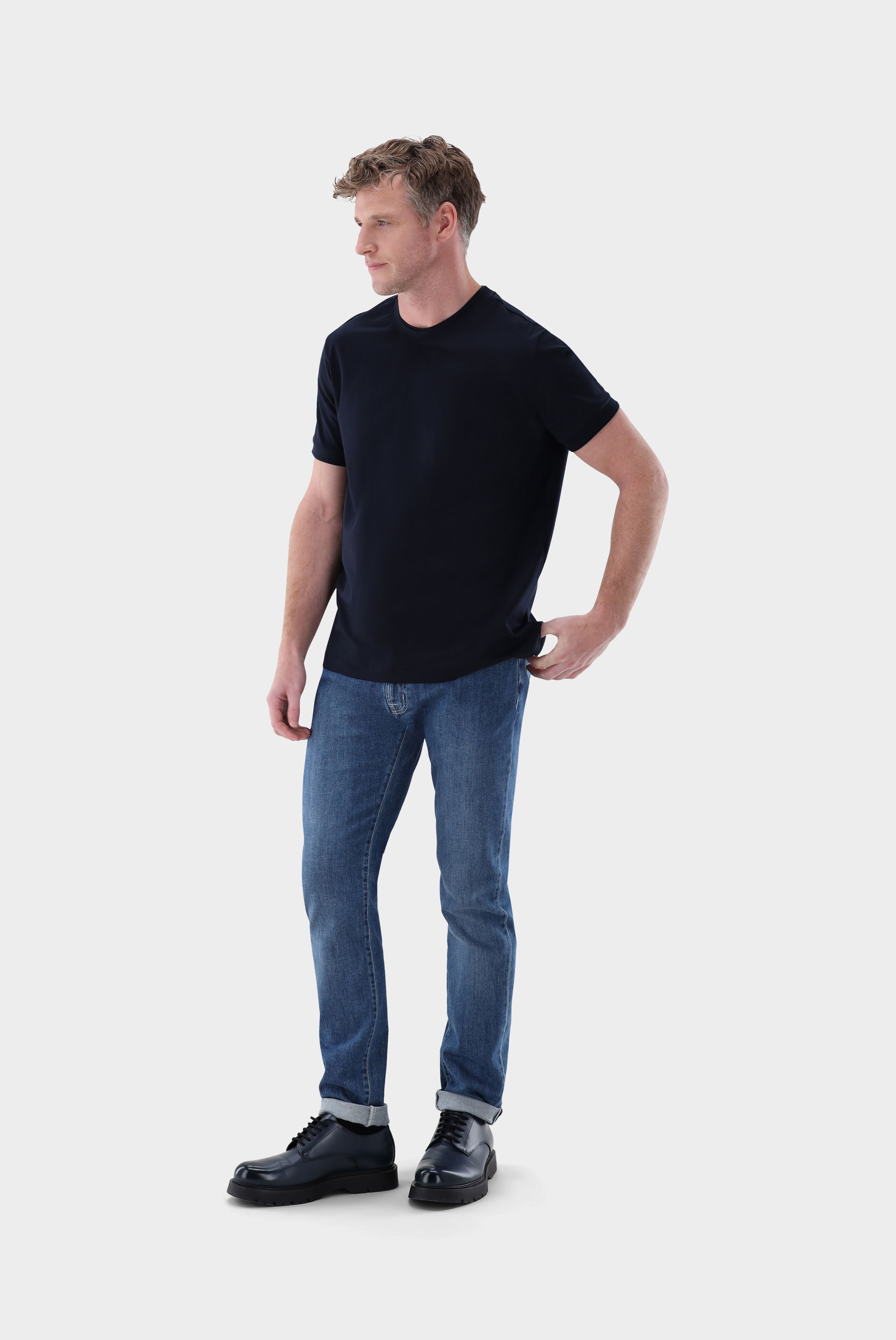 aus Schweizer Baumwolle mit Rundhals Slim Fit
