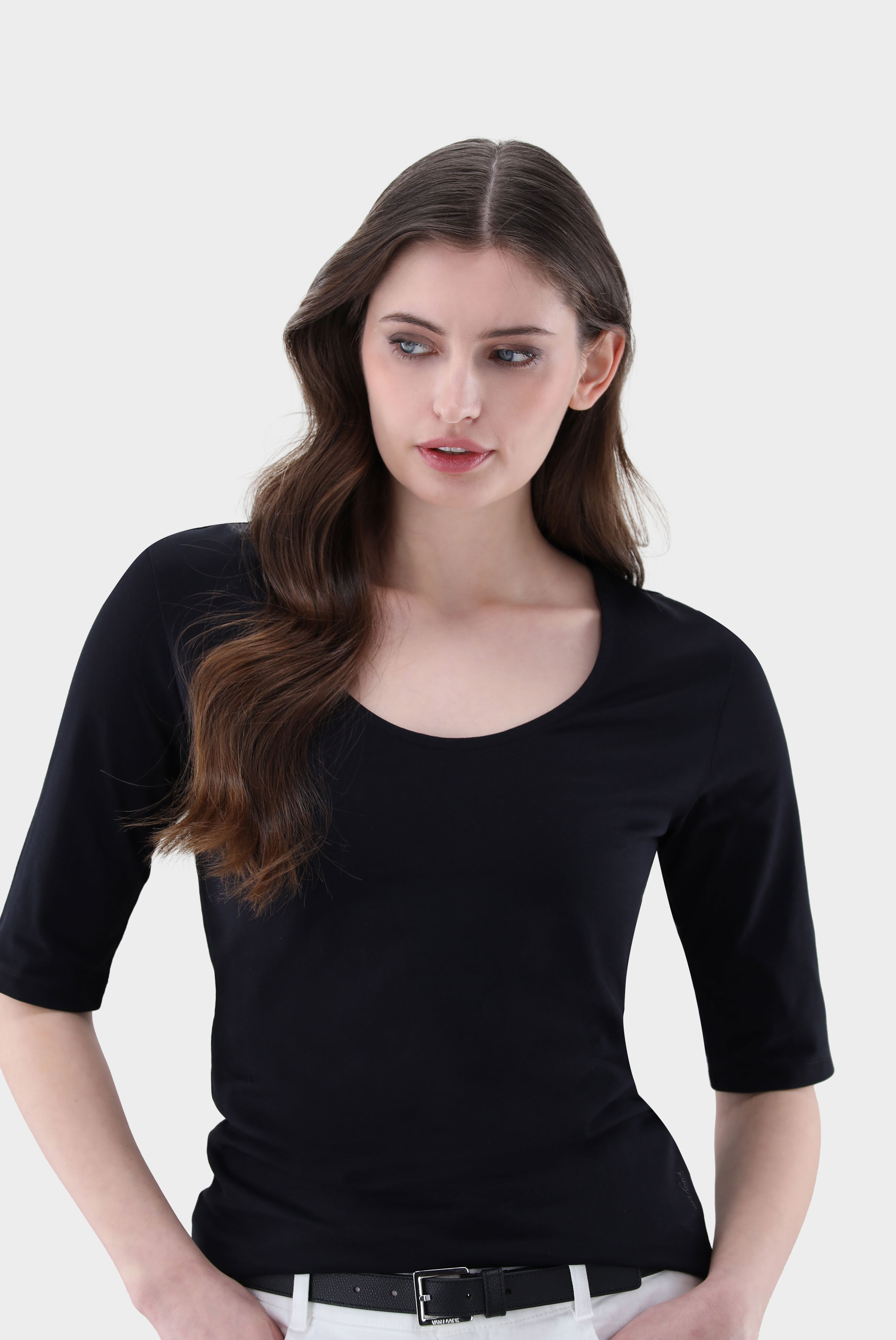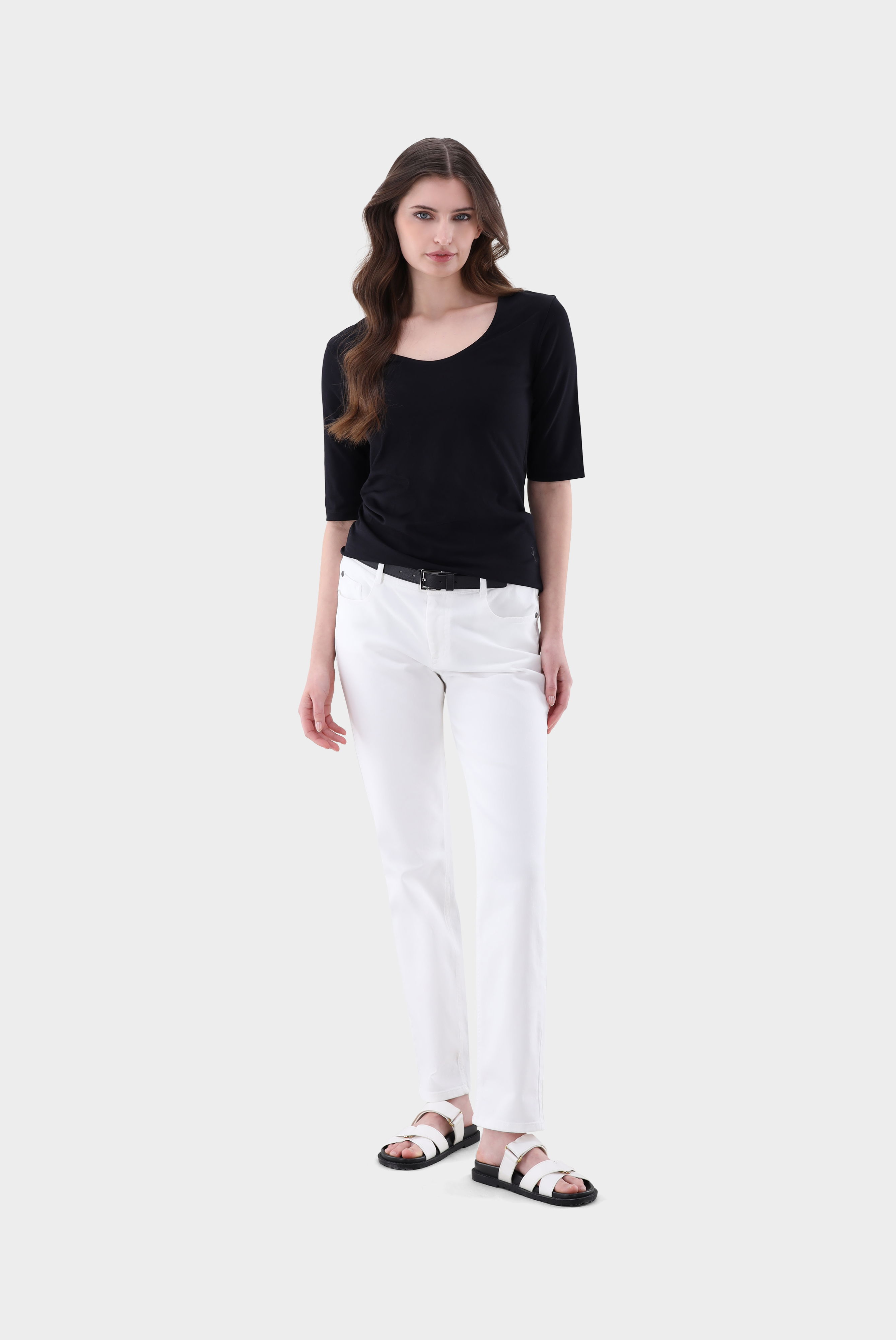 T-Shirt aus Urban-Jersey in matter Optik und weichem Griff. Weiter Ausschnitt, 3/4 Arm und taillierte Passform.