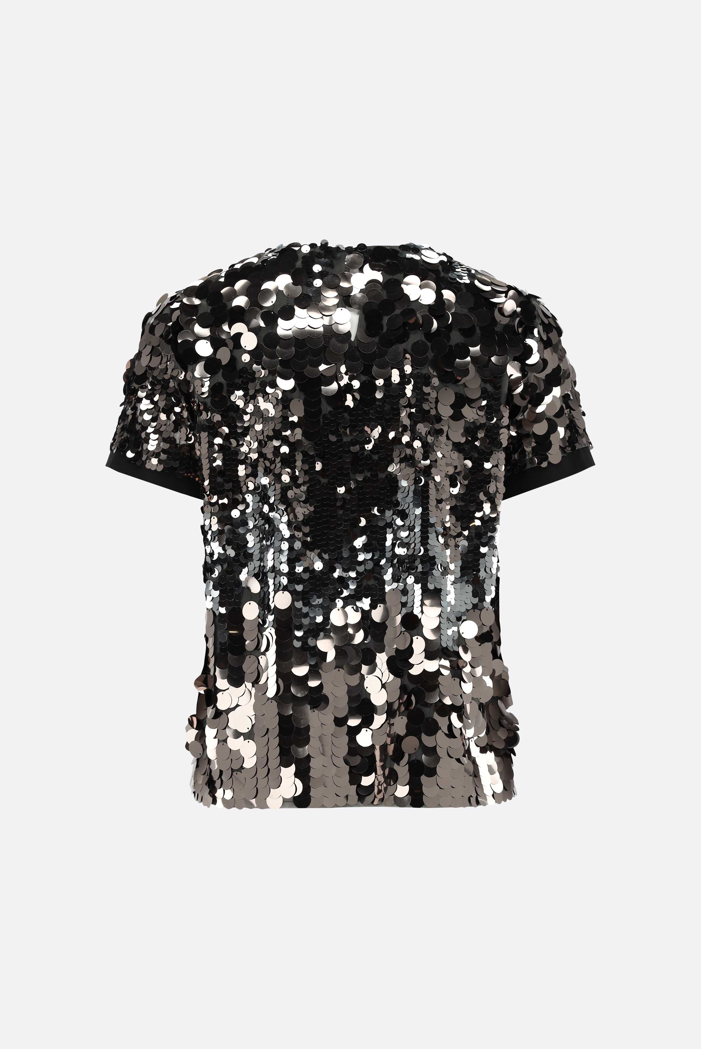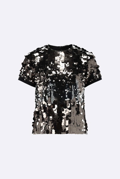 Locker geschnittene Schlupfbluse in T-Shirt-Form mit kurzen Ärmeln, Kragenlos und Rückseite mit Schlaufenverschluss. Hergestellt aus Viskose, verziert mit Pailletten und floralen Stickereien. Die Bluse ist gefüttert für angenehmen Tragekomfort.