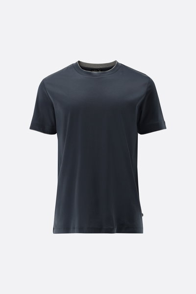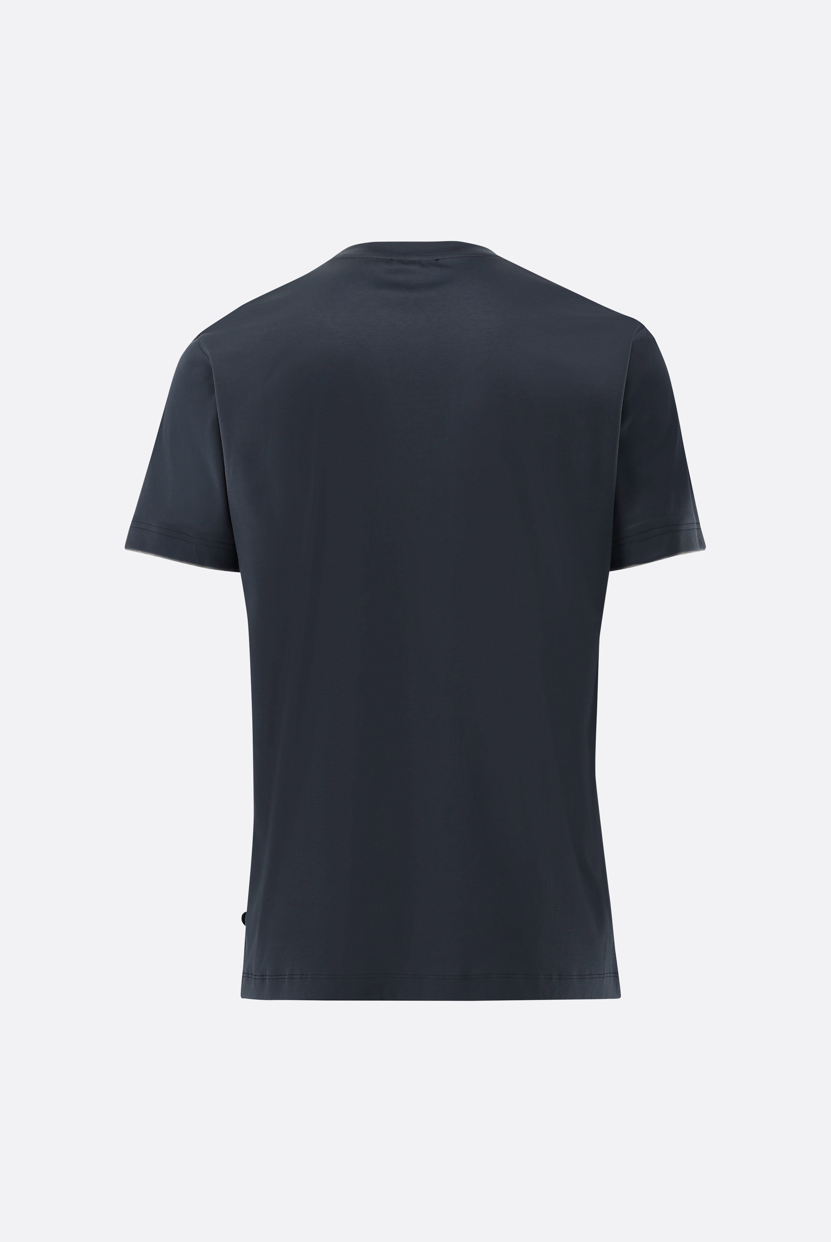 T-Shirt aus Swiss Cotton Jersey. Die Swiss Cotton Jersey Qualität, gefertigt aus besonders hochwertigem und weichem Interlock-Jersey mit Natural-Stretch, sorgt für ein luxuriöses Tragegefühl. Die glänzende Optik vollendet den edlen Look. Die hochwertigen Bauwollgarne aus Supima-Cotton sind besonders langlebig, strapazierfähig und farbbeständig.